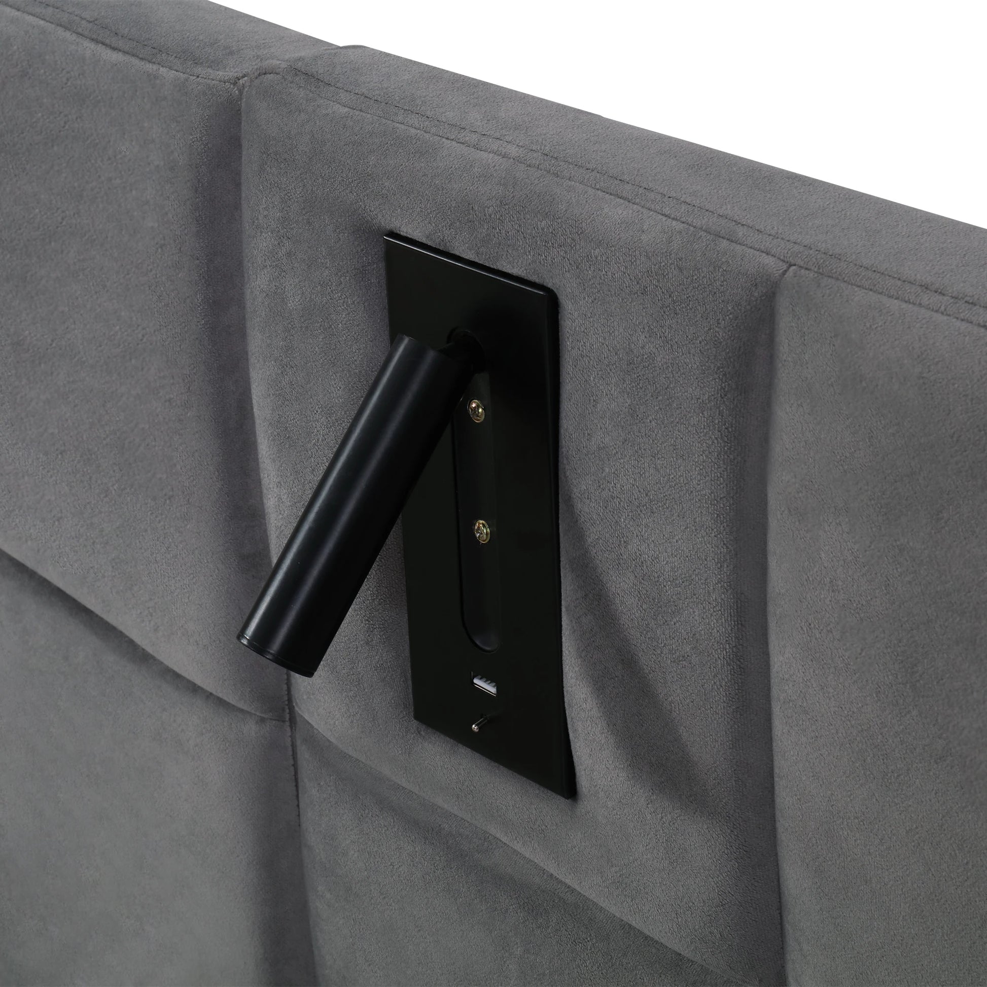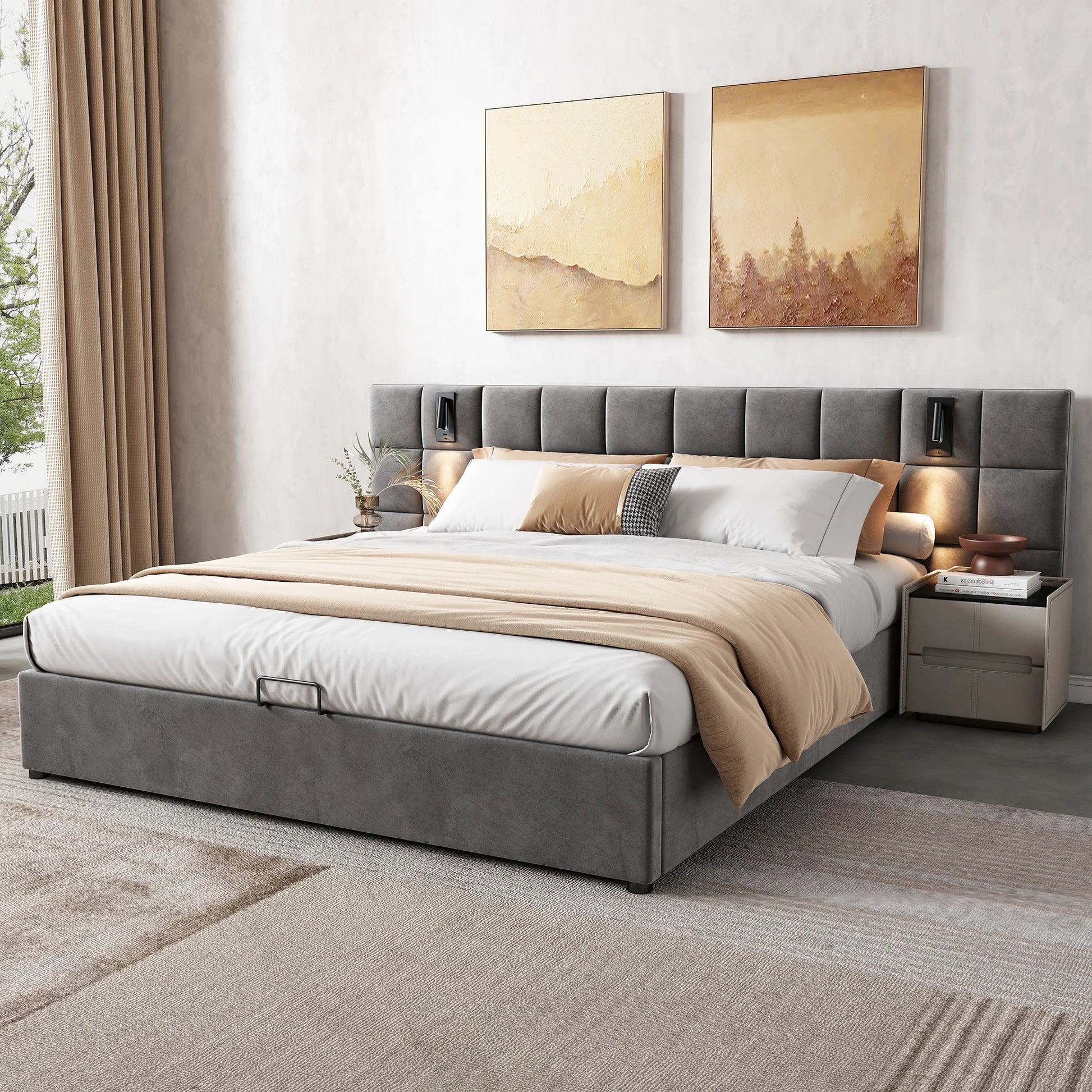 Polsterbett, hydraulisches Bett mit Stauraum, verstellbarem Licht und USB-Aufladung, breites Schaumstoffkopfteil, 180 x 200 cm, Grau