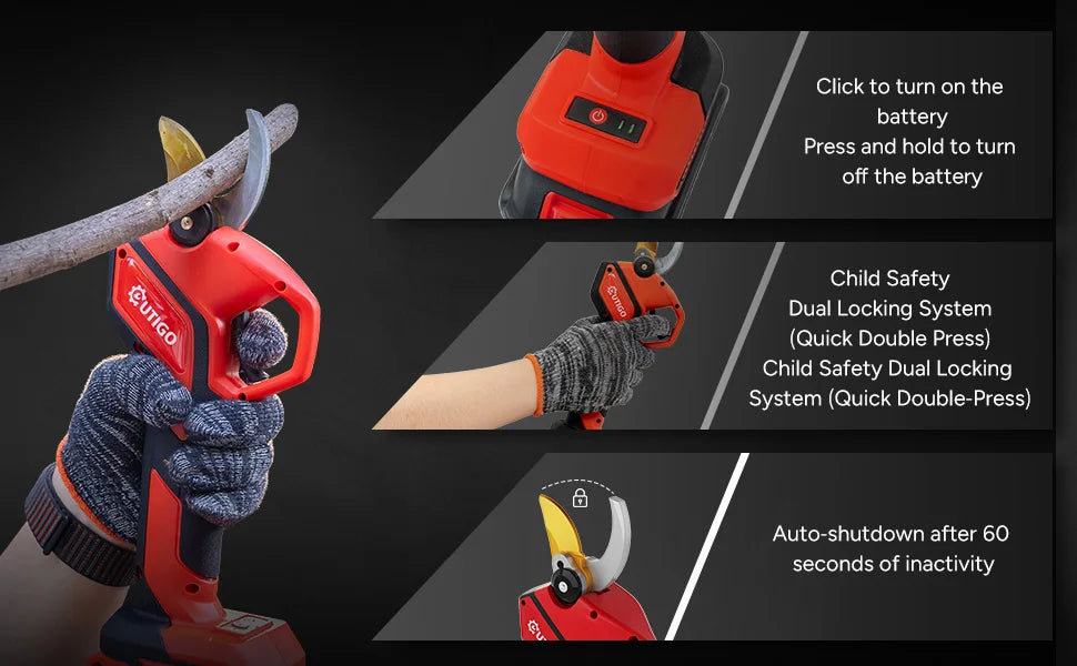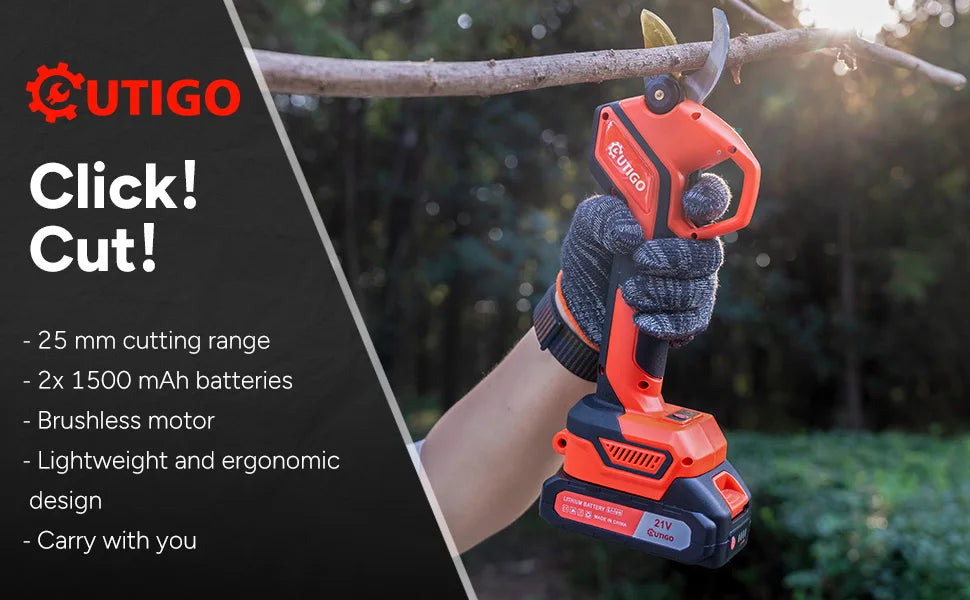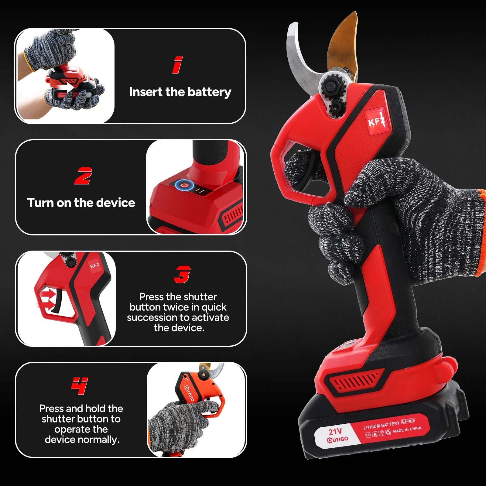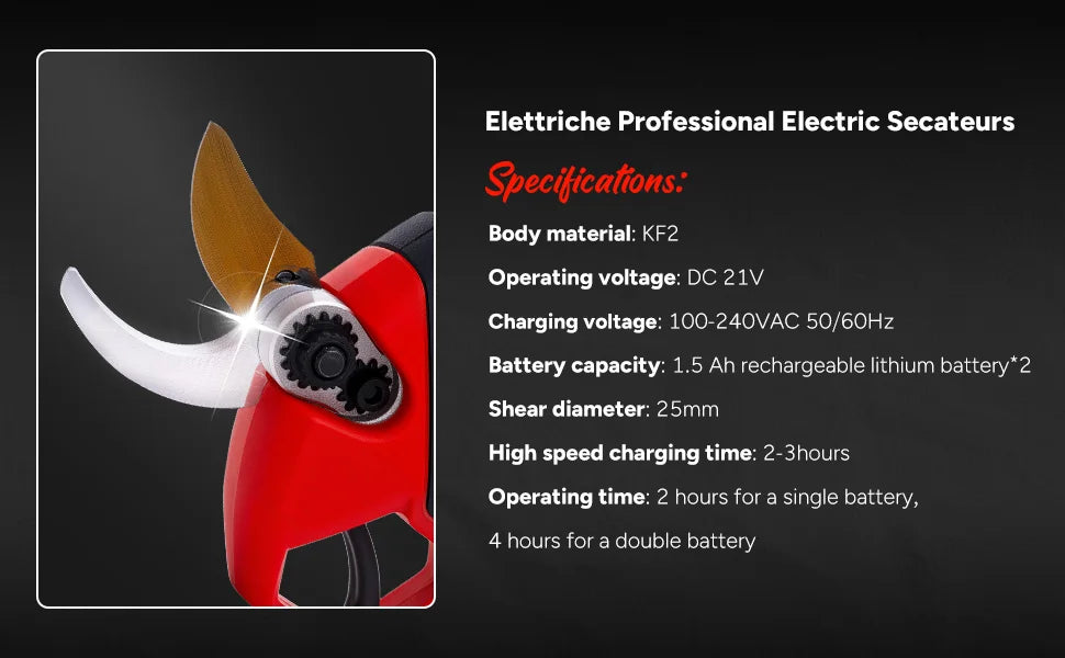 Professionelle Elektrische Gartenschere 25mm 2*1500mAh,2* 21v Lithium-Wiederaufladbar Akku Astschere, Rosenschere