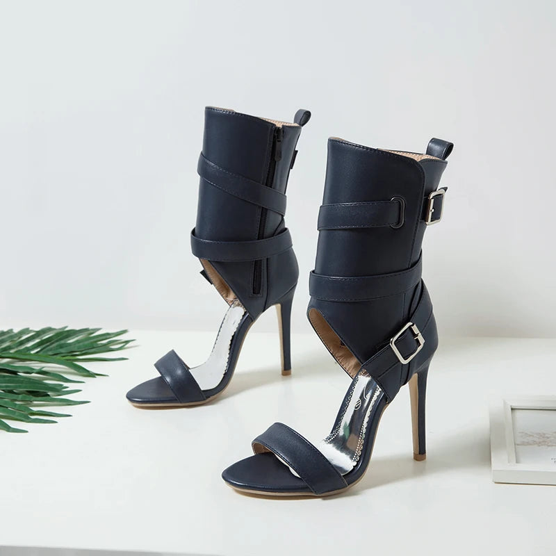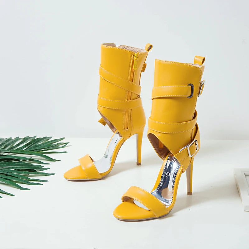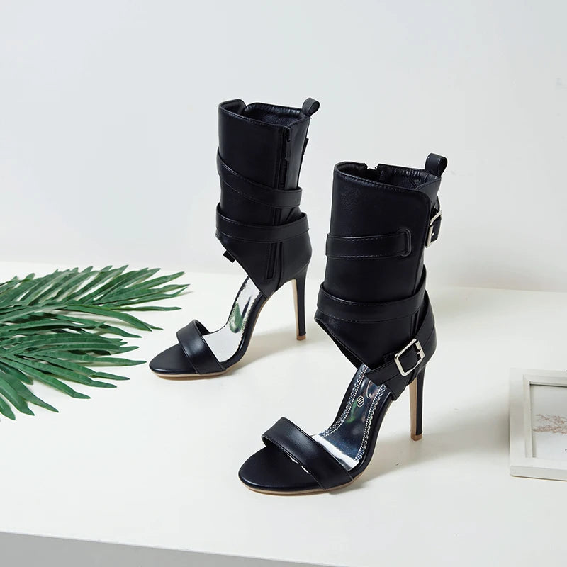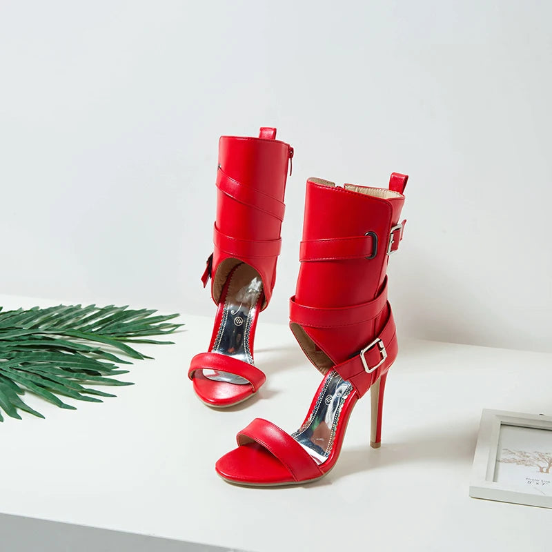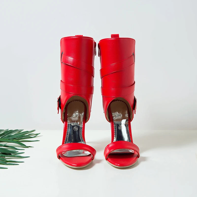 PU Leather Stiletto Women Sandal 2025 Drag Quee Summer High Heels Wedding Party Sexy Shoes Belt Solid Sissy Pumps Size 34~50