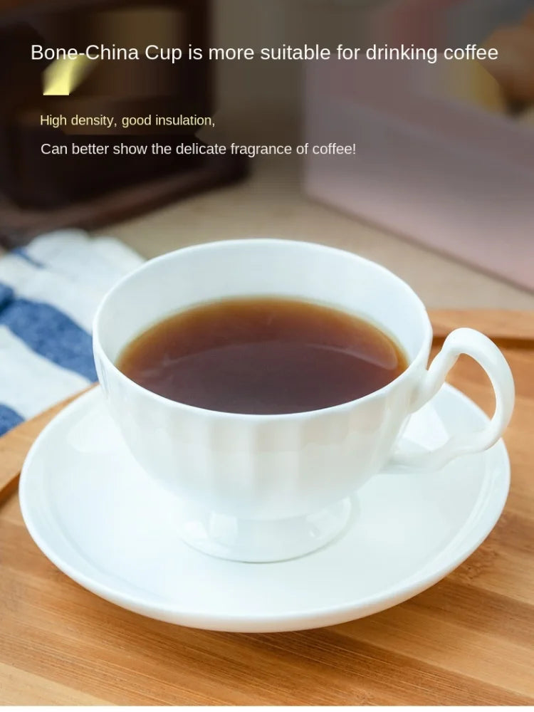Pure White Bone China Coffee Cup Ceramic Simple Nordic Latte Cups Creative Fancy Afternoon Tea Cafe Coffee Cup and Saucer Spoon