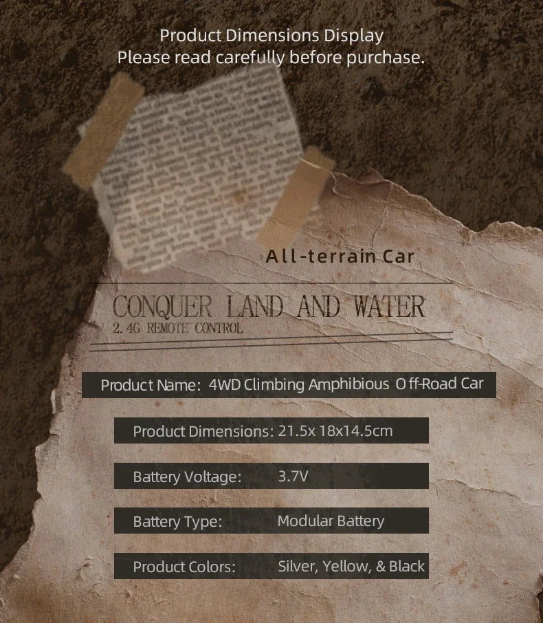 Q210 Amphibious Rc Car Dual Control 4WD Off-road Remote Control Waterproof Vehicle 2.4G Electric Climbing Crawler Toys for Kids