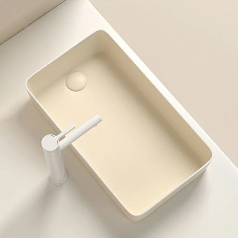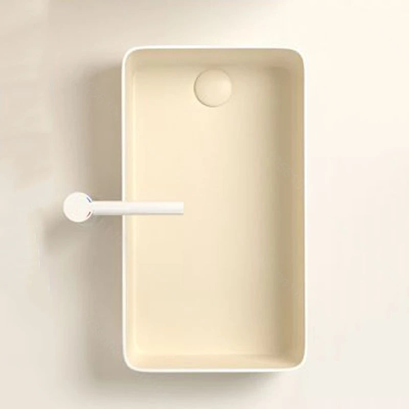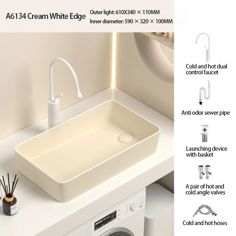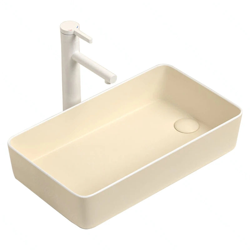 Rechteckiges Waschbecken aus Porzellan-Keramik für Badezimmer, modernes Waschbecken über der Theke mit Abflussset, Waschtischwaschbecken auf der Arbeitsplatte