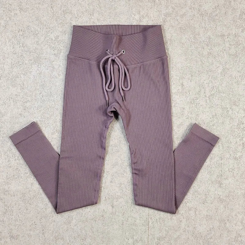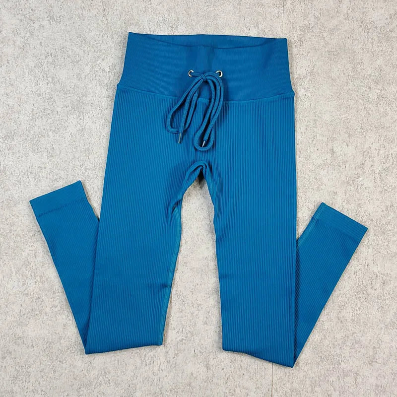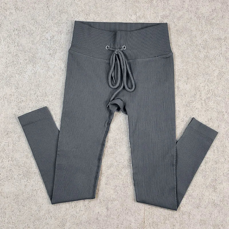 Ribbed Yoga Leggings Sports Tights Women Seamless Knit Yoga Pants White Femme Gym Leggings Skinny Workout Fitness Push Up