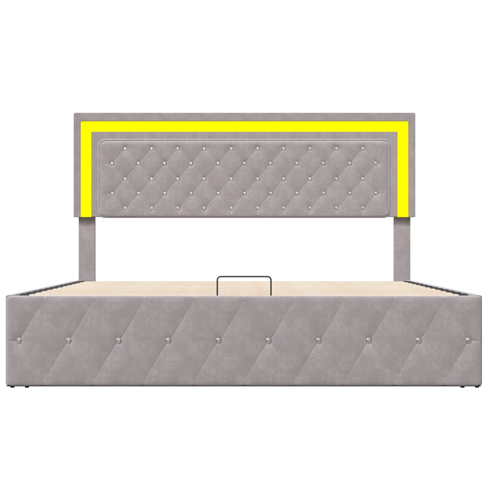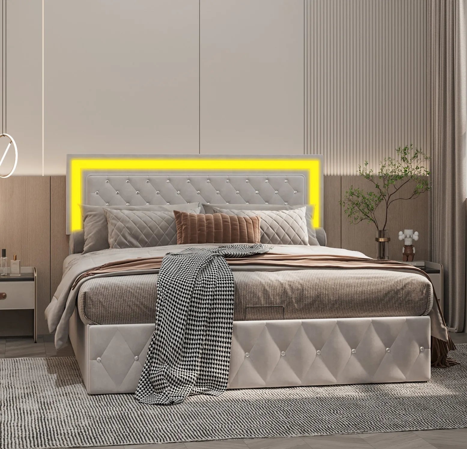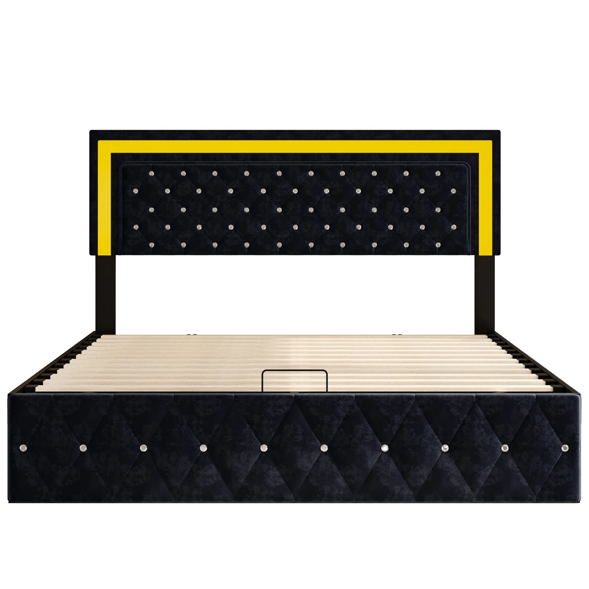 Rosahqnda Doppelbettgestell 140–160–180 x 200 cm, verstellbares LED-Kopfteil, hydraulisches Bett mit Stauraum, gepolstertes Jugendbett, Samt
