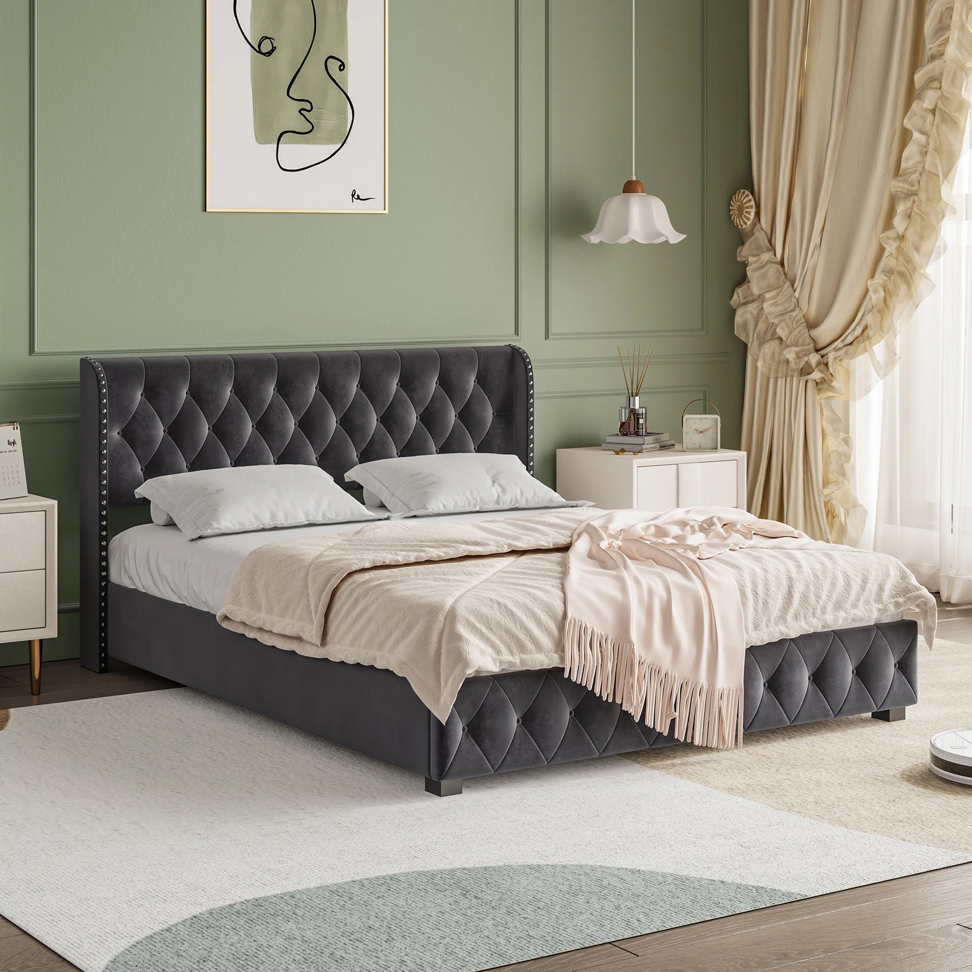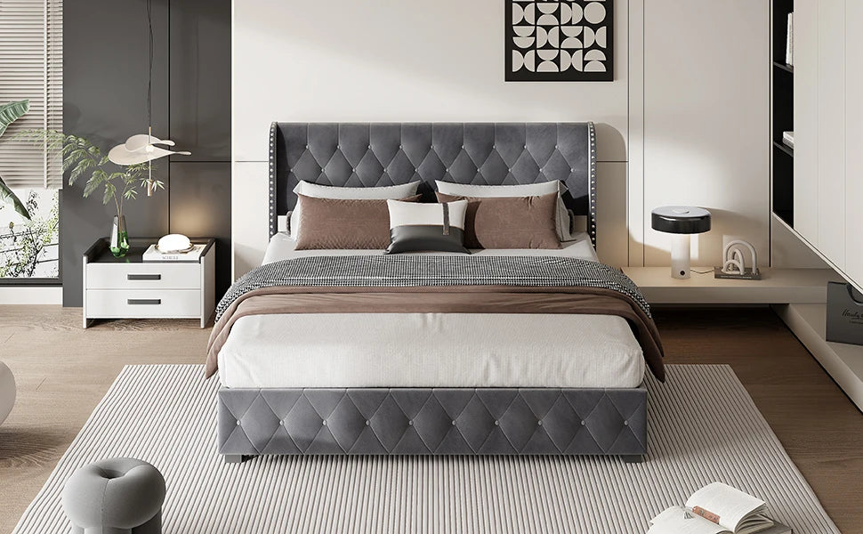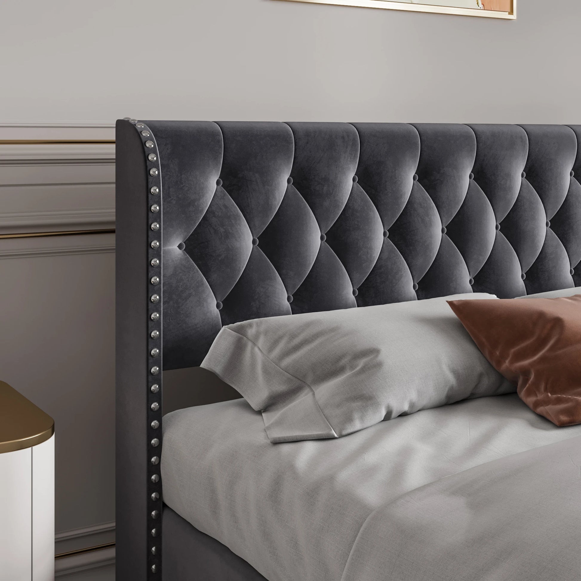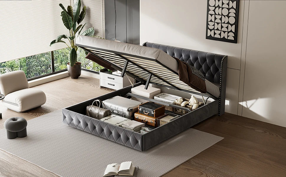 Rosahqnda gepolstertes Doppelbett, 140–160–180 x 200 cm, Stauraumbett, hydraulisches Bett, Erwachsenenbett, Samt, Dunkelgrau