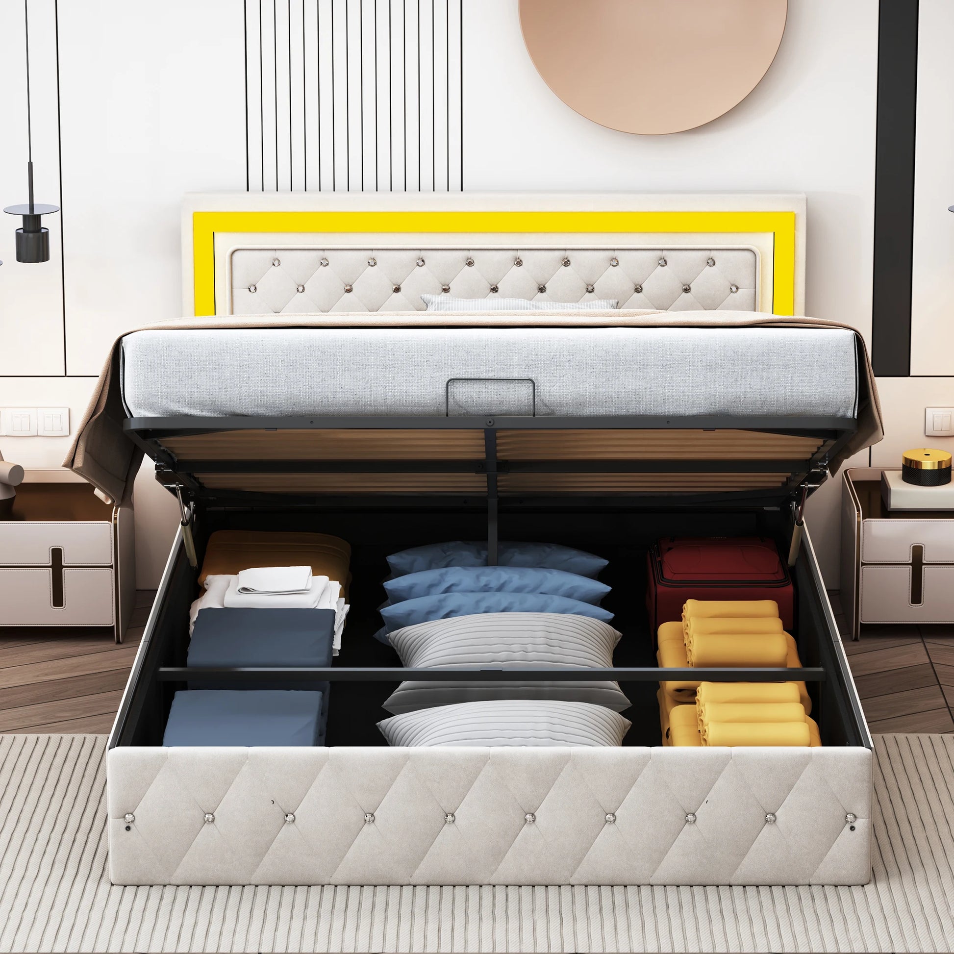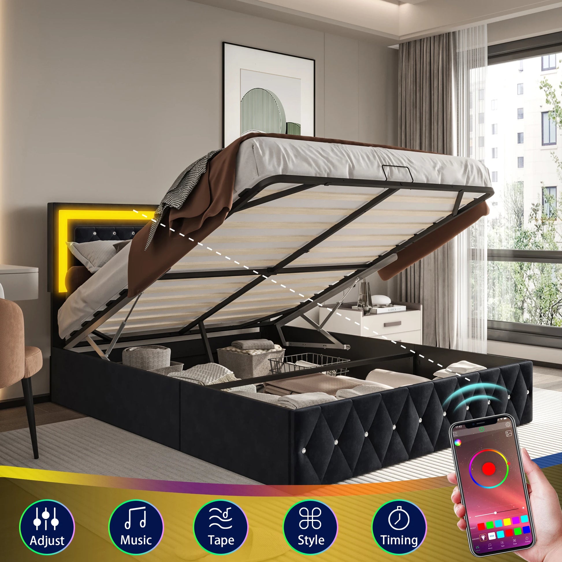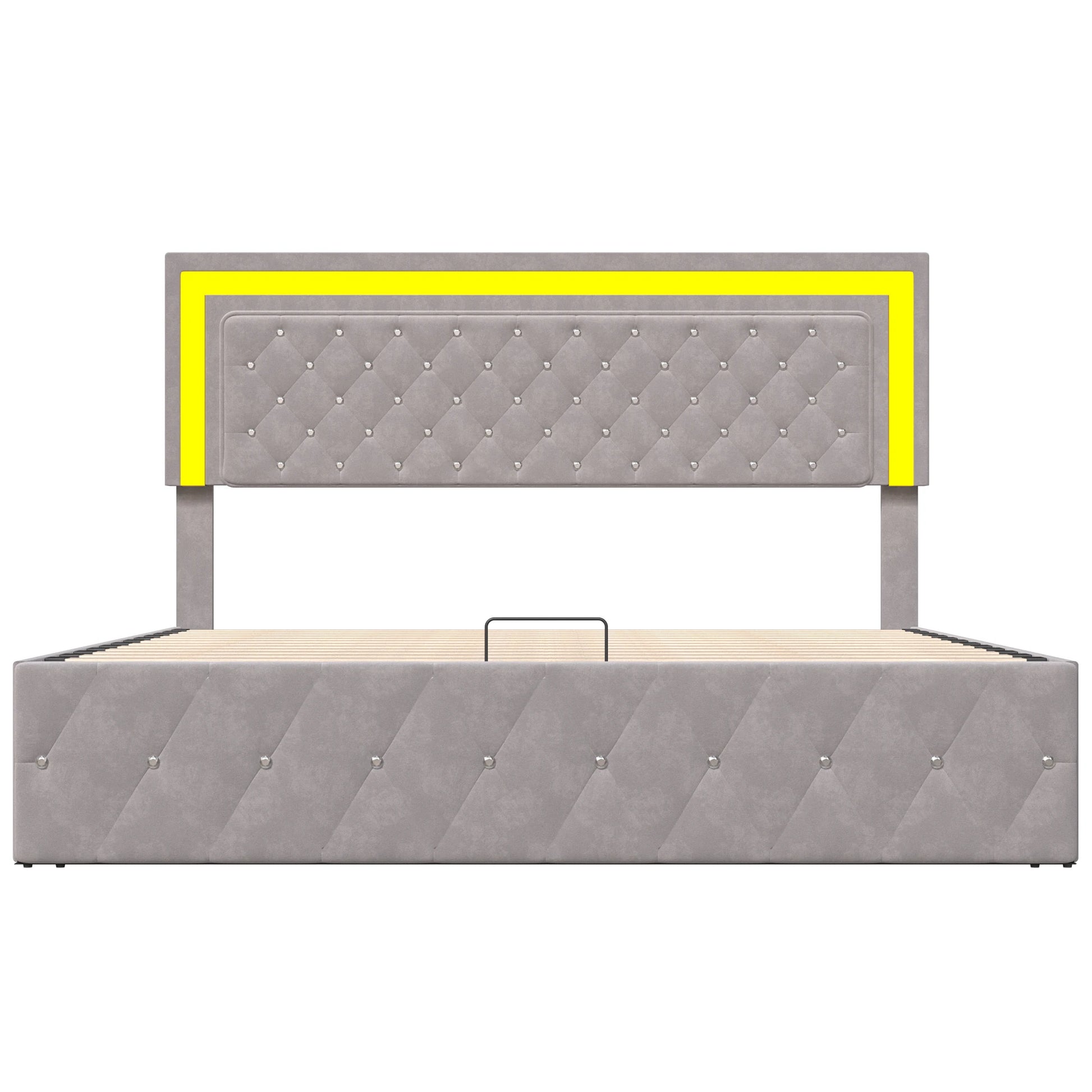 Rosahqnda gepolstertes Doppelbett 140 x 200 cm mit LED-Beleuchtung, hydraulischem Stauraumbett und Lattenrost, Funktionsbetten, Samt