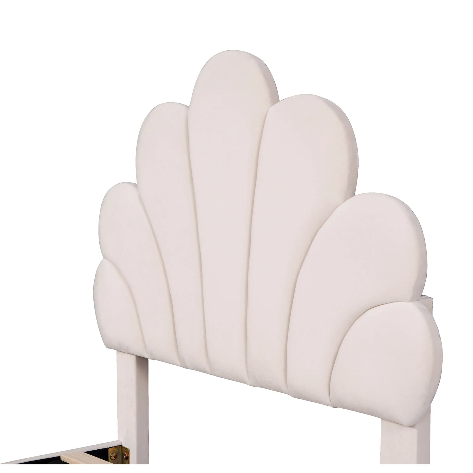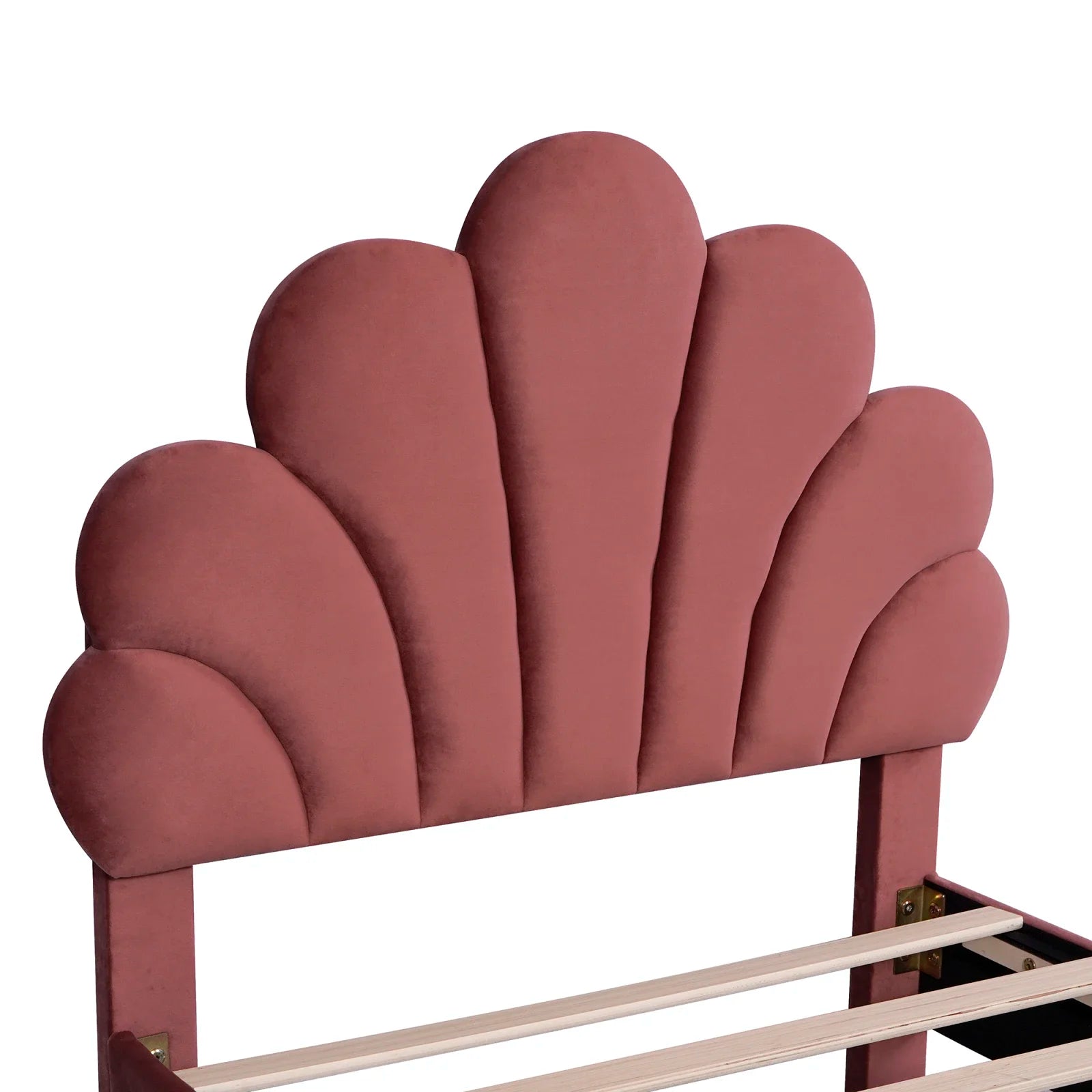 Rosahqnda Kinderbett 90x200 cm, blütenblattförmiges Kopfteil, gepolstertes Einzelbett für Kinder- und Mädchenschlafzimmer, Rosa/Beige