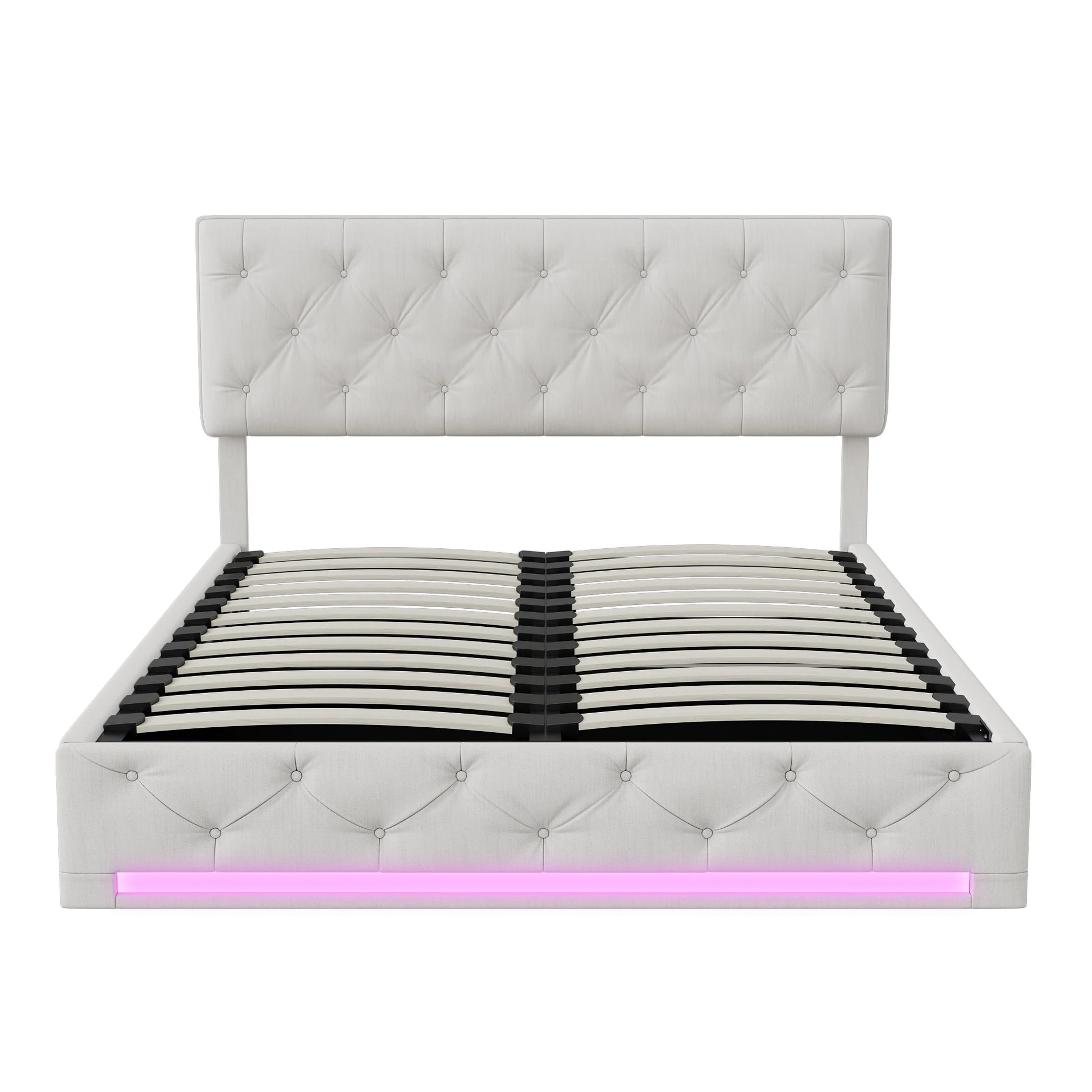 ROSAHQNDA Modernes Polsterbett, LED-Kastenbett mit großem Stauraum, elegantes Doppelbett aus Leinenstoff ohne Matratze