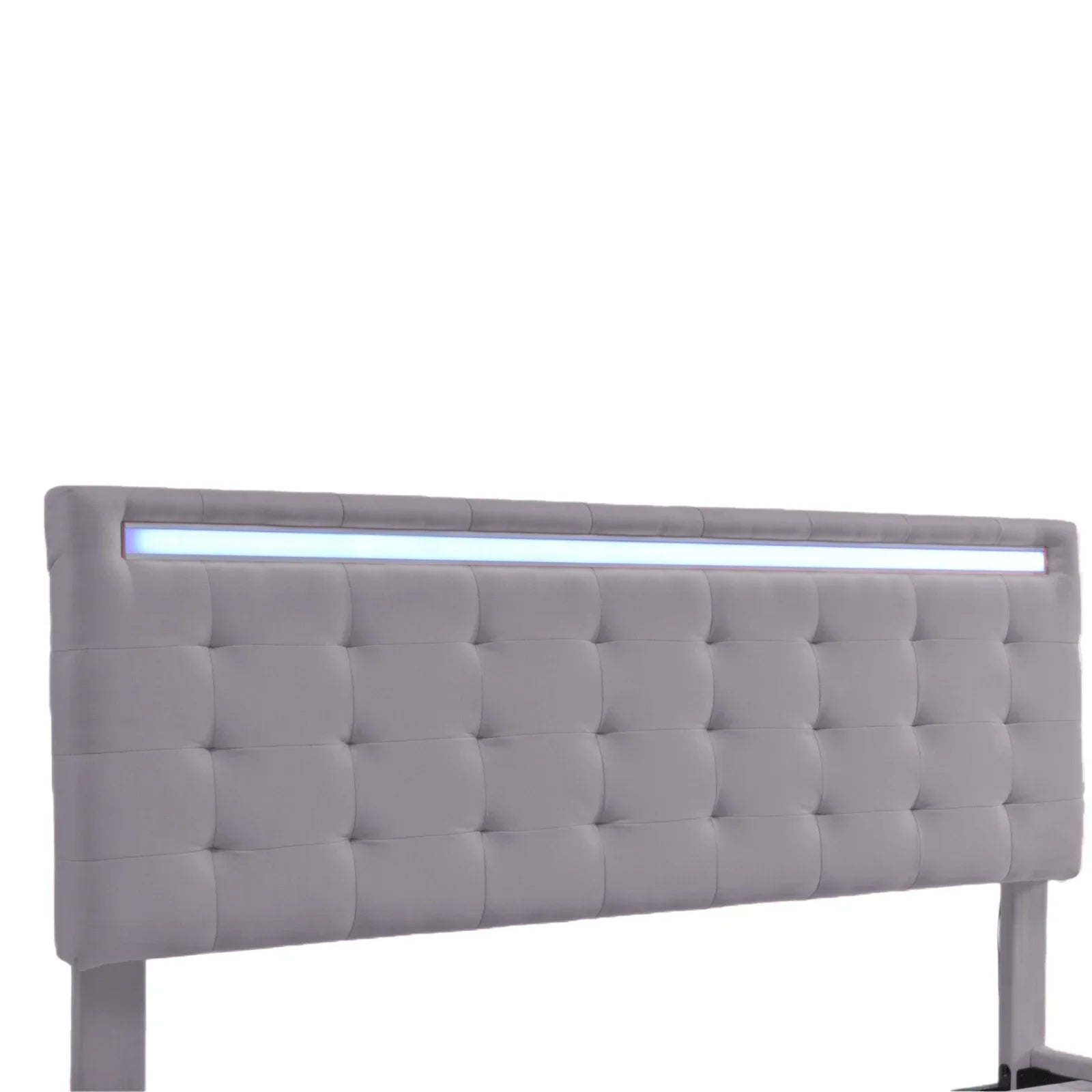 Rosahqnda Polsterbett 160 x 200 cm, Doppelbett mit LED- und USB-Anschluss, schwebender Bettrahmen, Beige, Leinen