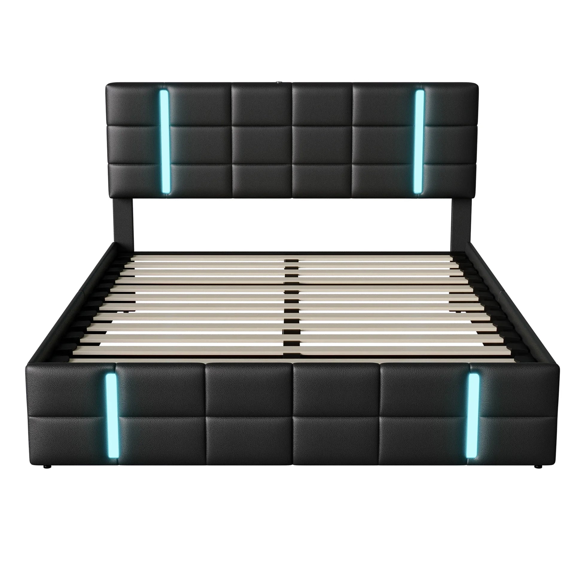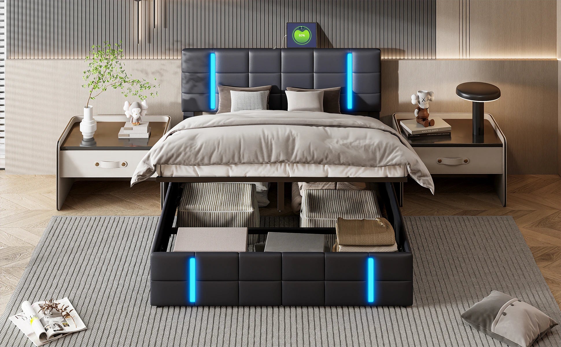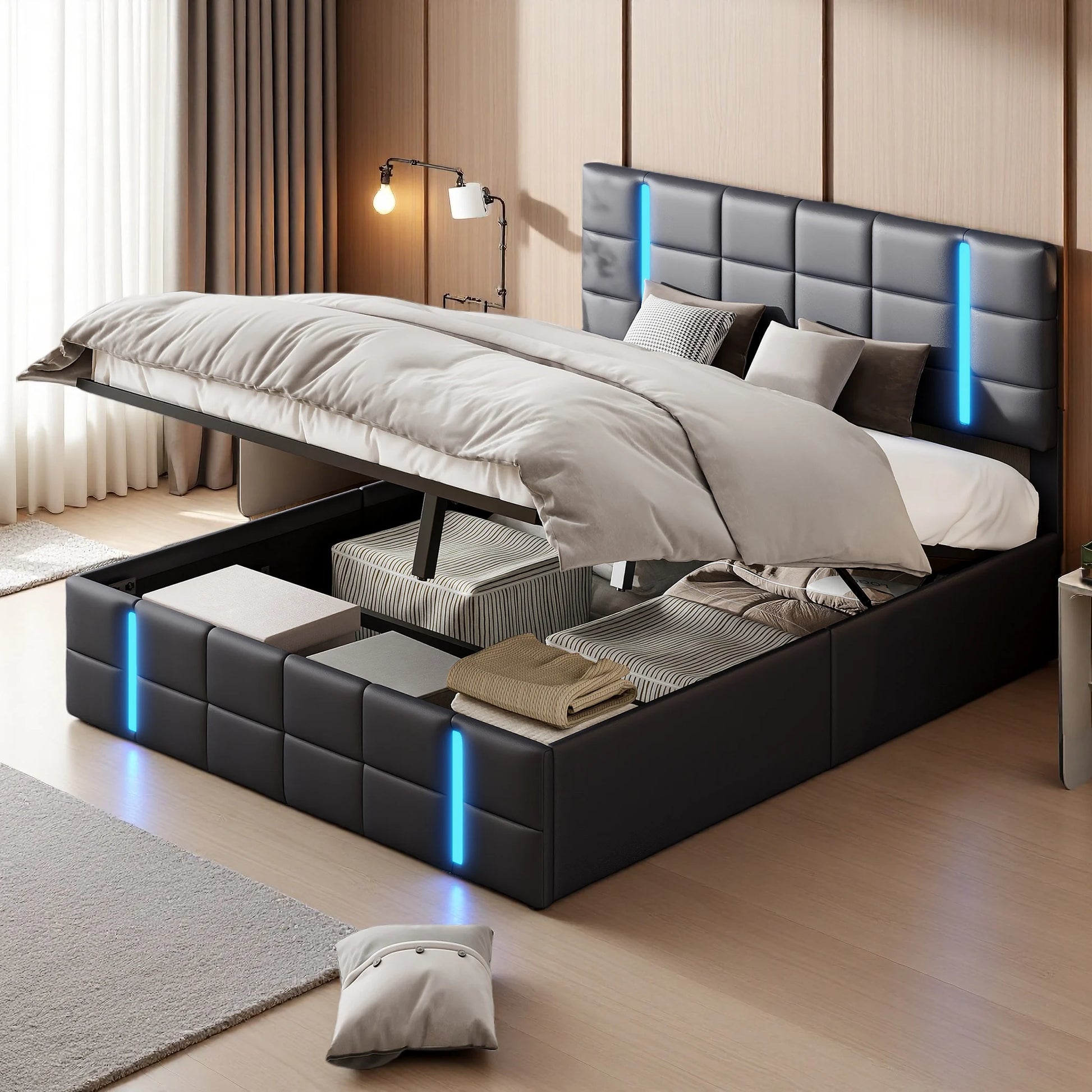 Rosahqnda Polsterbett, Doppelbett 140*200cm/160*200cm, Luftdruckbett mit Stauraum, Erwachsenenbett, Jugendbett, Gästebett, PU
