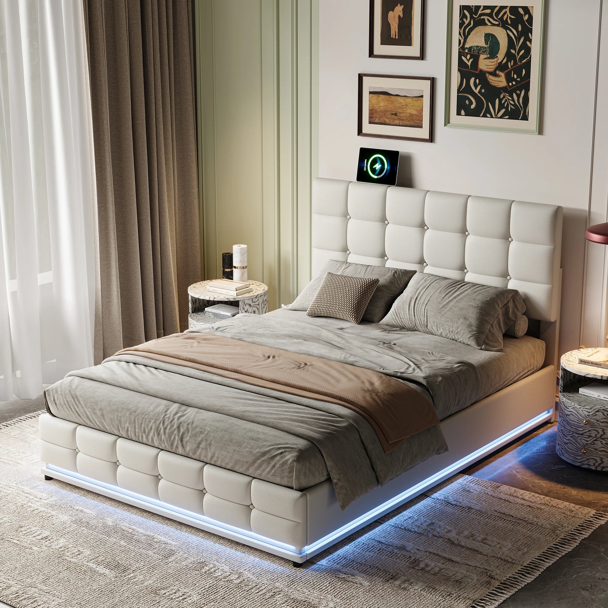 Rosahqnda Polsterbett, doppelbett, Bettgestell, 140 x 200 cm Doppelbett, Stauraumbett, Kunstleder, Weiß, ohne Matratze