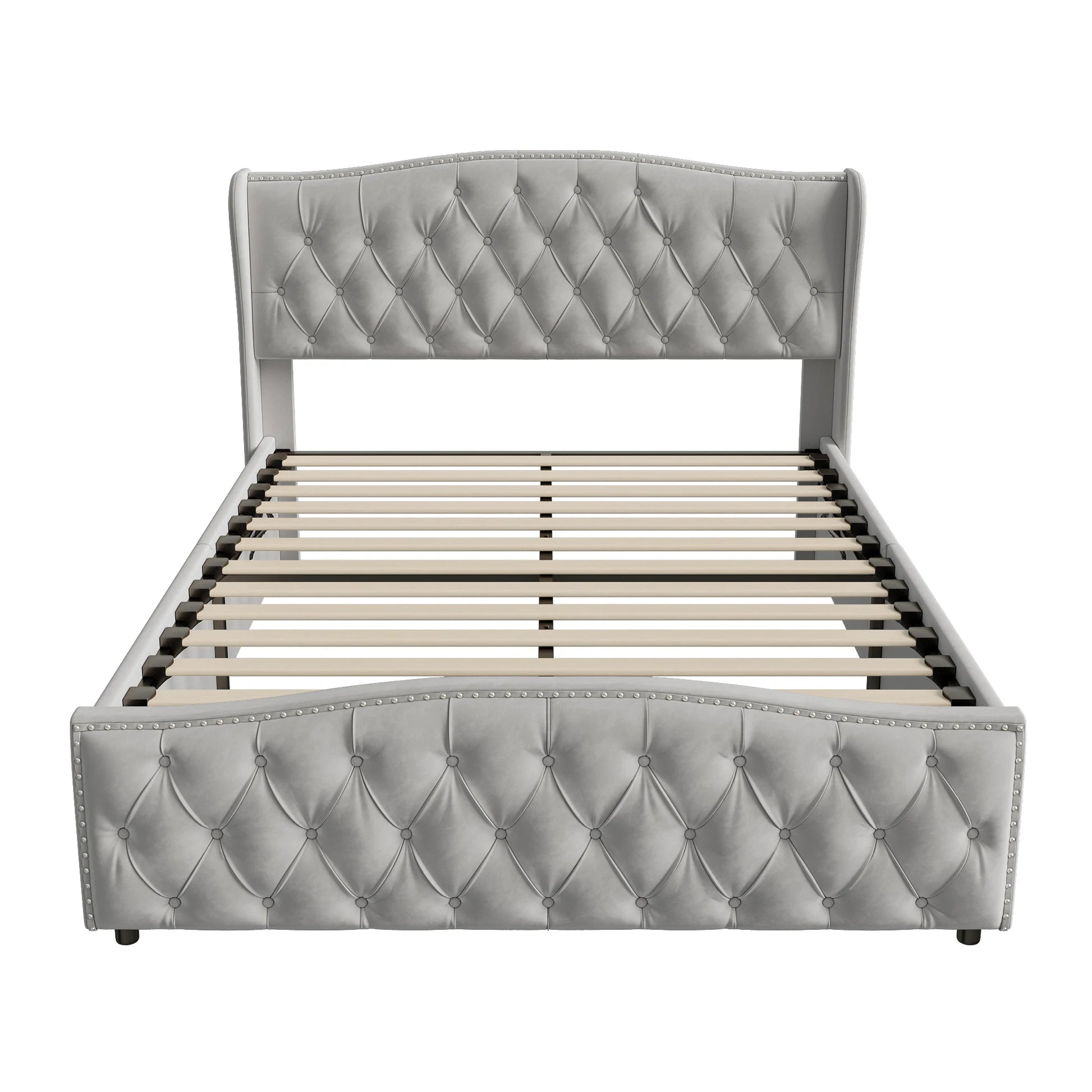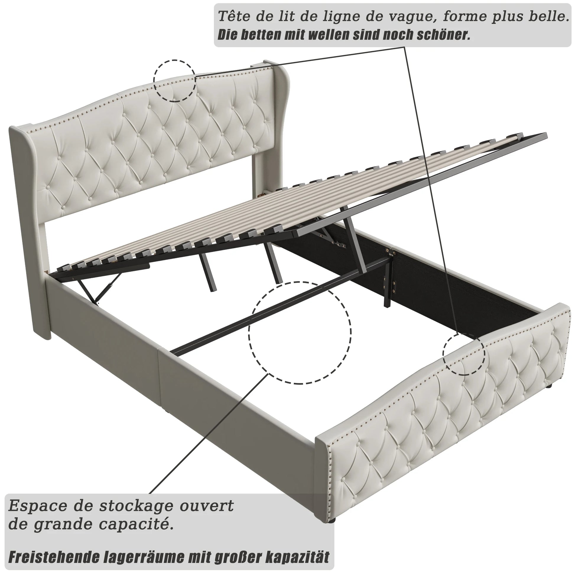 ROSAHQNDA Polsterbett, hydraulisches Bett im modernen Stil, 140/160 x 200 cm, graue Flanellniete. Doppelbett ohne Matratze