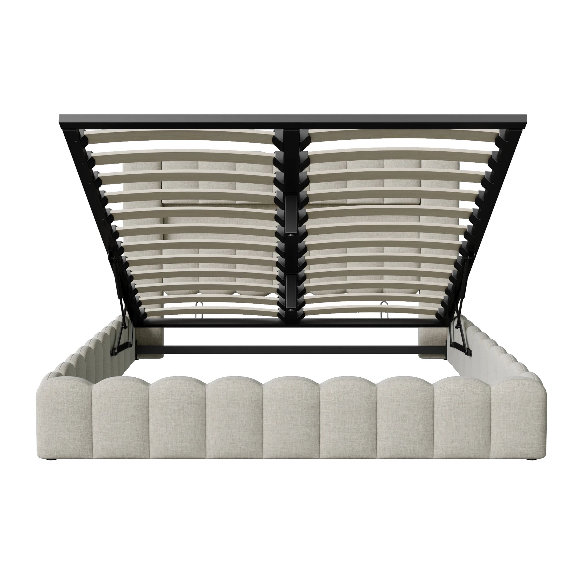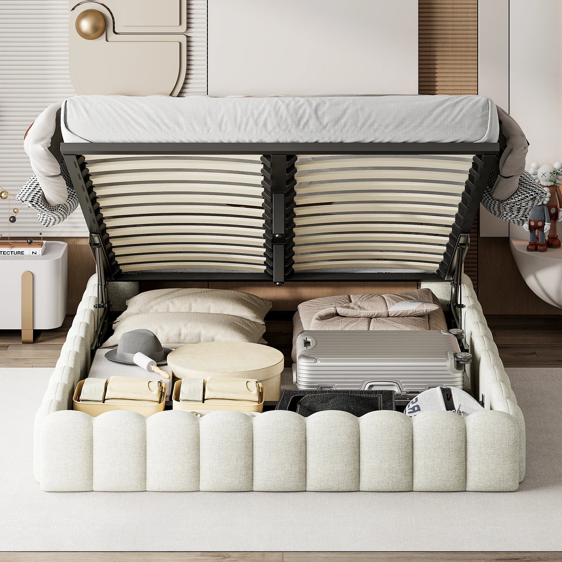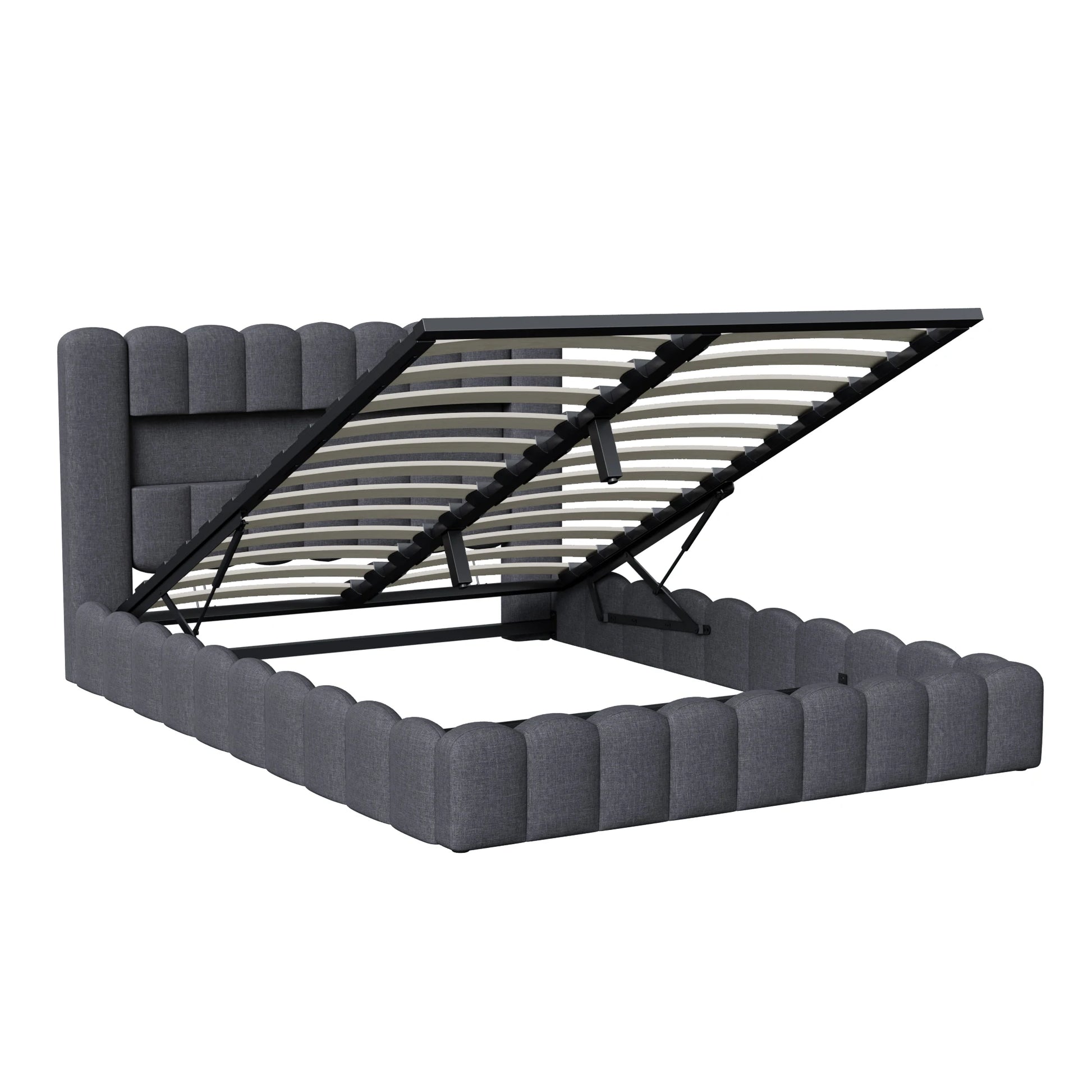 Rosahqnda Polsterbett mit LED- und USB-Anschluss, Leinenbaumstumpfbettgestell mit Kopfteil, 140 x 200 cm großes hydraulisches Bett ohne Matratze