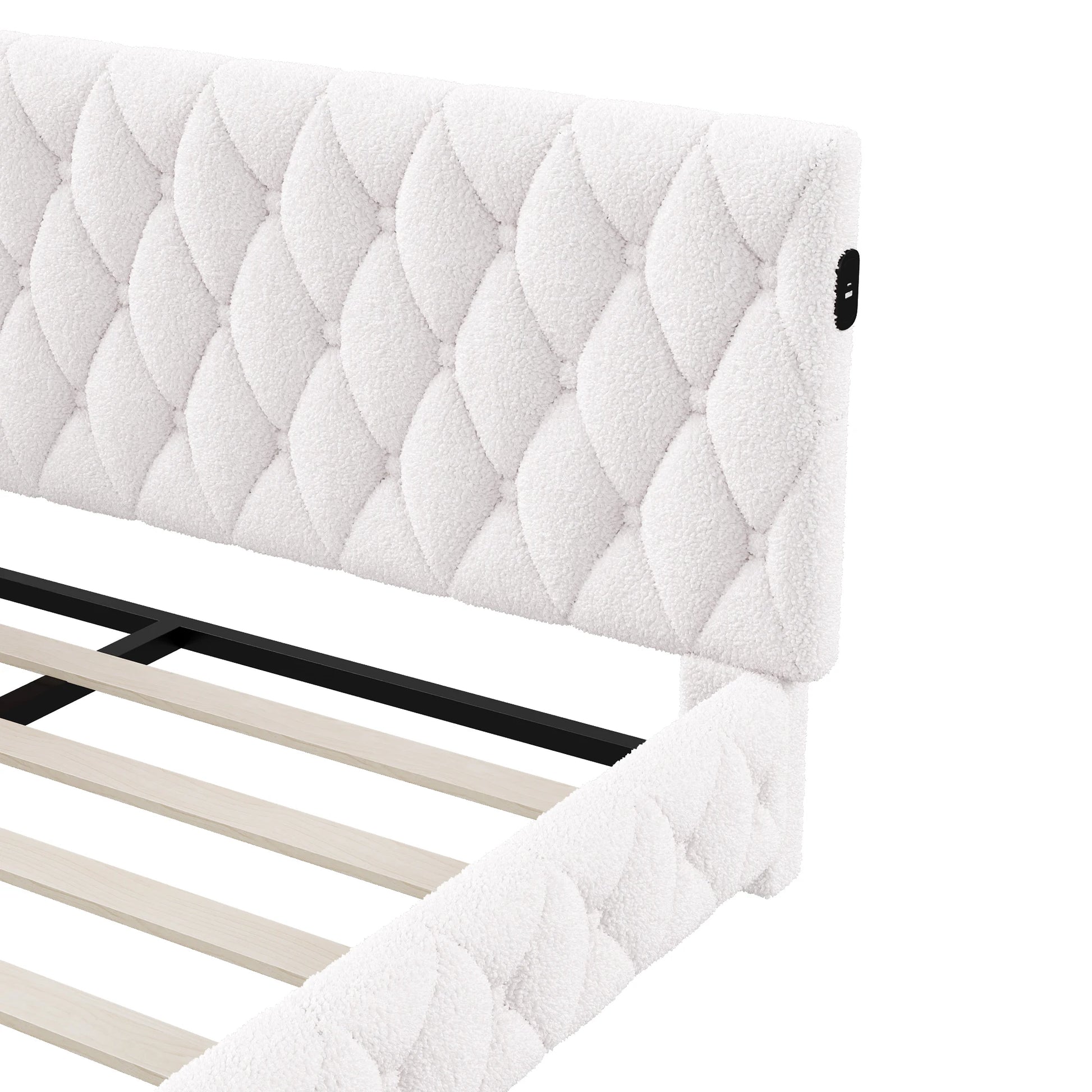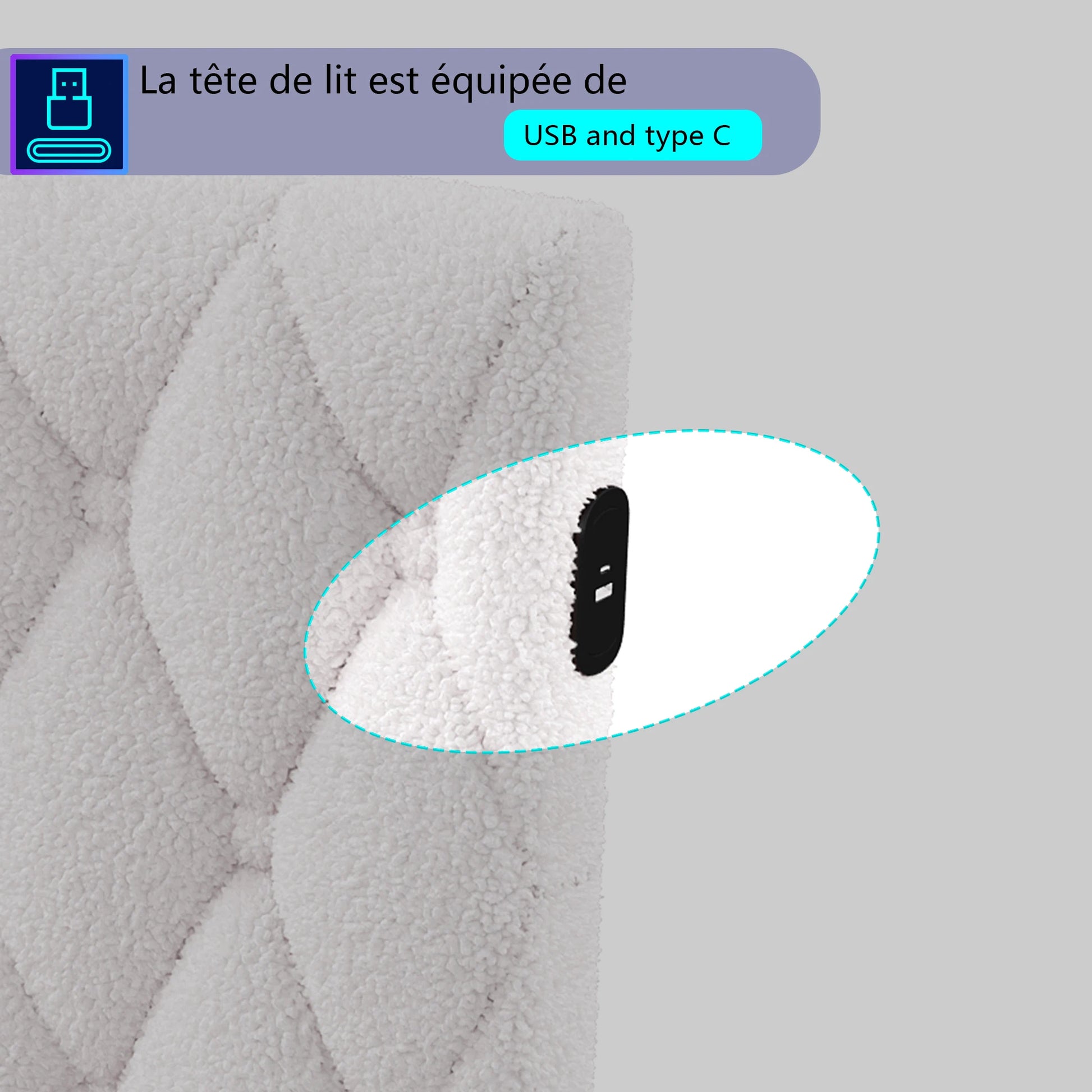 ROSAHQNDA Schlafsofa 140*200cm, modernes LED-Doppelbettgestell mit USB-Ladeanschlüssen, komfortables Plüschmaterial, ohne Matratze