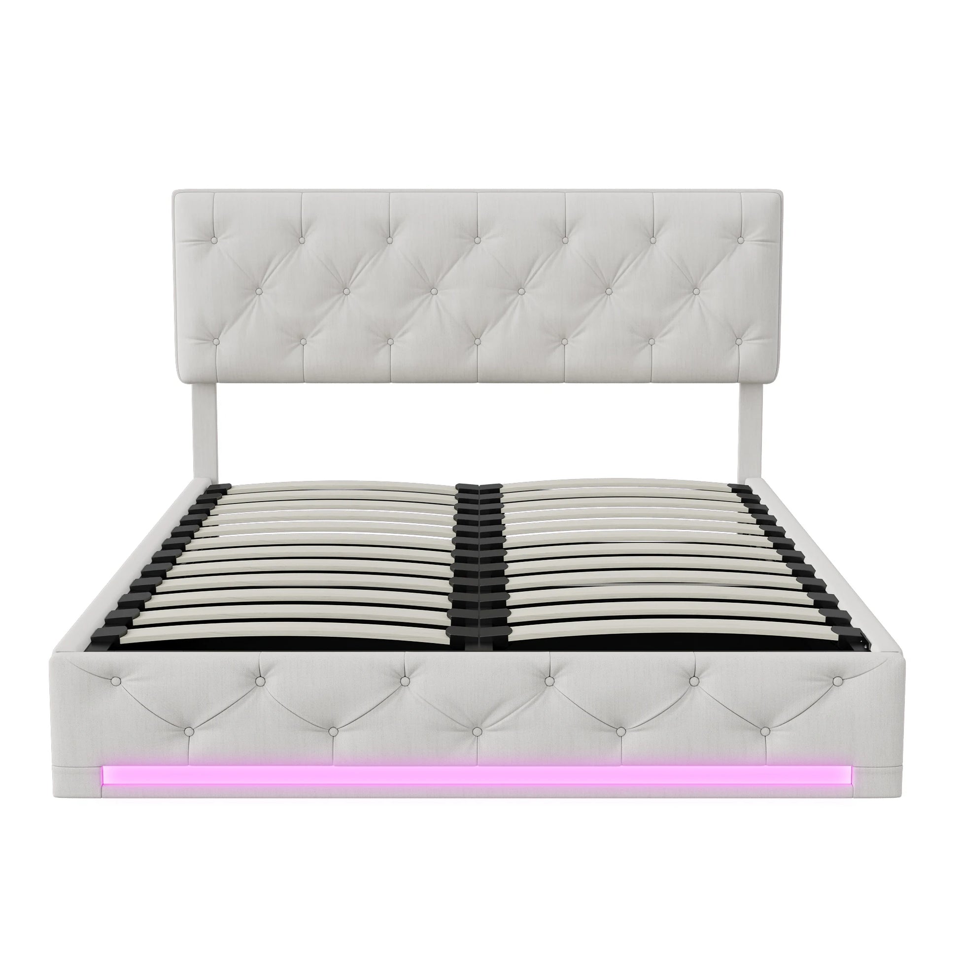 Rosahqnda upholstered bed, double size, with LED lights, storage bed with hydraulic lift box, adjustable headboard height, linen