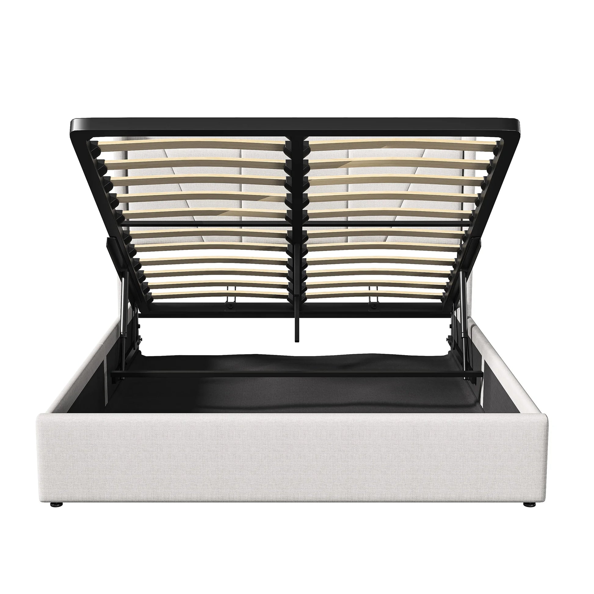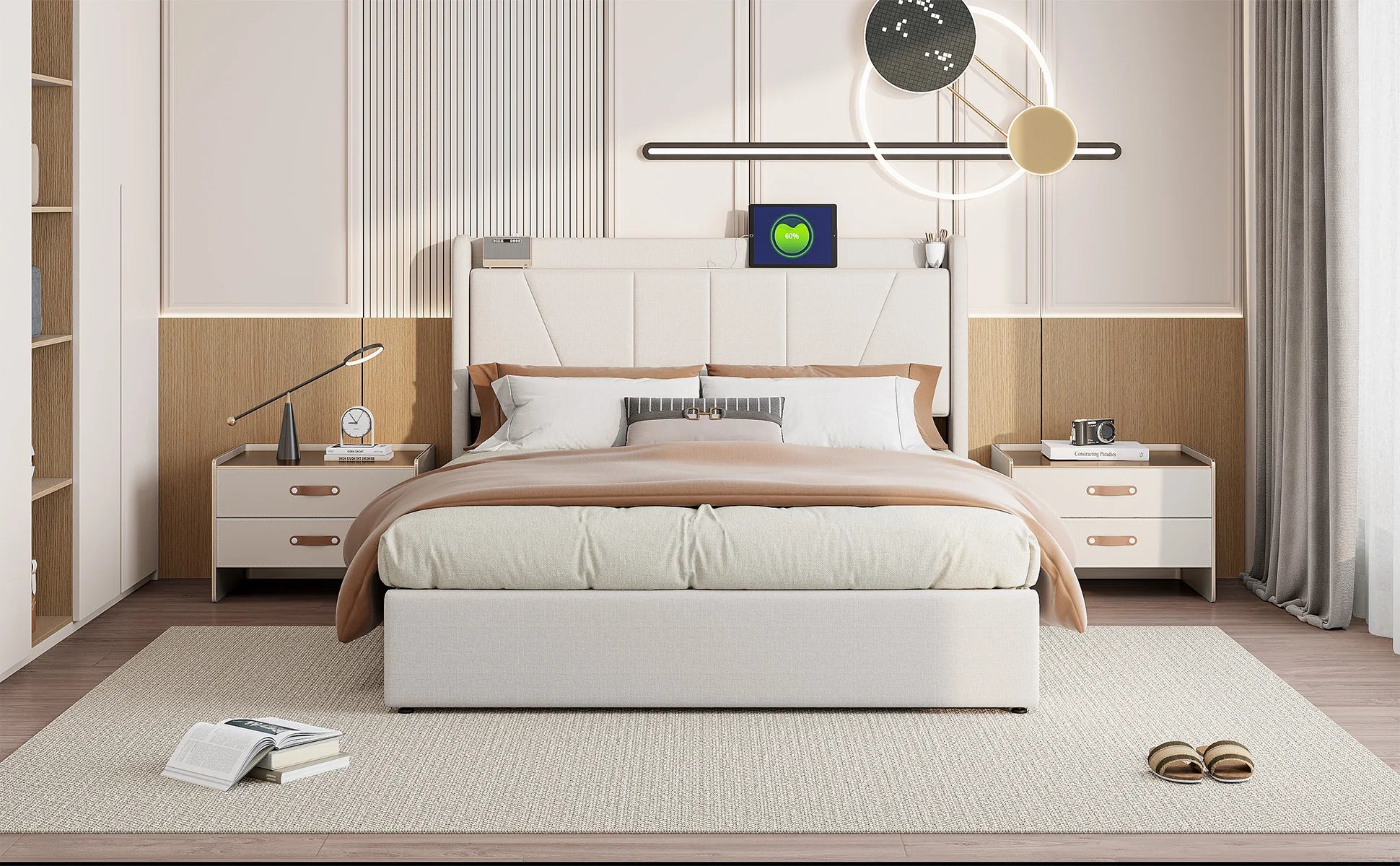 RosahqndaPolsterndes Doppelbett mit Stauraum unter dem Bett, LED-Kopfteil mit USB/Typ C, Bettgestell mit Stauraum und Lattenrost