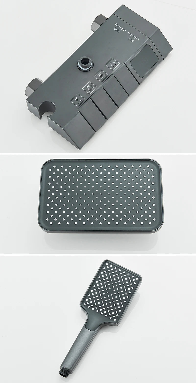 Rozin Black Smart Digital Display Shower Faucet Set Piano Style Rainlfall Bathroom System Grey Digital Mixer Tap Bidet Shower
