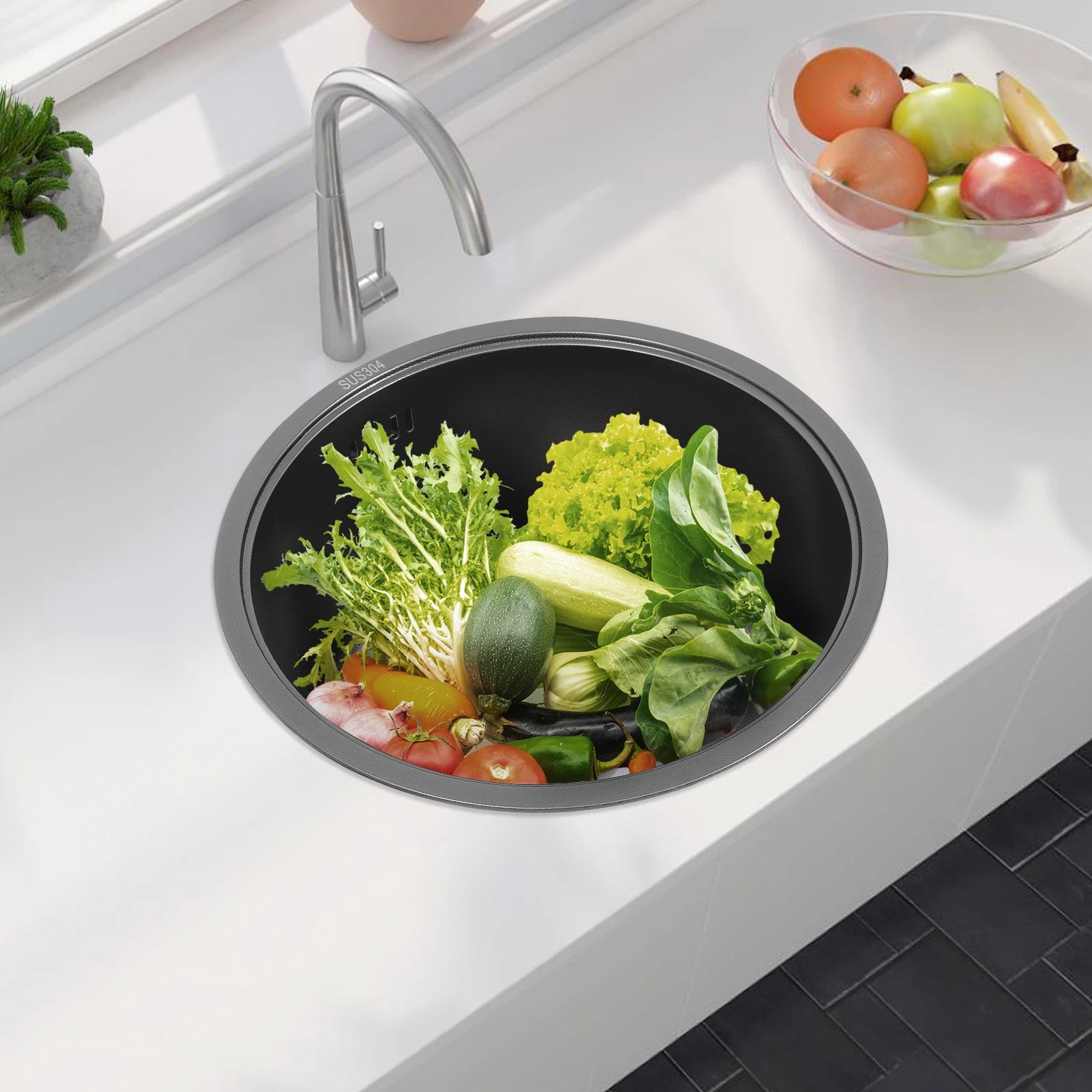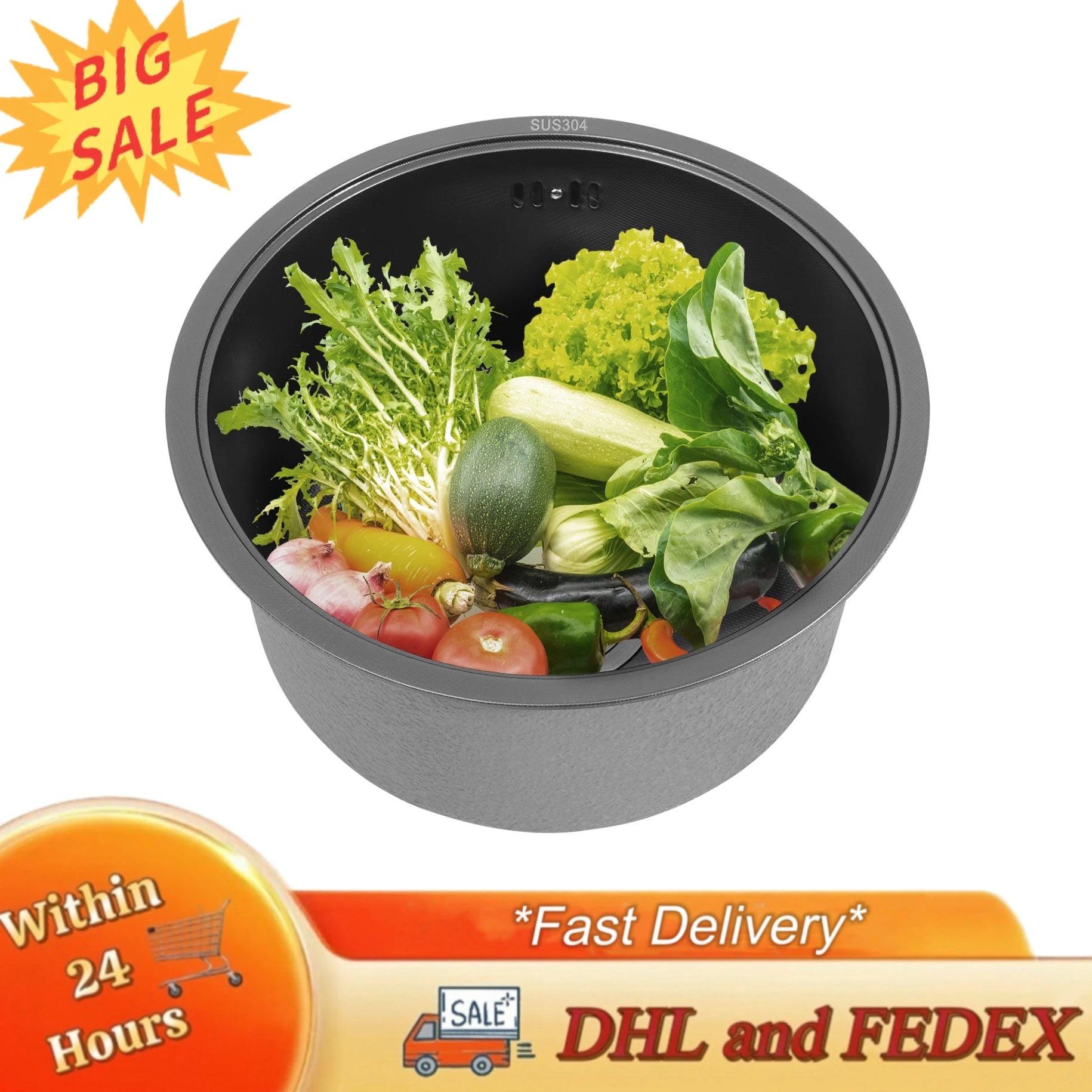 Rundes Küchenspüle aus Edelstahl 304, hitzebeständiges Küchenspüle, Einzelbecken, schnelle Entwässerung zum Geschirrspülen von Gemüse