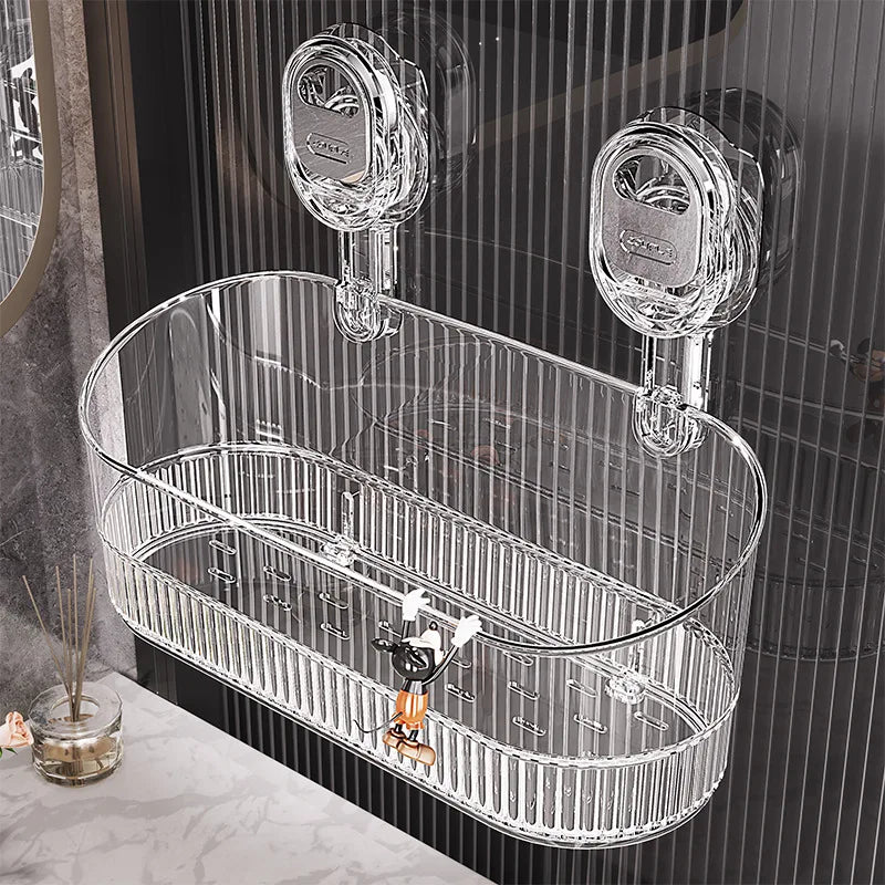 Saugnapf-Aufbewahrungsregal für Badezimmer, stanzfreie, an der Wand montierte Aufbewahrungsbox, kann abnehmbar werden, leerer Aufbewahrungskorb für Toilettenspüle