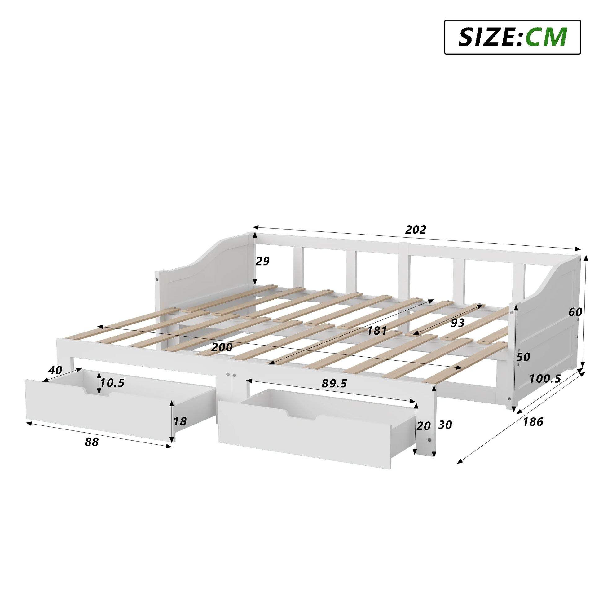Schlafsofa 90/180 x 200 cm, Doppelbett, Einzelbett mit ausziehbarer Schublade, mit Lattenrost, Massivholz, keine Matratze