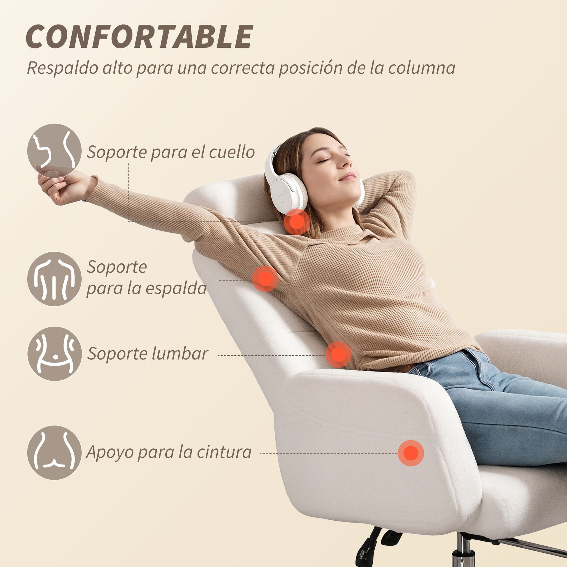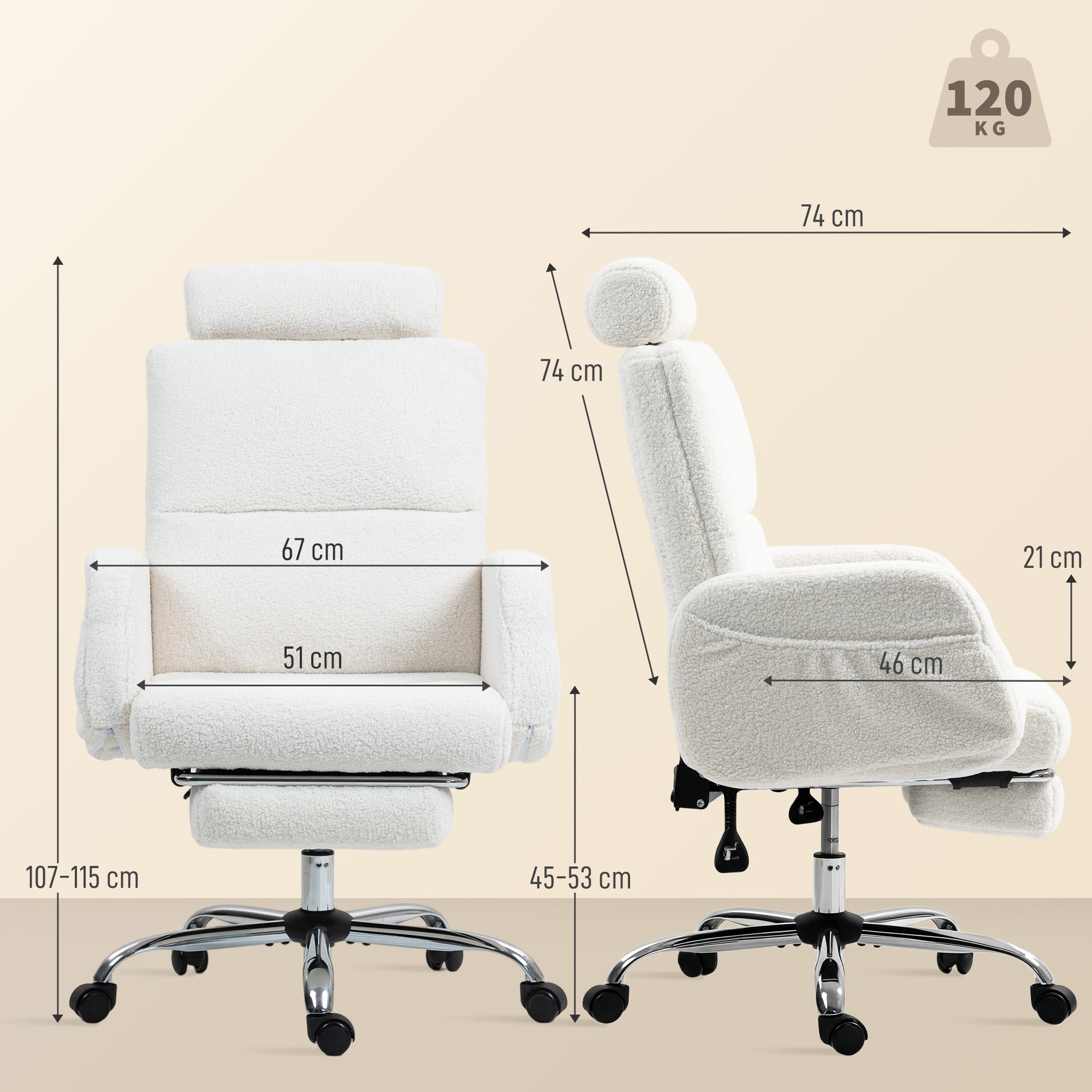 Schreibtischstuhl mit Fußstütze, gepolstert in Lammfell, mit verstellbarer Rückenlehne, verstellbare Kopfstütze, Creme