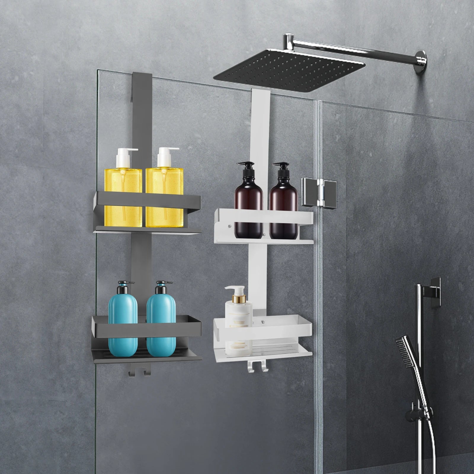 Schwarz/Silber 2-stufiges modernes weißes Badezimmerregal, Badezimmer-Organizer aus Edelstahl, geeignet für Badezimmer, Küche, Wohnzimmer