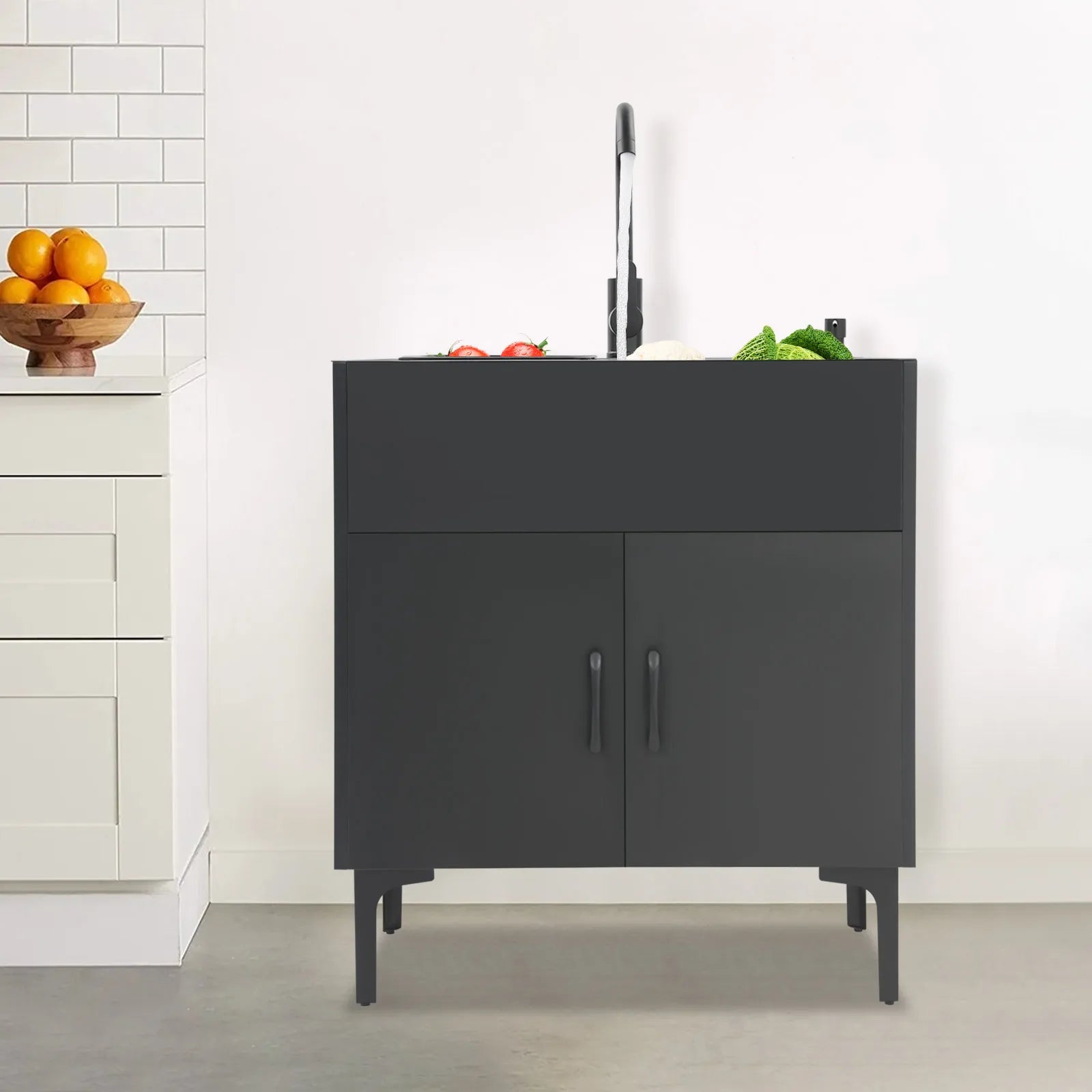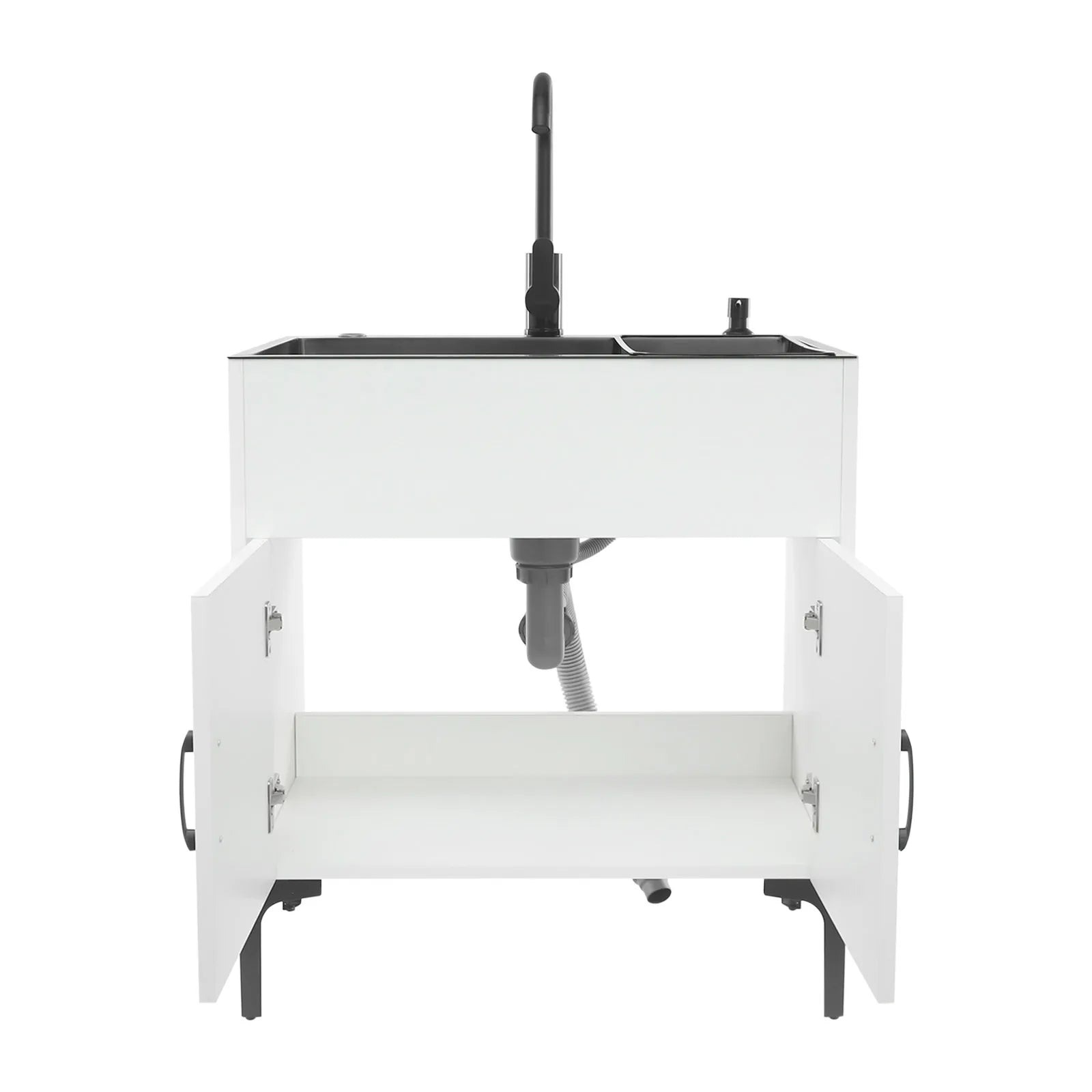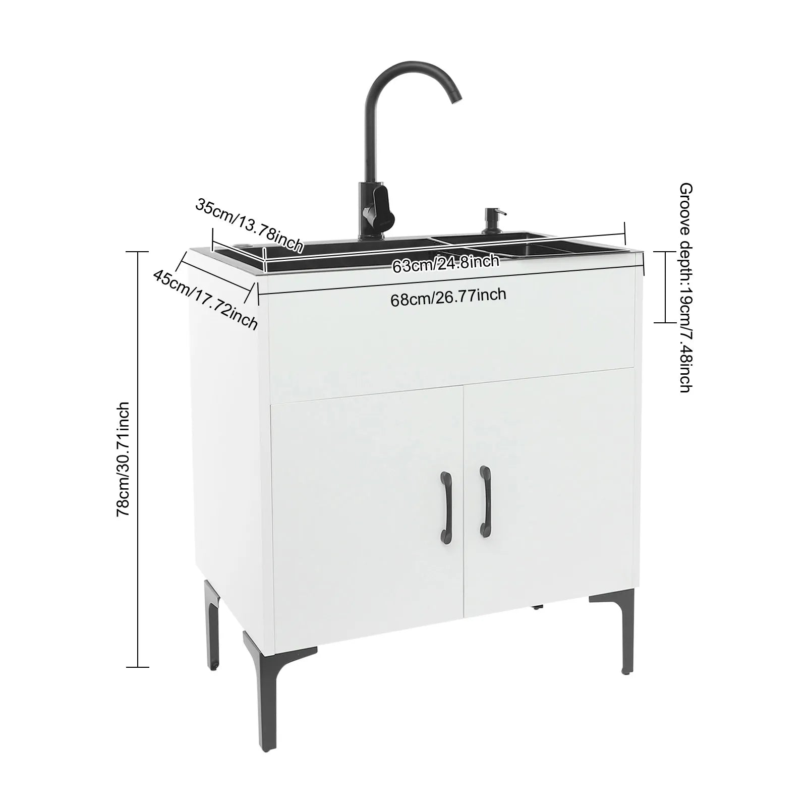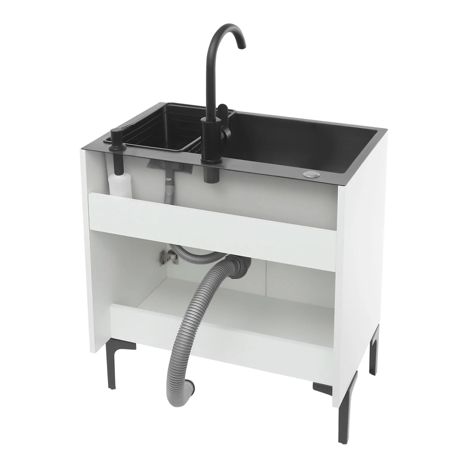 Schwarz/weißes unabhängiges Waschbecken mit Schrank, Küchenspüle aus Edelstahl mit 360° ° Drehbarer Wasserhahn für Badezimmer, Waschbecken