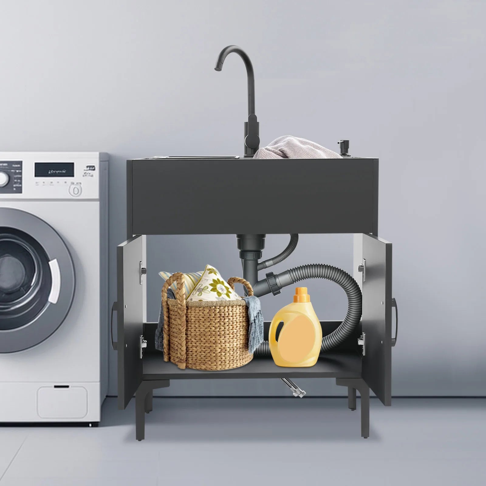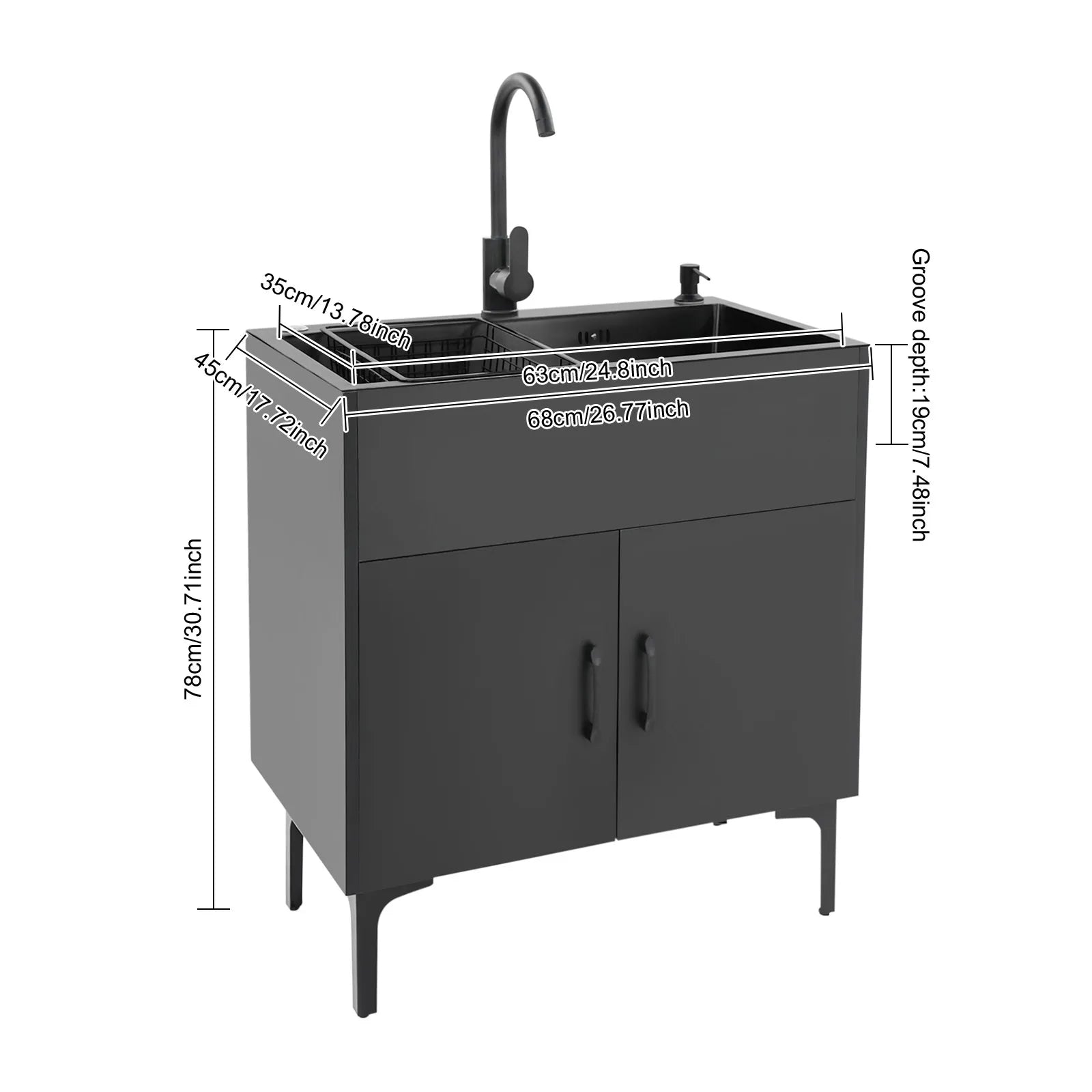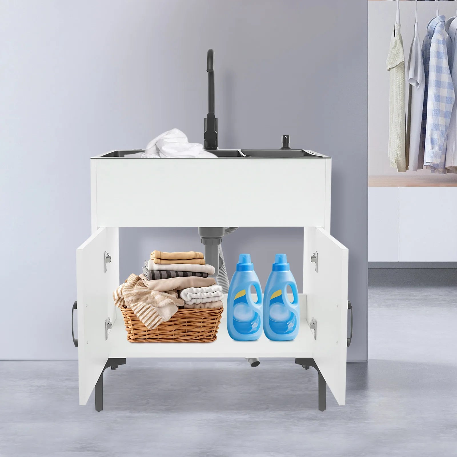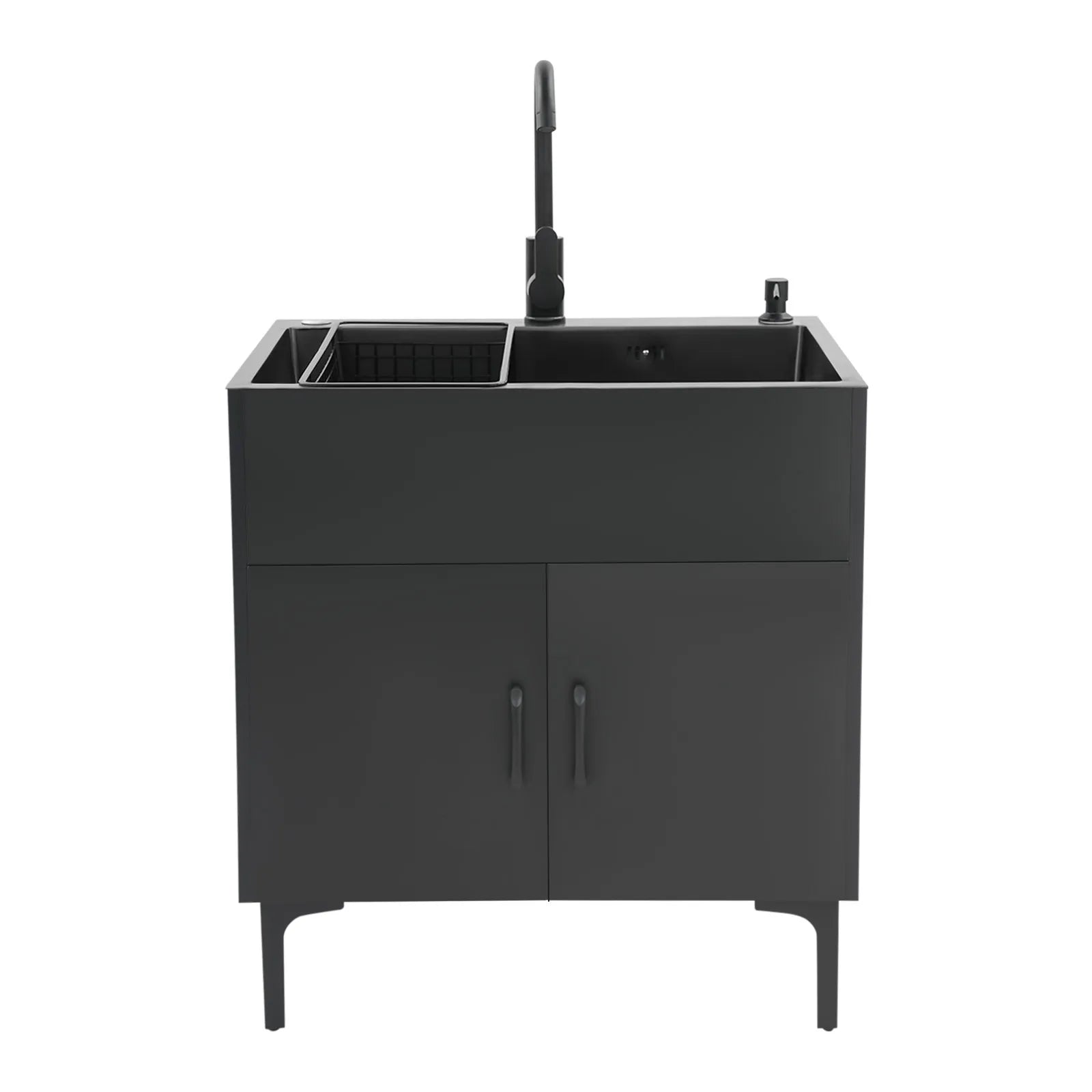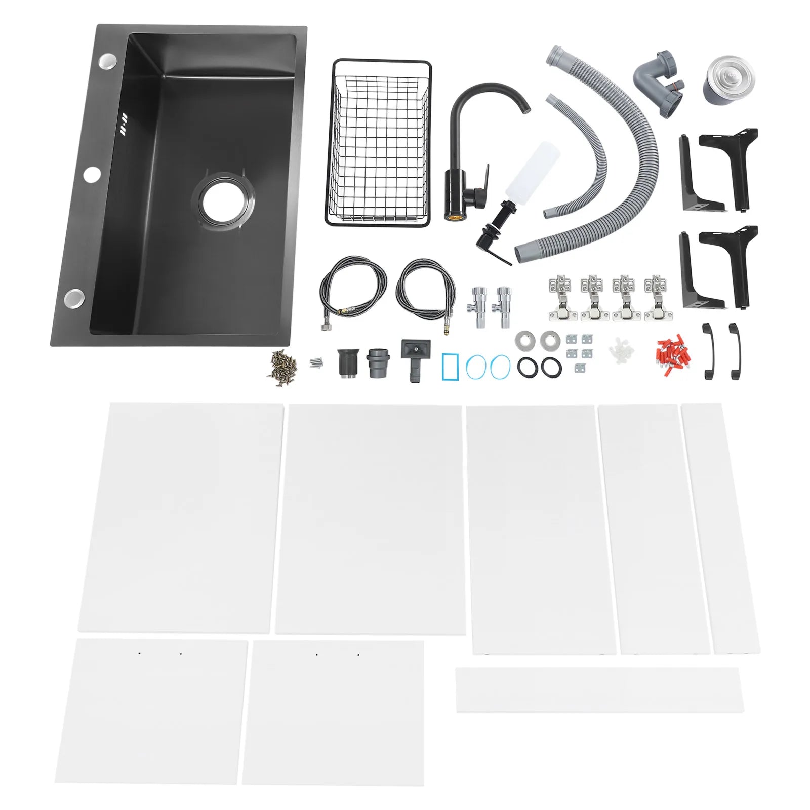 Schwarz/weißes unabhängiges Waschbecken mit Schrank, Küchenspüle aus Edelstahl mit 360° ° Drehbarer Wasserhahn für Badezimmer, Waschbecken