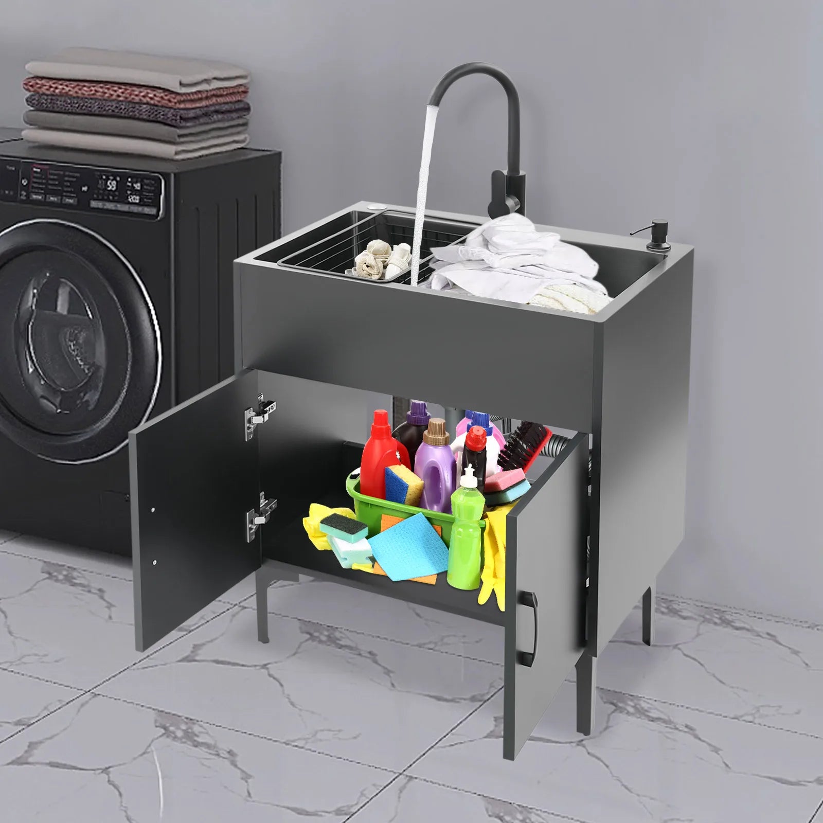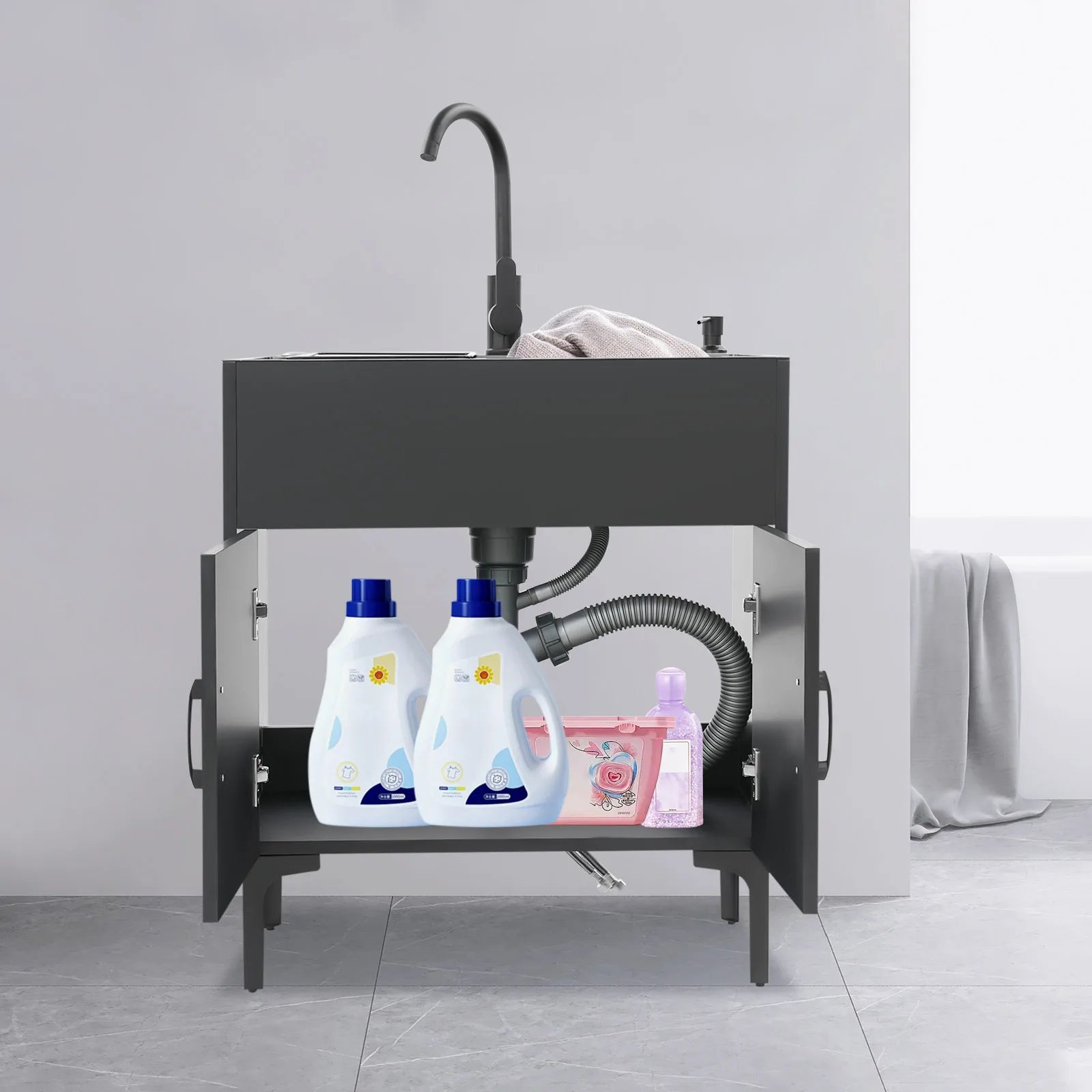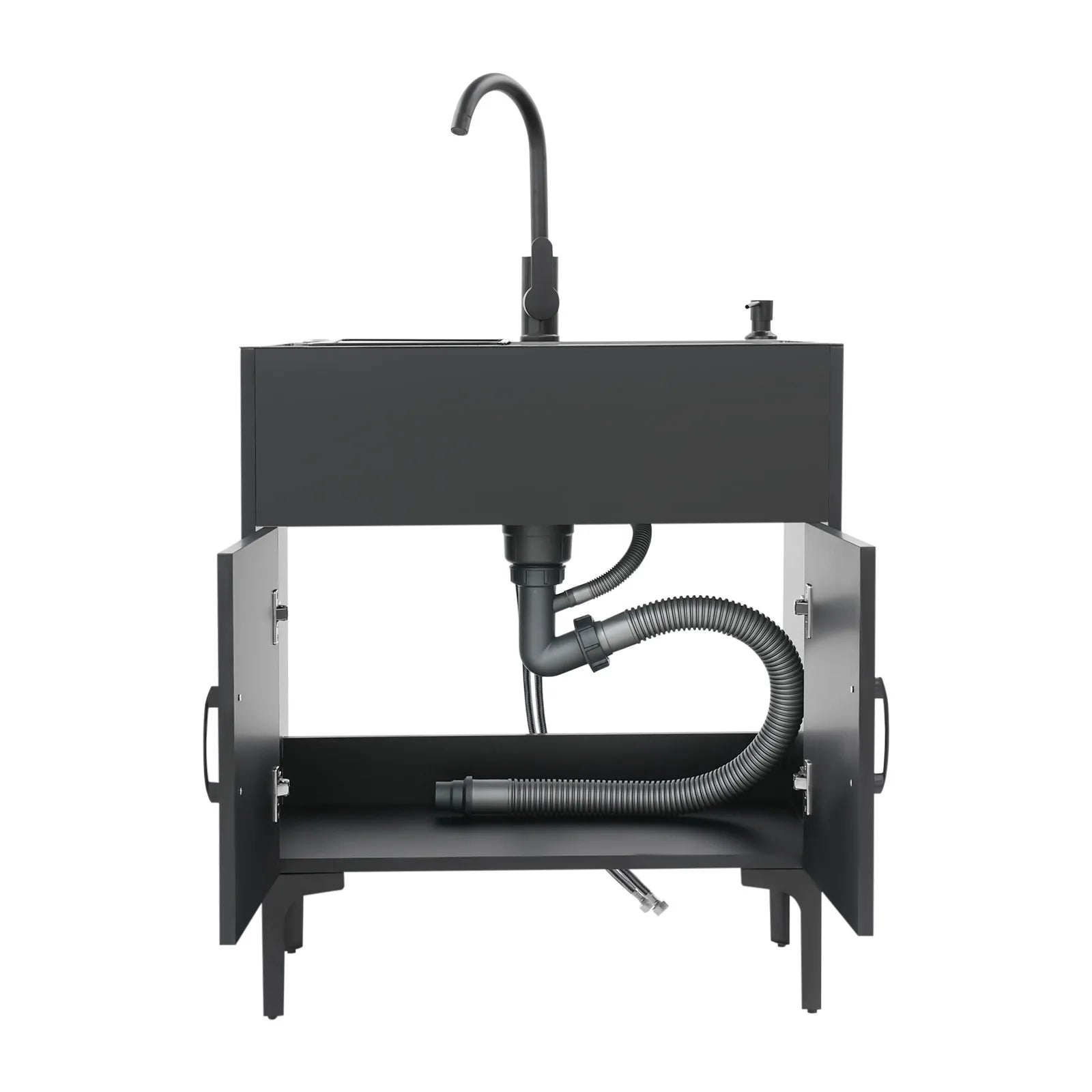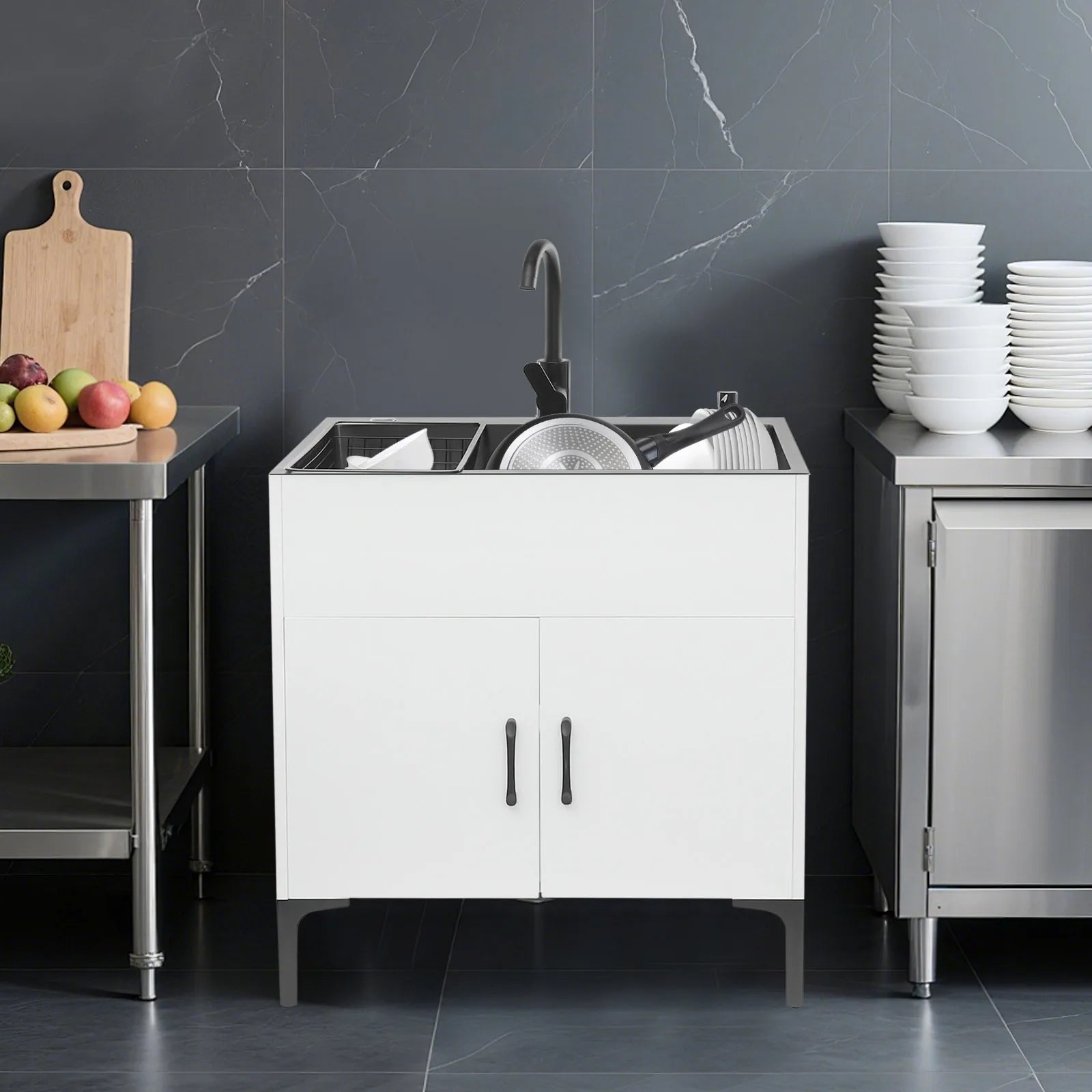 Schwarz/weißes unabhängiges Waschbecken mit Schrank, Küchenspüle aus Edelstahl mit 360° ° Drehbarer Wasserhahn für Badezimmer, Waschbecken