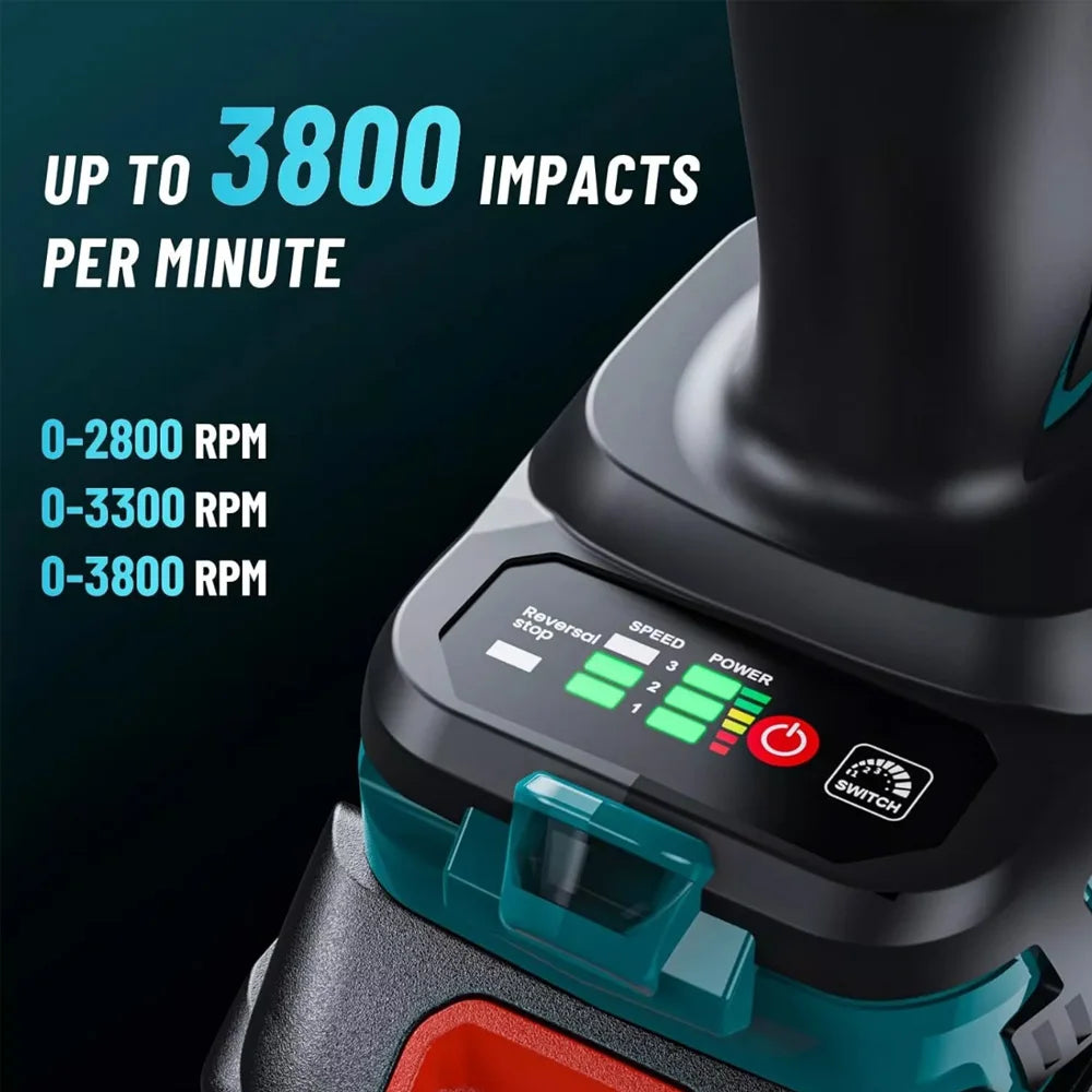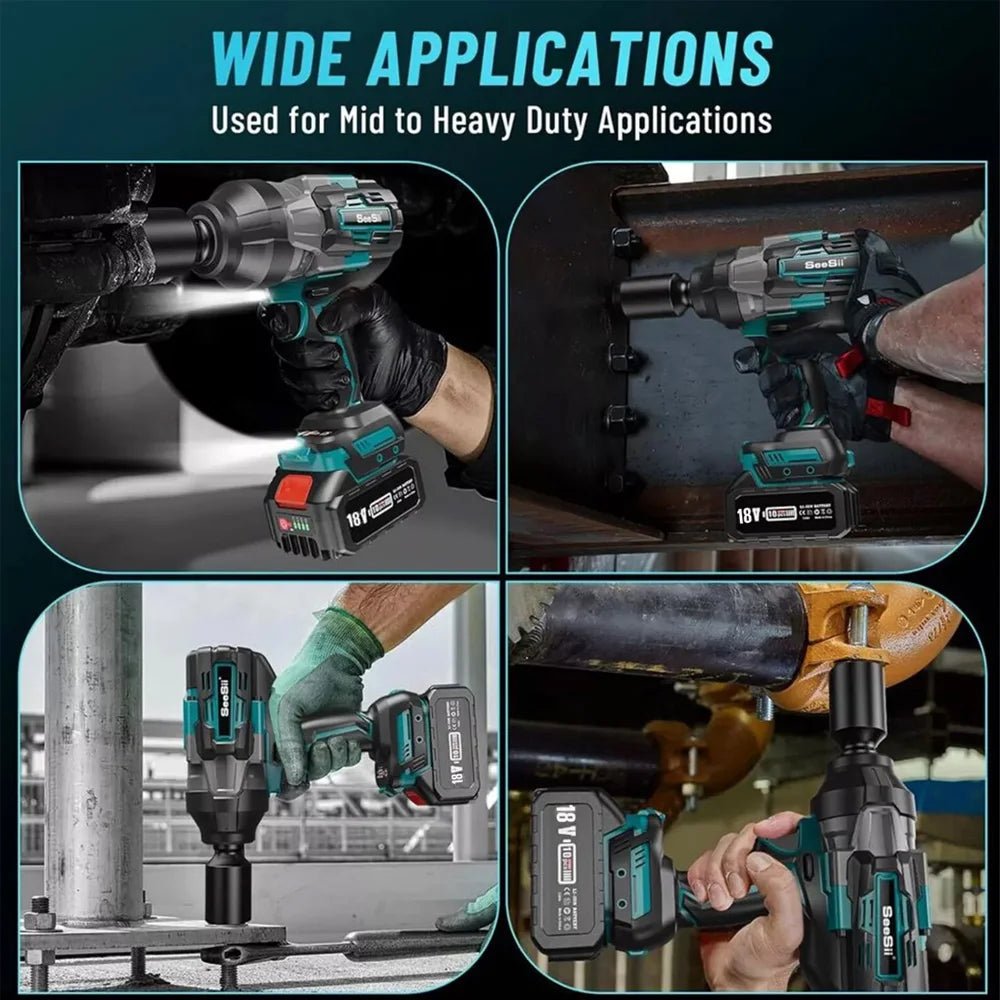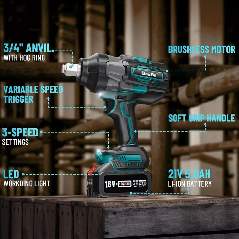 Seesii 1600NM Akku-Schlagschrauber-Set, bürstenloser elektrischer Schraubenschlüssel, 3/4 Zoll Schlagpistole mit 3/4 Zoll bis 1/2 Zoll Adapter, LKW-Auto-Reparaturwerkzeuge