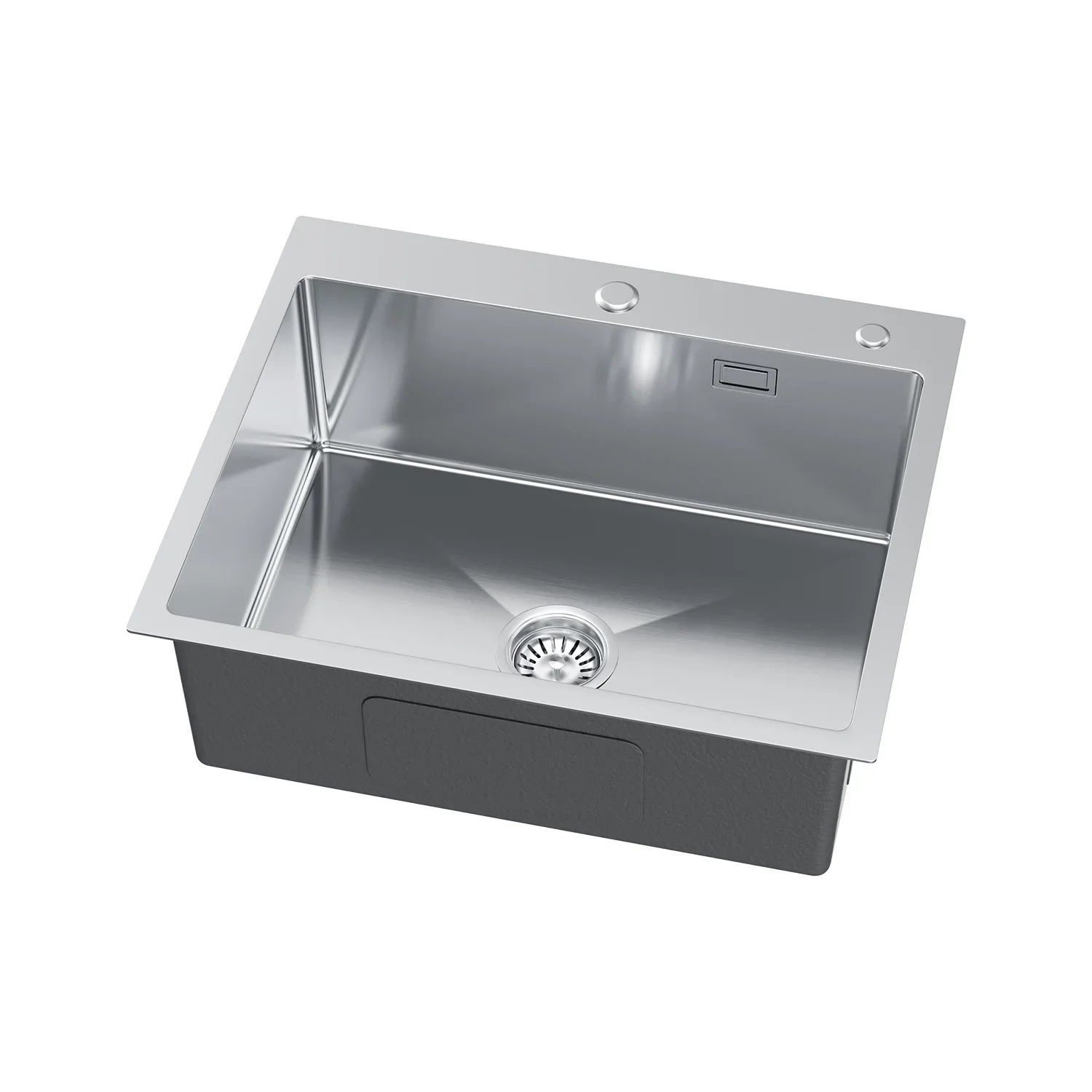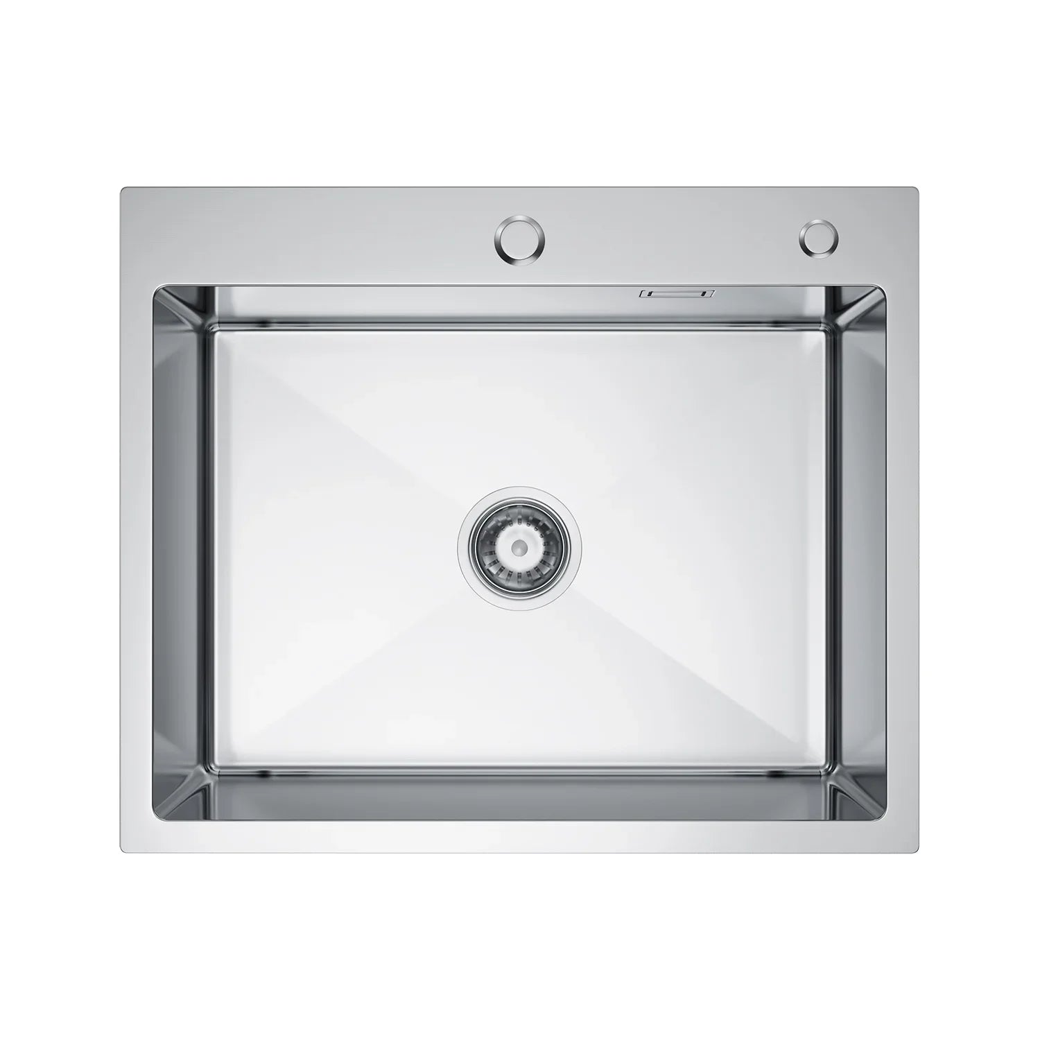Silberne Edelstahlspüle aus Edelstahl von Inox, 60 x 50 cm – Einzelschüssel mit Wasserhahnloch und Abflussrohr, X-förmiger schneller Abfluss für moderne Küchen