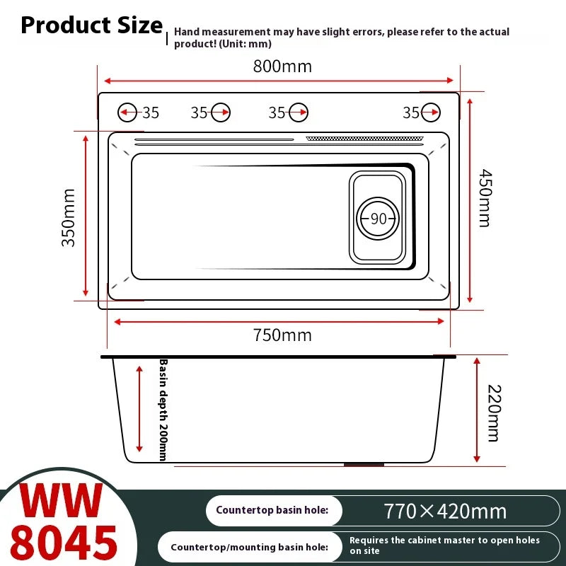 Silver 304 Stainless Steel Kitchen Sink Independent Waterfall Outlet Household Large Single Slot Wash Dish Bowl Undermount Basin