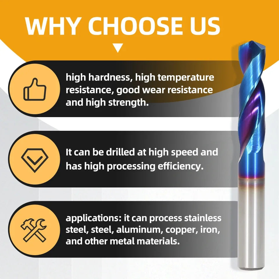 SIQICNC HRC65 ° Wolframkarbid-Bohrer, Metallbohrer für Hartmetallbearbeitung, CNC-Drehmaschine, Stahlbohrwerkzeug, 0,5–20,0 mm