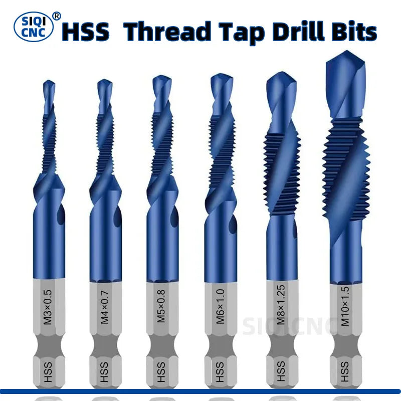 SIQICNC Schaft Titanbeschichtetes HSS-Schraubgewinde Metrisches Gewindebohrer Bohrer Schraubenmaschine Compound Tap M3 M4 M5 M6 M8 M10 Handwerkzeuge