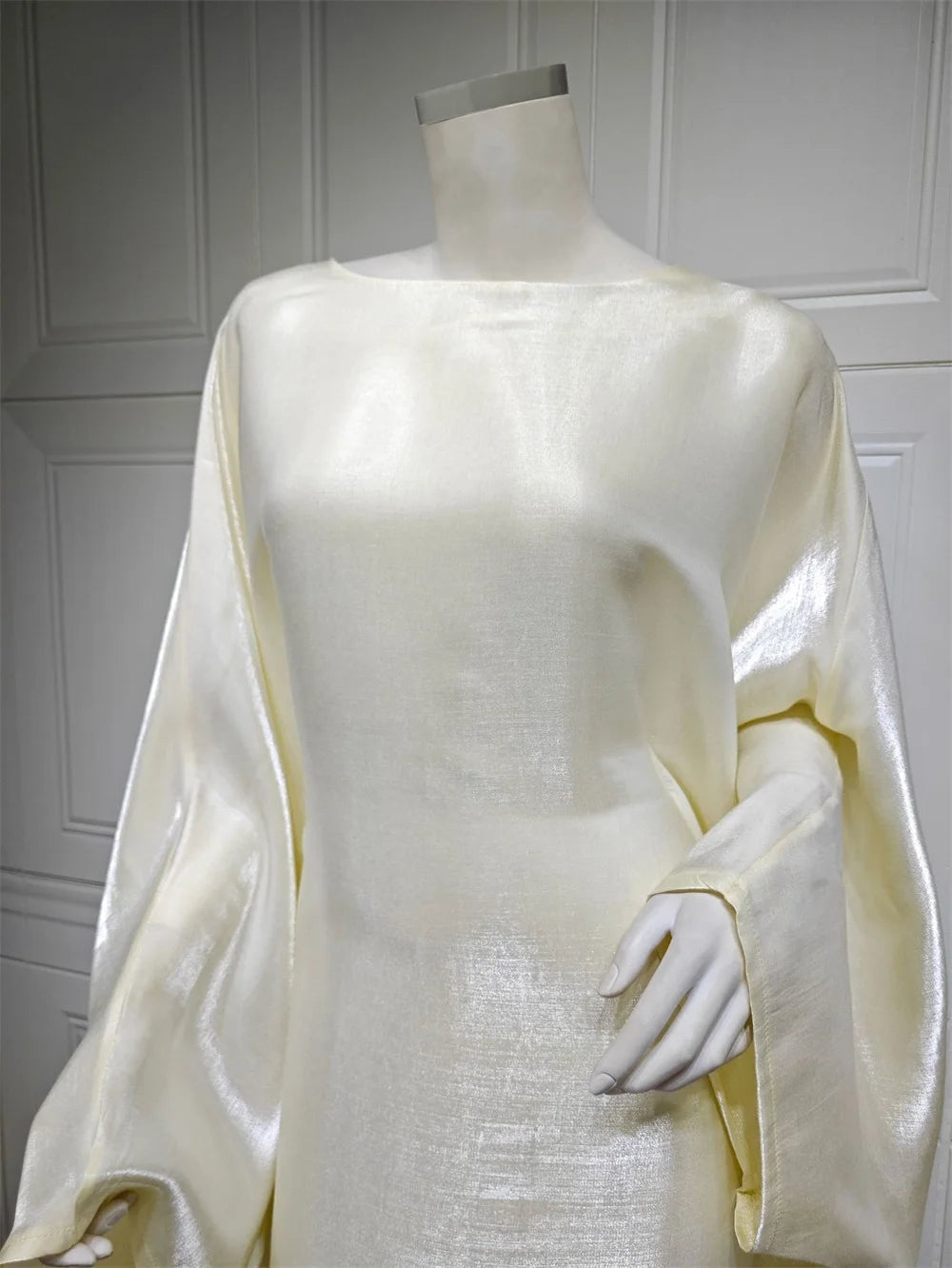 Siskakia Muslim 2024 New Eid Dresses Solid Shiny Satin Batwing Sleeve Modest Kebaya Turkish African Women Abayas Saudi Clothing