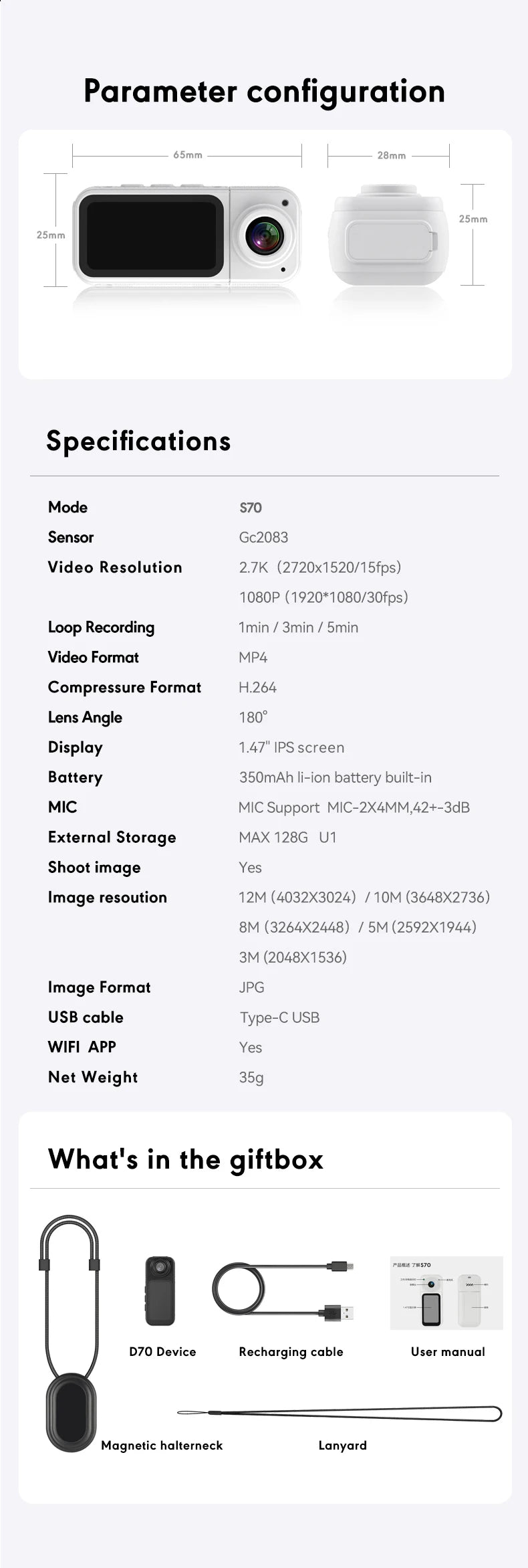 Small Action Camera Sports Cam Bodycam Rotating Lens Go WiFi Digital Pro Video Runcam Instant for Hero 10 11 12 13 Photography