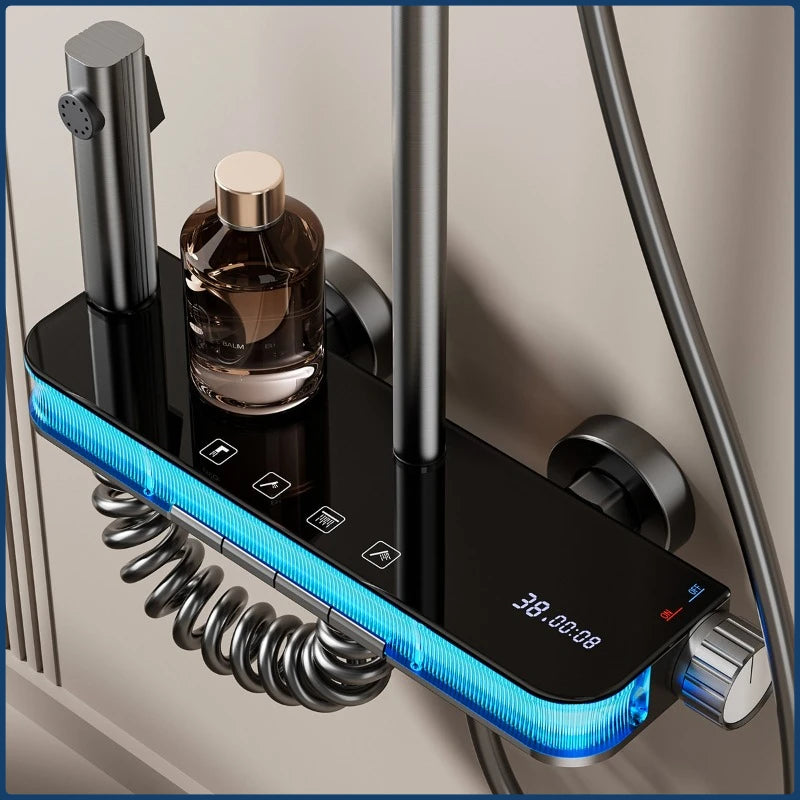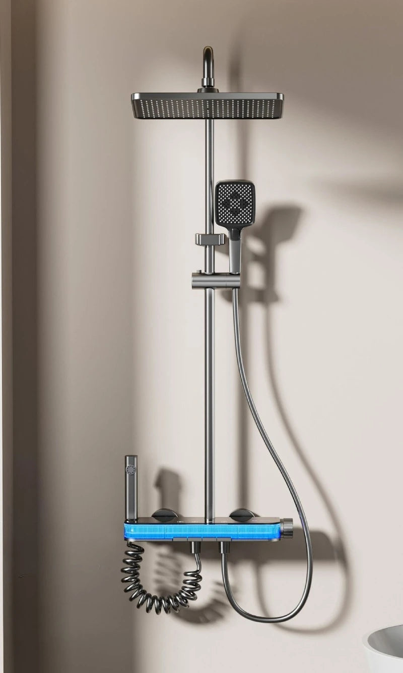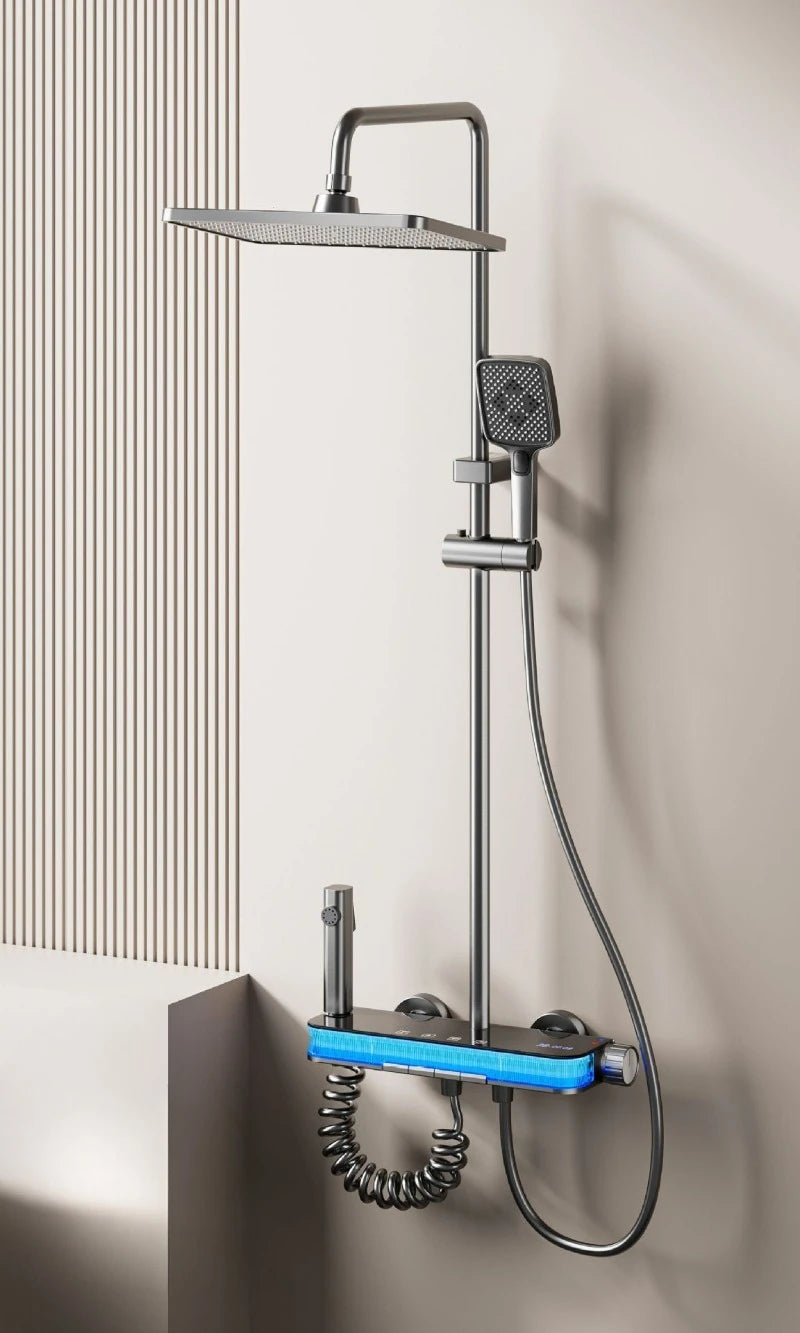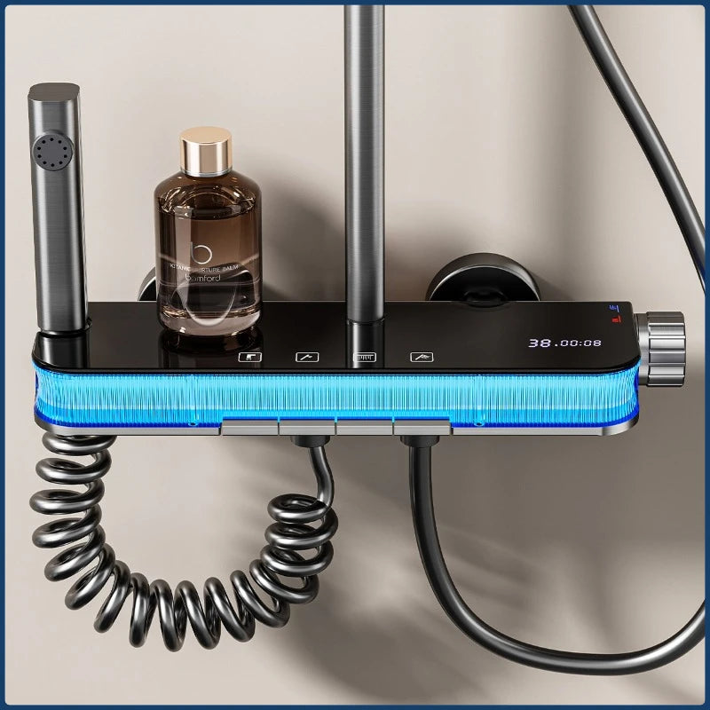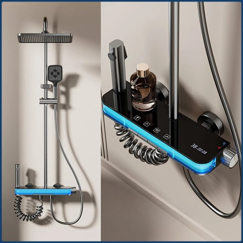 Smart Digital Rainlfall Bathroom Shower Set Temperature Display Bathroom Shower Faucet Set Grey Shower System with Ambient Light