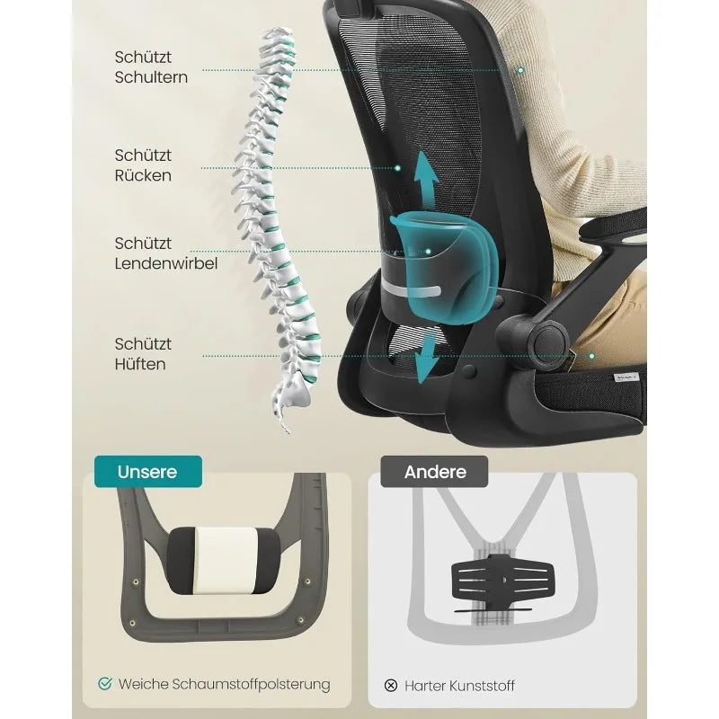 SONGMICS Bürostuhl, Schreibtischstuhl, Drehstuhl mit Netzspannung, ergonomisch, gepolsterte Lendenstütze, Wippfunktion