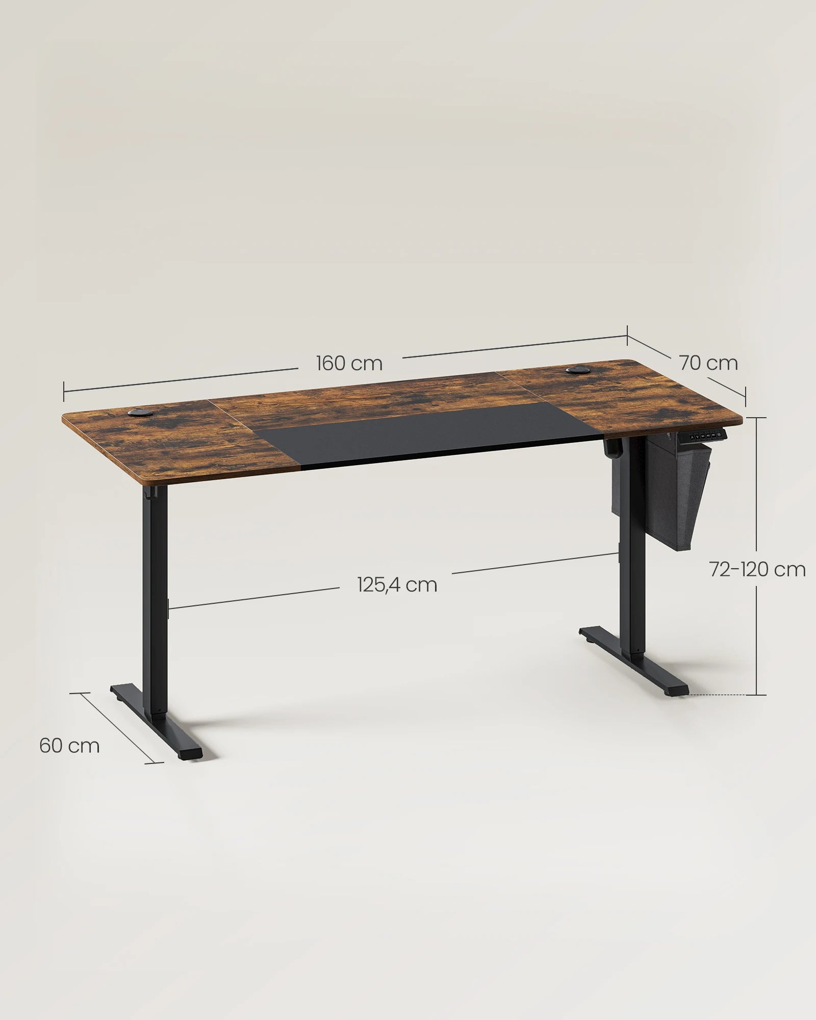 SONGMICS Höhenverstellbarer Schreibtisch elektrisch, 70 x 160 x (72-120) cm, stufenlos verstellbar, gespleißte Platte