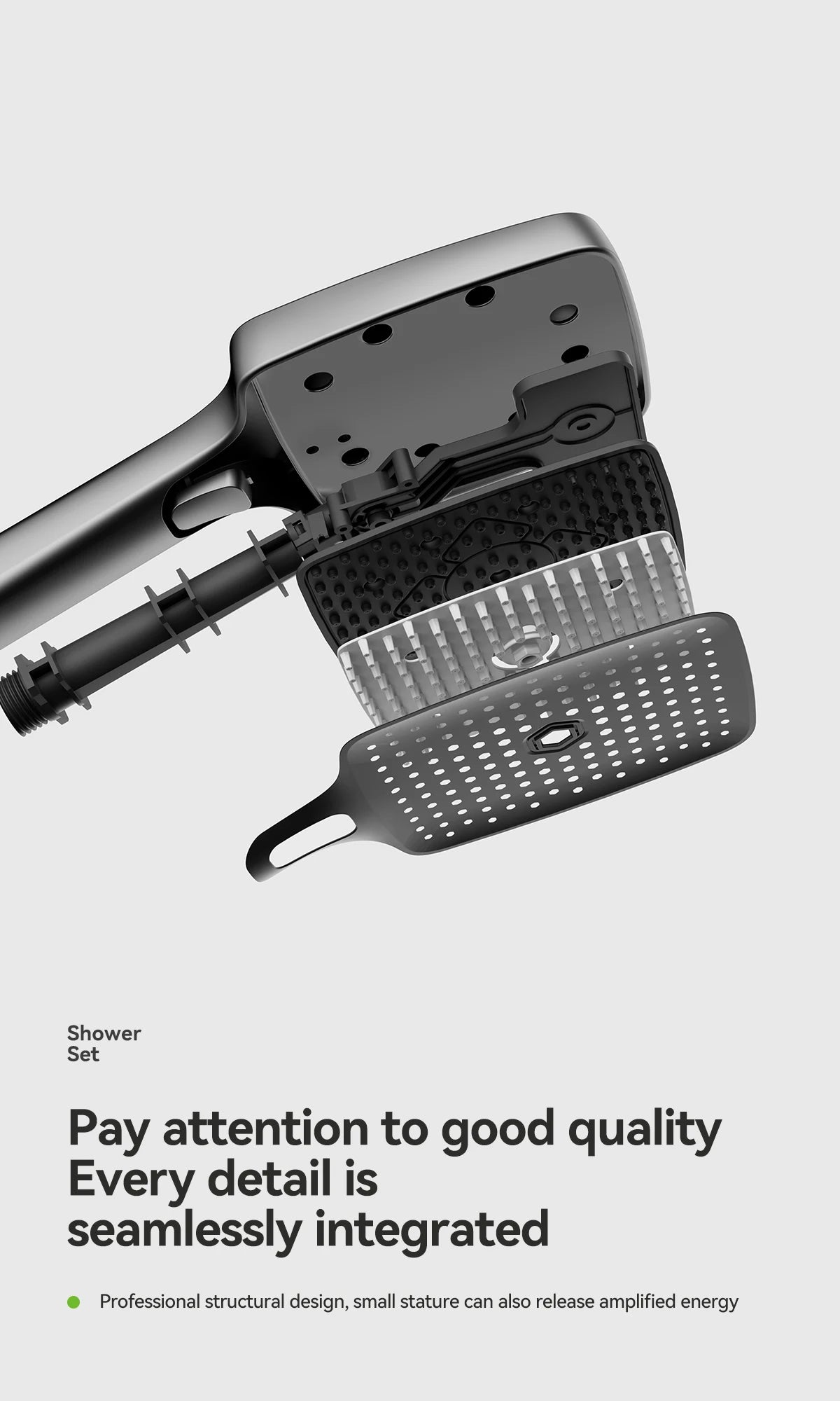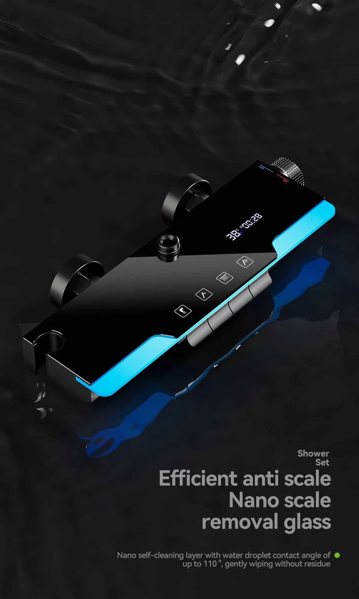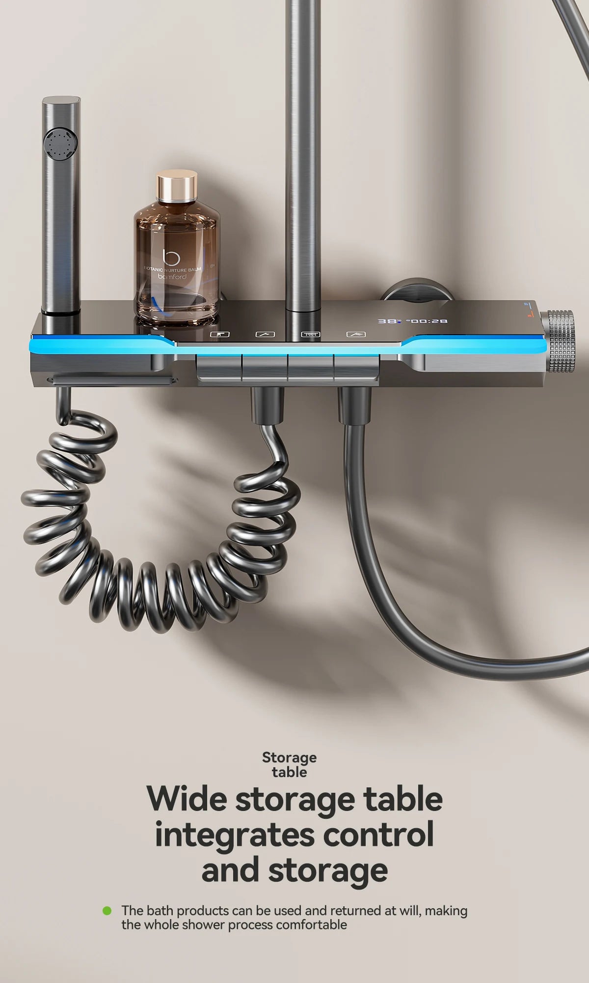 Space aluminum digital display atmosphere light shower shower set, 4-speed turbocharged bathroom shower