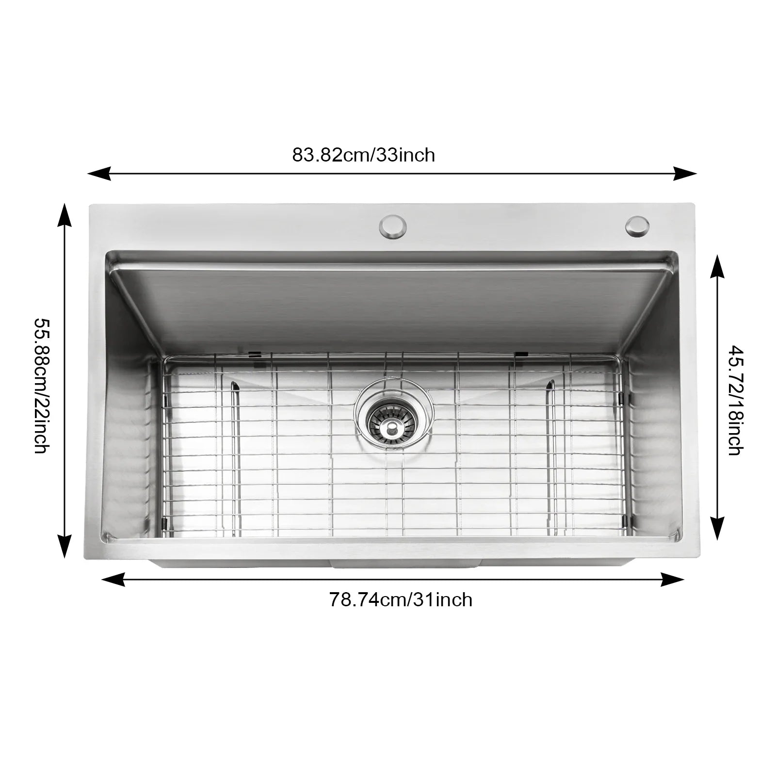 Stahlspüle, 304 Edelstahl, multifunktionale Küchenspüle, Drop-In-Spüle, 33 Zoll Drop-in-Küchenspüle, Workstation, Edelstahlspüle