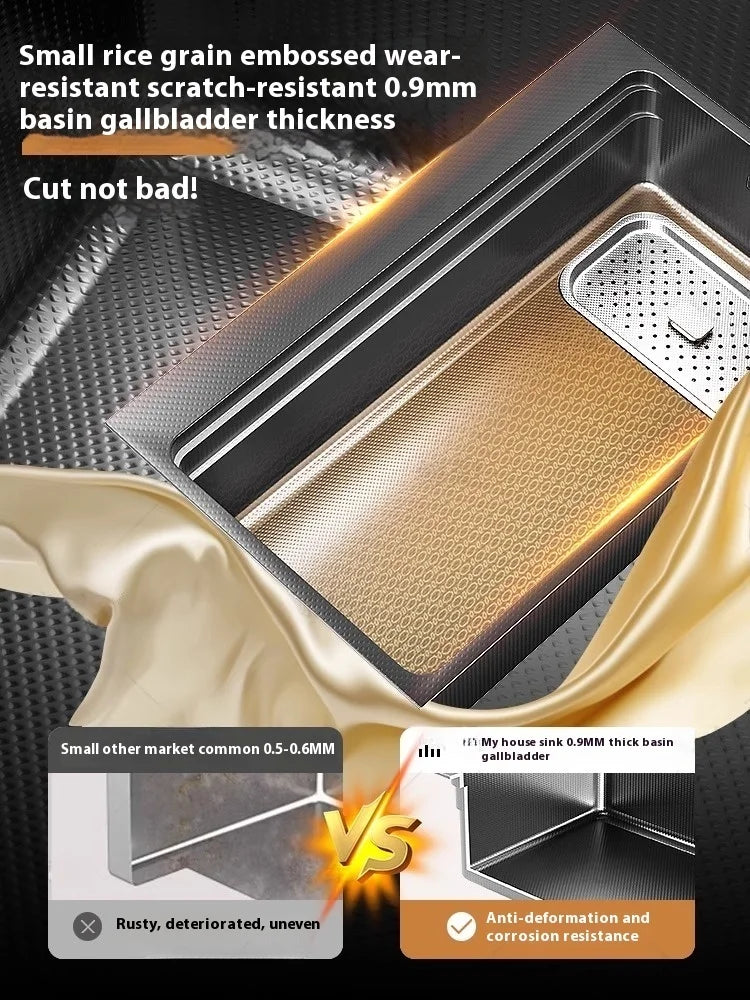Stainless steel Kitchen Sink Thick Embossed Large Single Slot vegetable washbasin Dishwashing Sink Undermount Basin