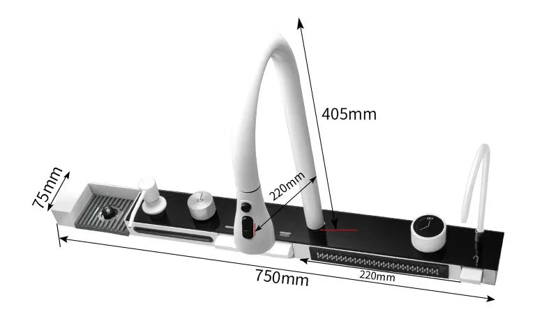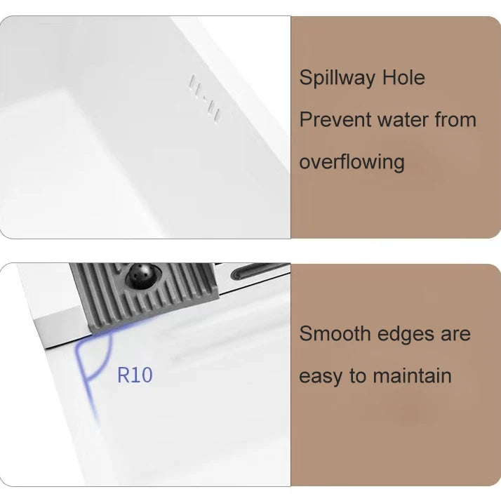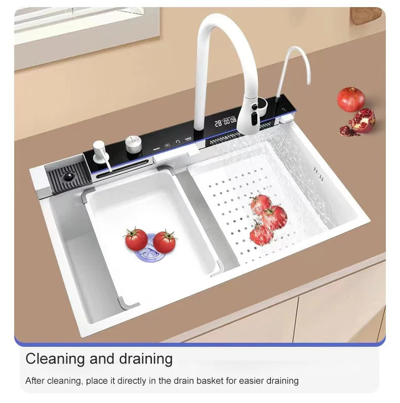 Stainless Steel Kitchen Sink with Hot Cold Pull Out Kitchen Sink Faucets Digital Large Single Bowl Waterfall Rain Kitchen Sinks