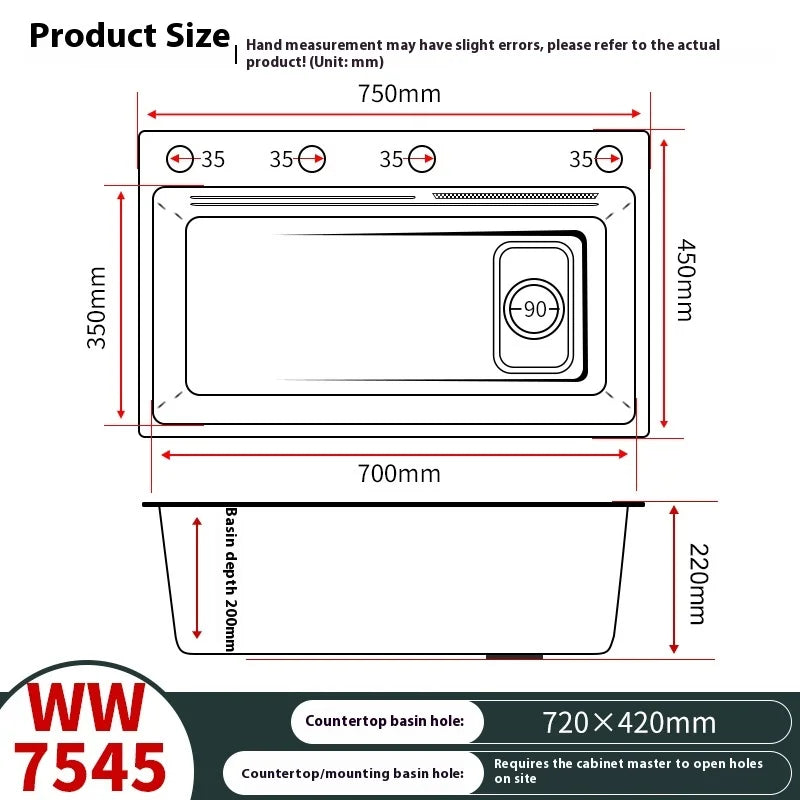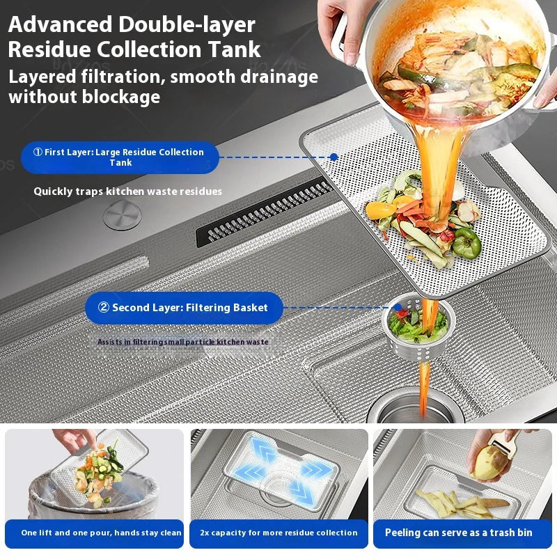 Stainless Steel Waterfall Kitchen Sink Multifunctional Scratch Resistant Wash Vegetables Basin Household Large Single Slot