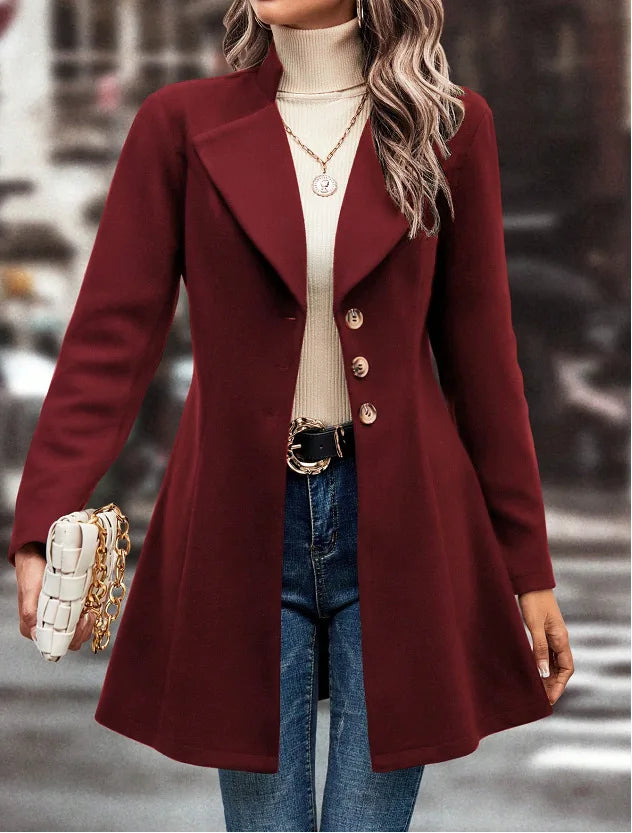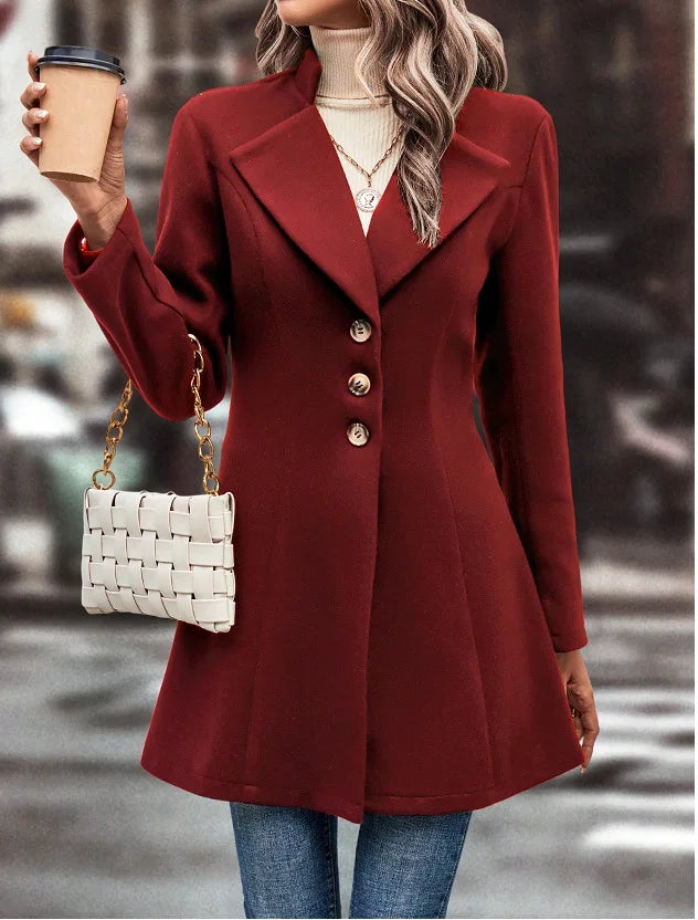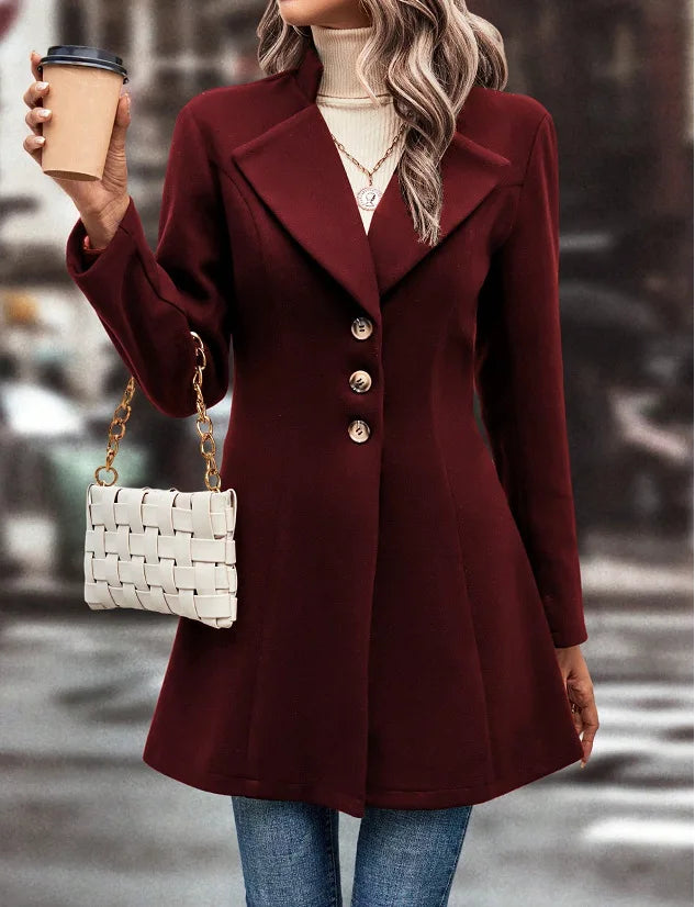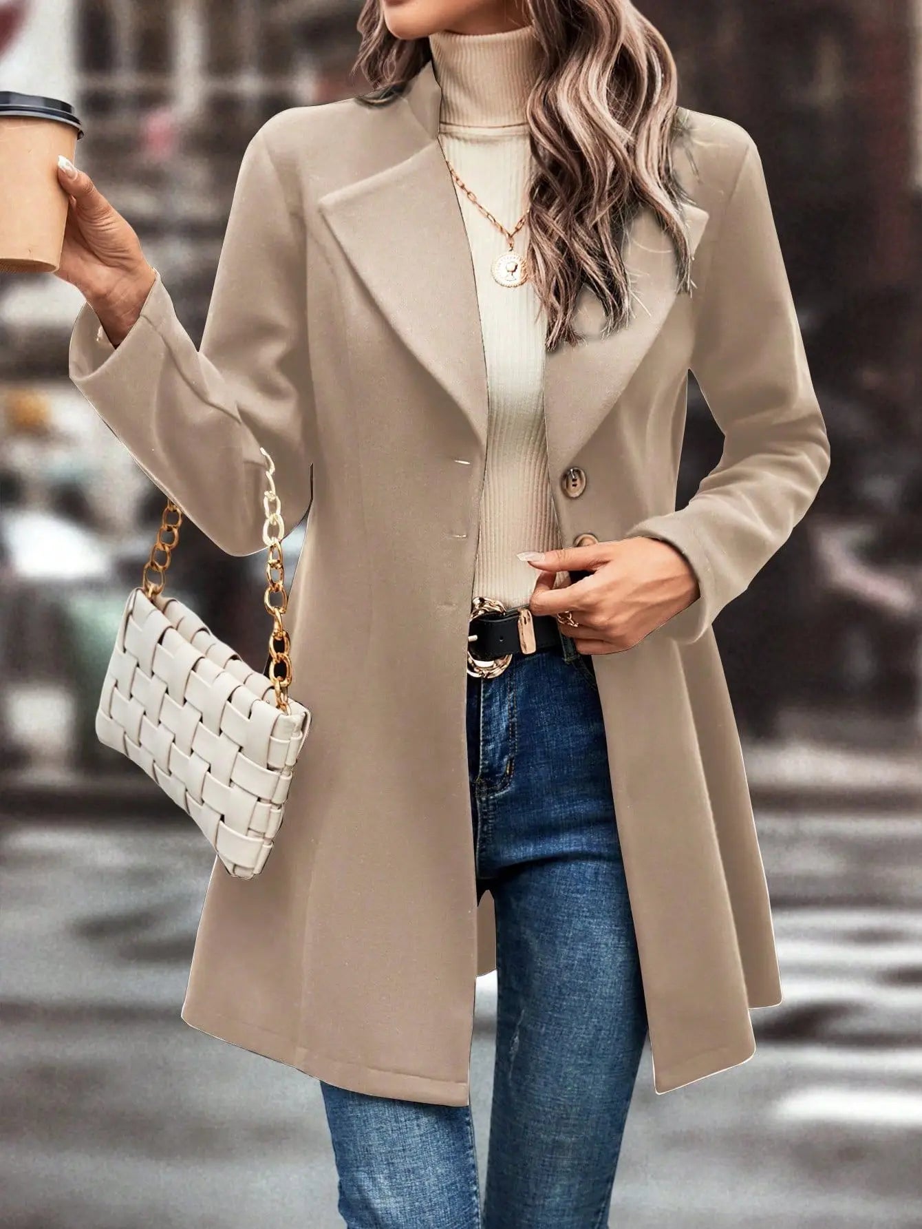 Strickjacke mischt solide Langarm Einreiher Oberbekleidung Loose Fit Knopf umdrehen Kragen Wolle Mäntel Knopf Büro Dame