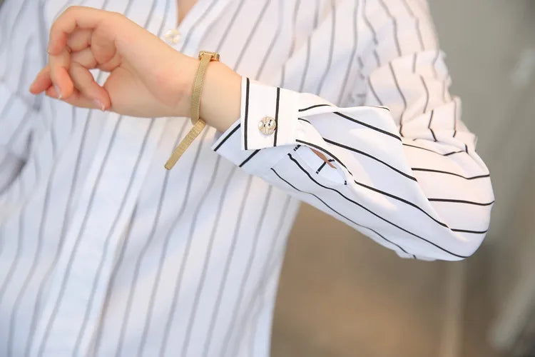 Stripe Women Blouse Fashion Standing Collar Women's Shirt Long Sleeved Shirts and Blouses Printing Ladies Tops Basic Womens Tops