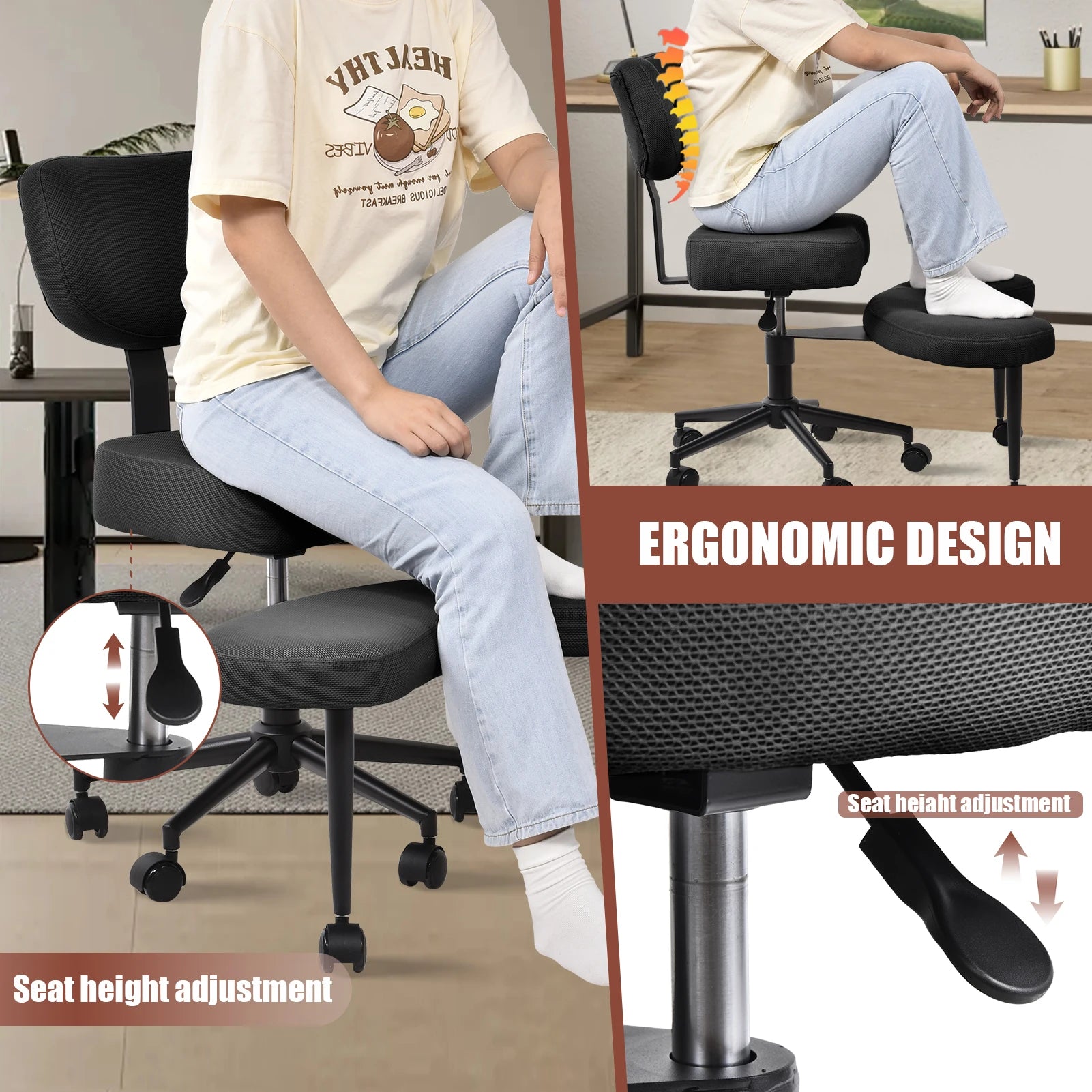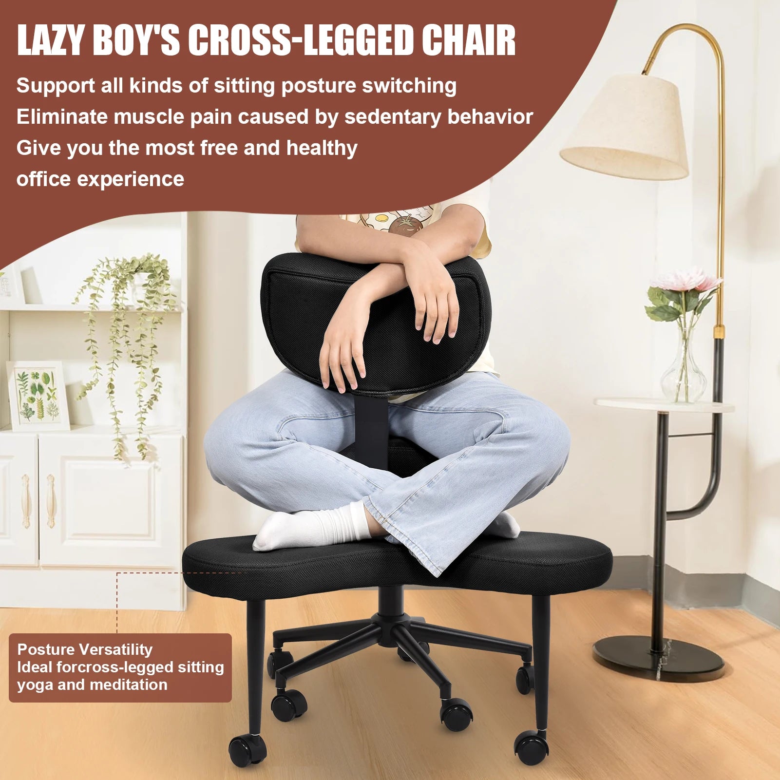 Stuhl mit gekreuzten Beinen, Stuhl mit gekreuzten Beinen für Erwachsene, höhenverstellbare Beinstütze mit Rollen zum Zappeln, zappelige Sitter mit mehreren Positionen