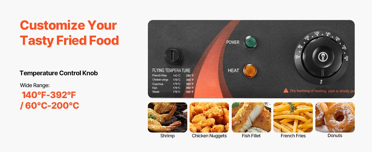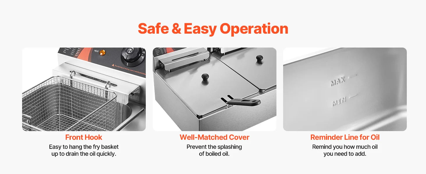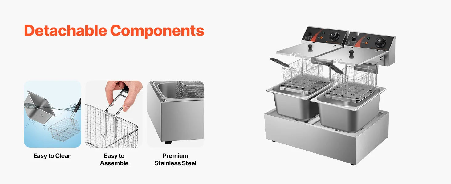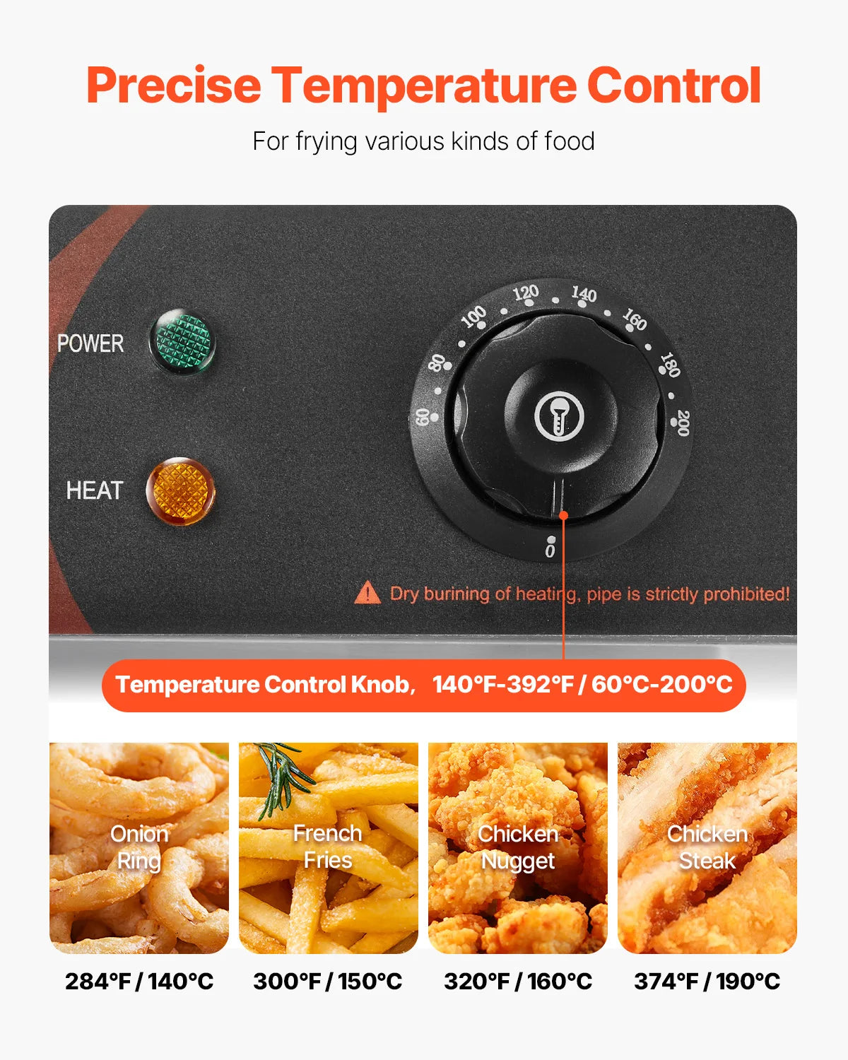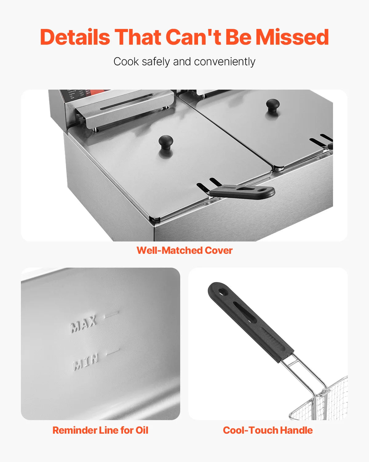 SucceBuy 12L 5000W elektrische Fritteusen, zwei Tanks mit Doppelkorb und Deckel, doppelte Fritteuse, einstellbare Temperaturregelung