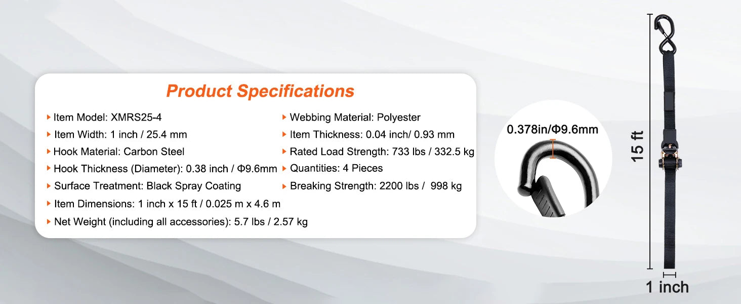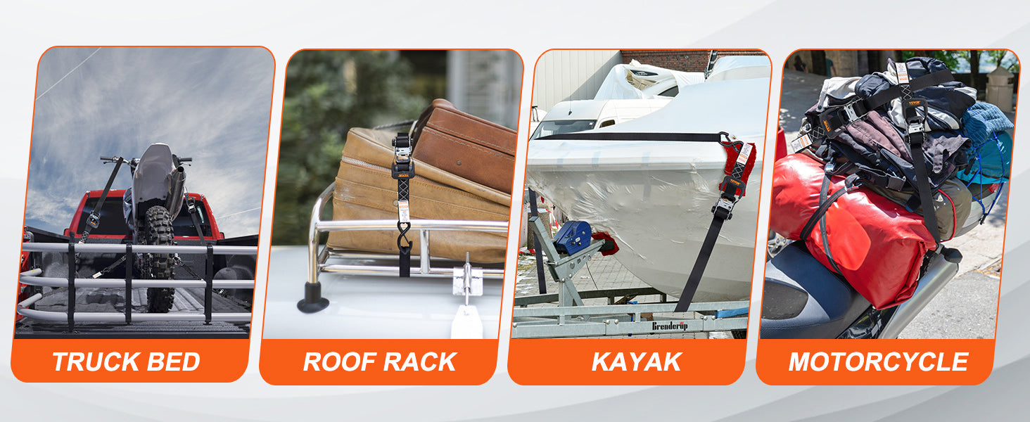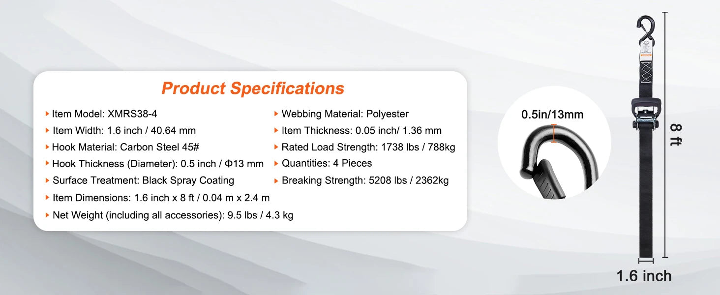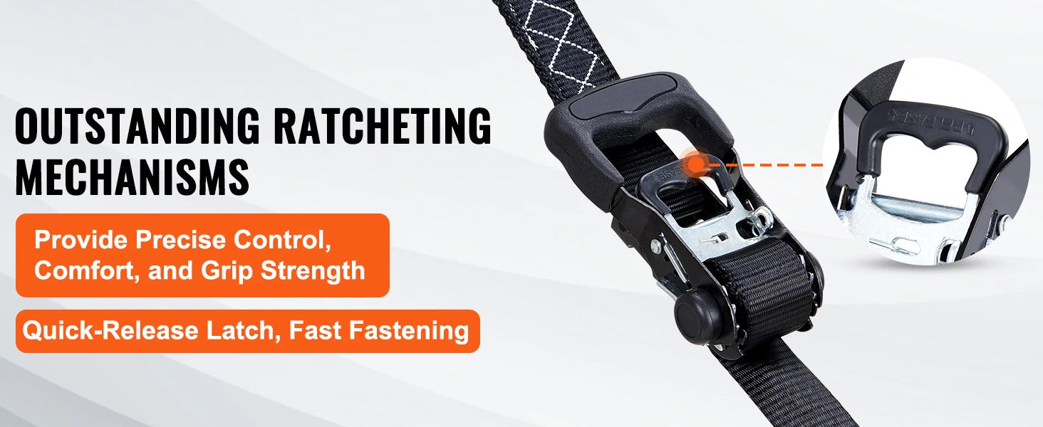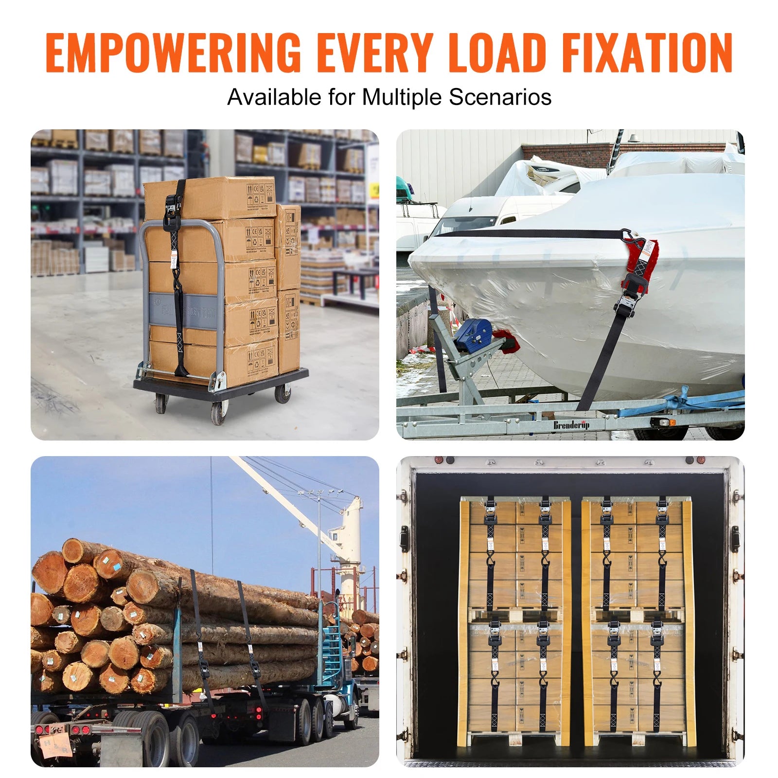 SucceBuy 4 Stück Anhänger-Ratschen-Spanngurte mit gepolsterten Griffen, Haken-Bremsbindegürtel für die Bewegen, Sicherung von Fracht und Motorrädern