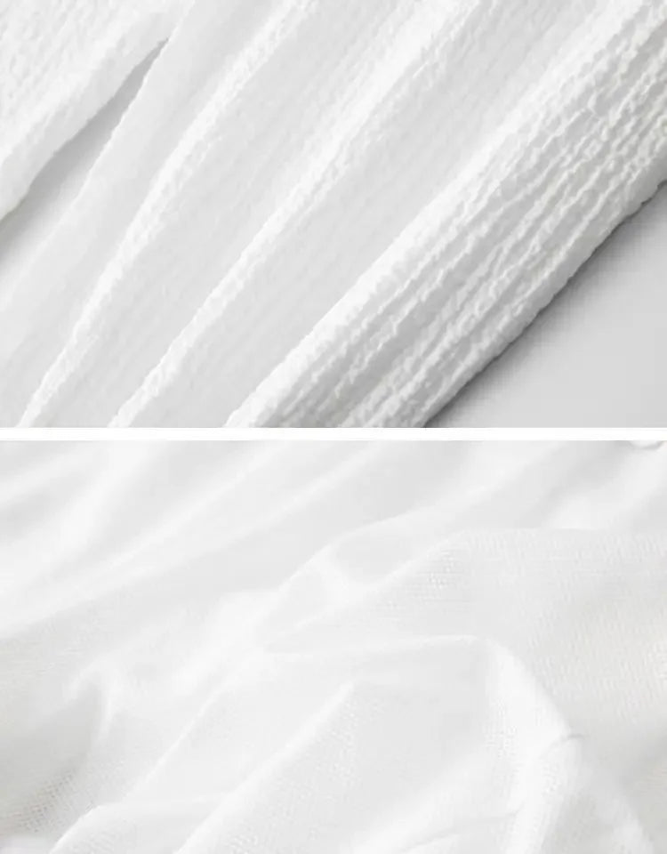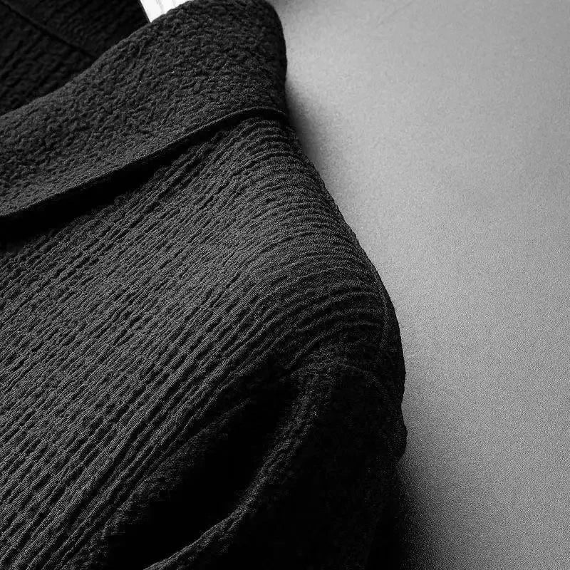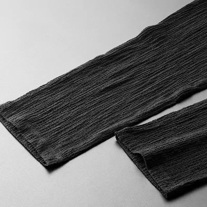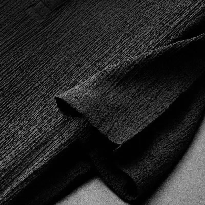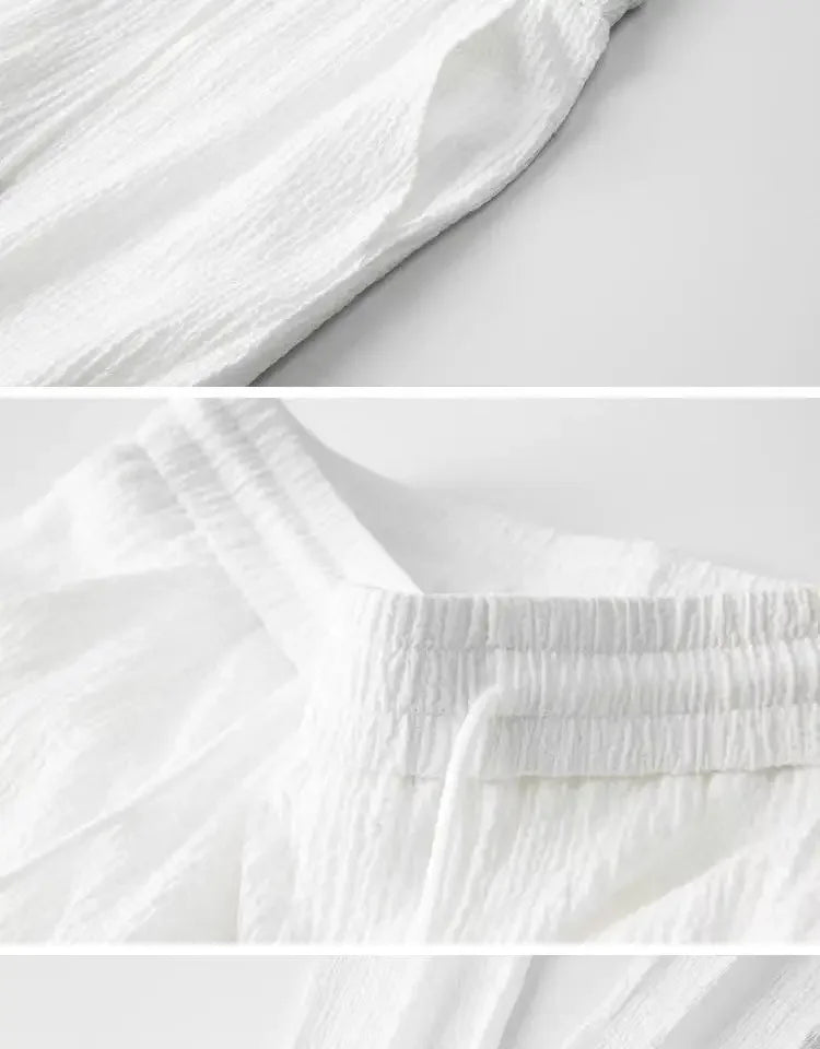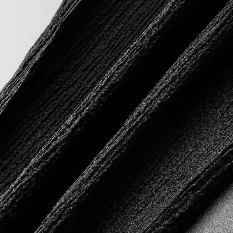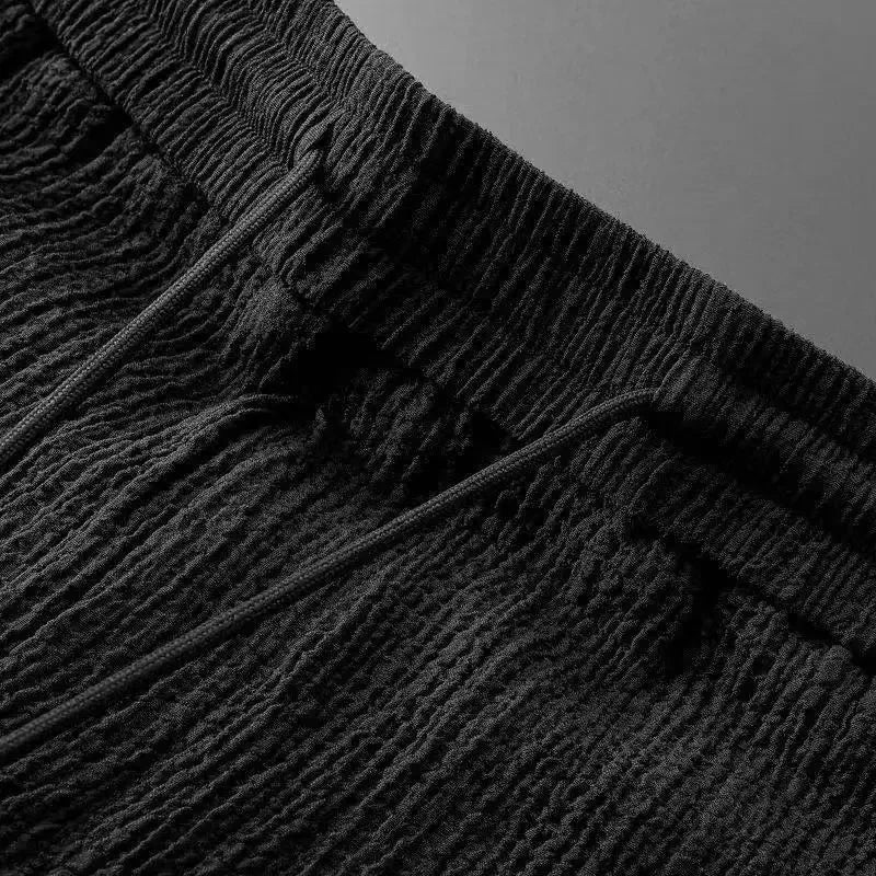 Summer Lightweight Pleated Cotton Casual Sports Set Men's Thin Comfortable Breathable Fashionable Collar Short Sleeve Two-Piece